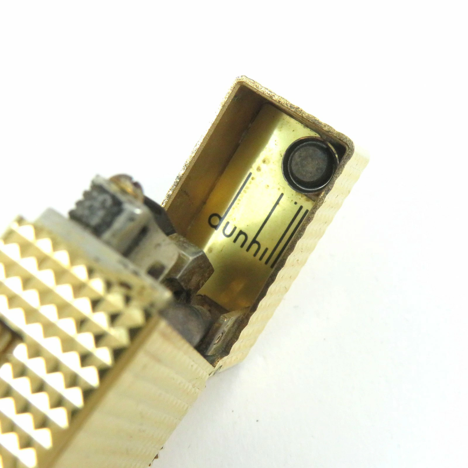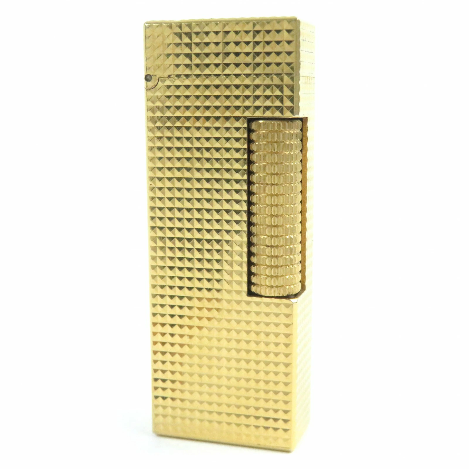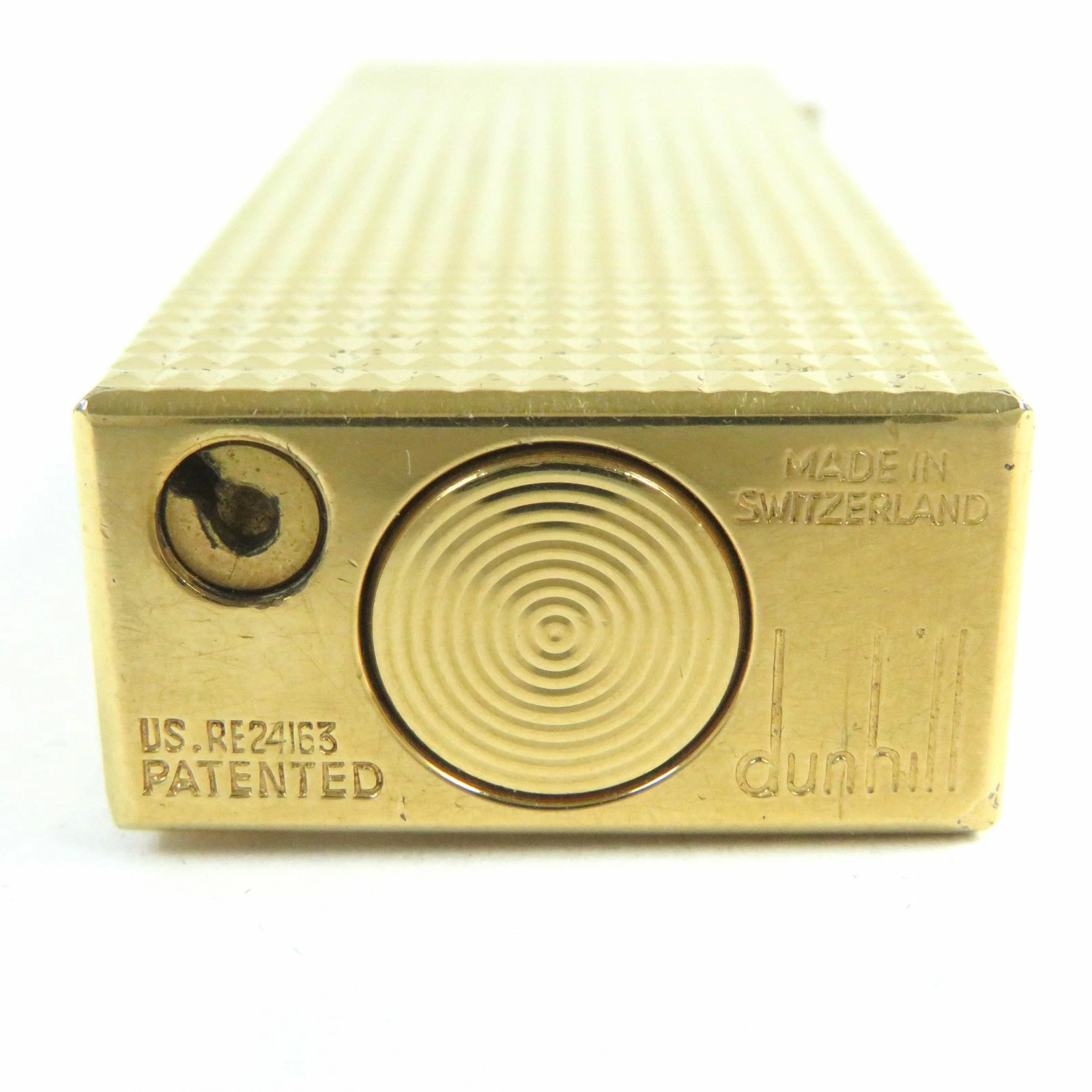 Excellent condition Dunhill diamond-patterned square roller gas lighter, gold, for men. Verified to light. Recommended. Pre-owned.