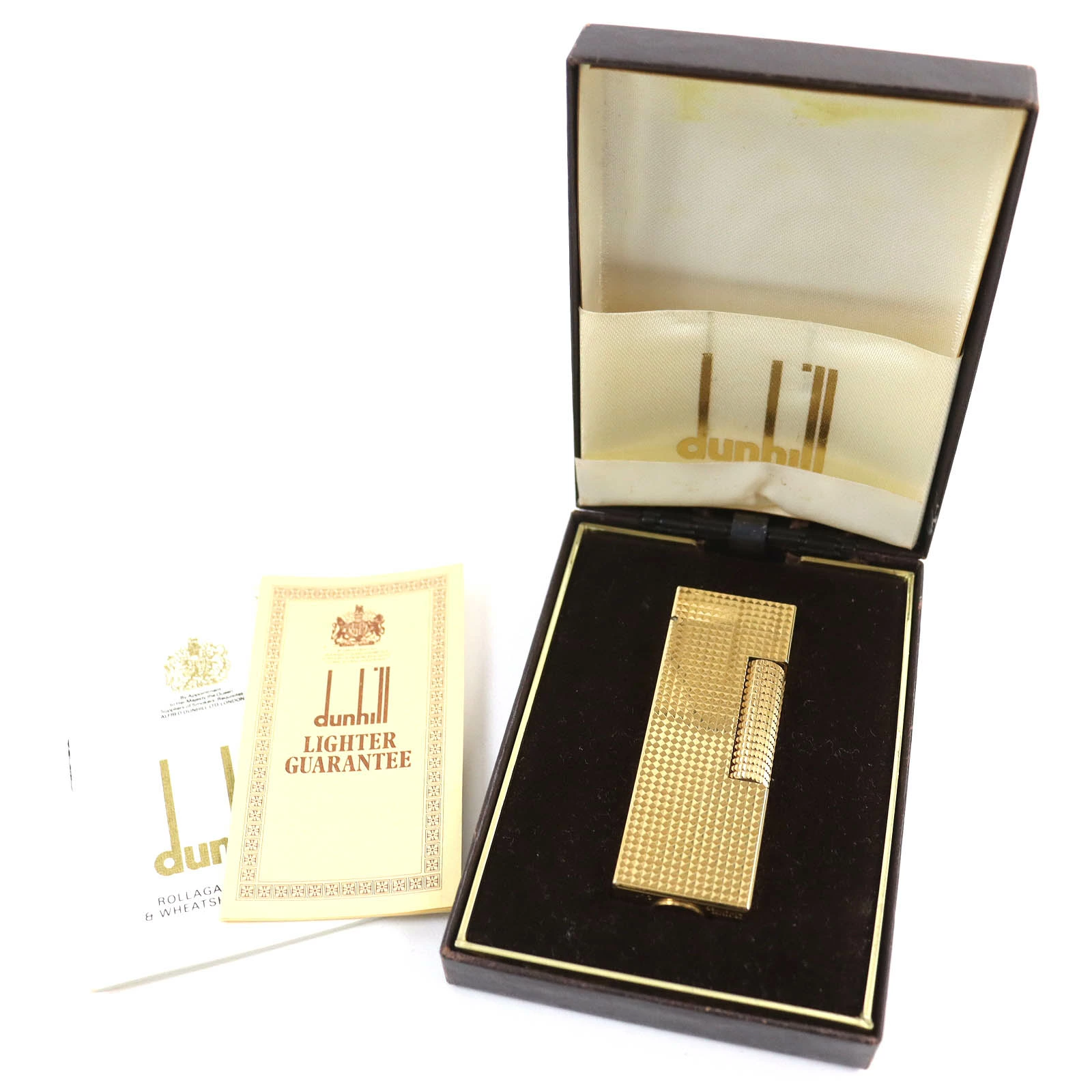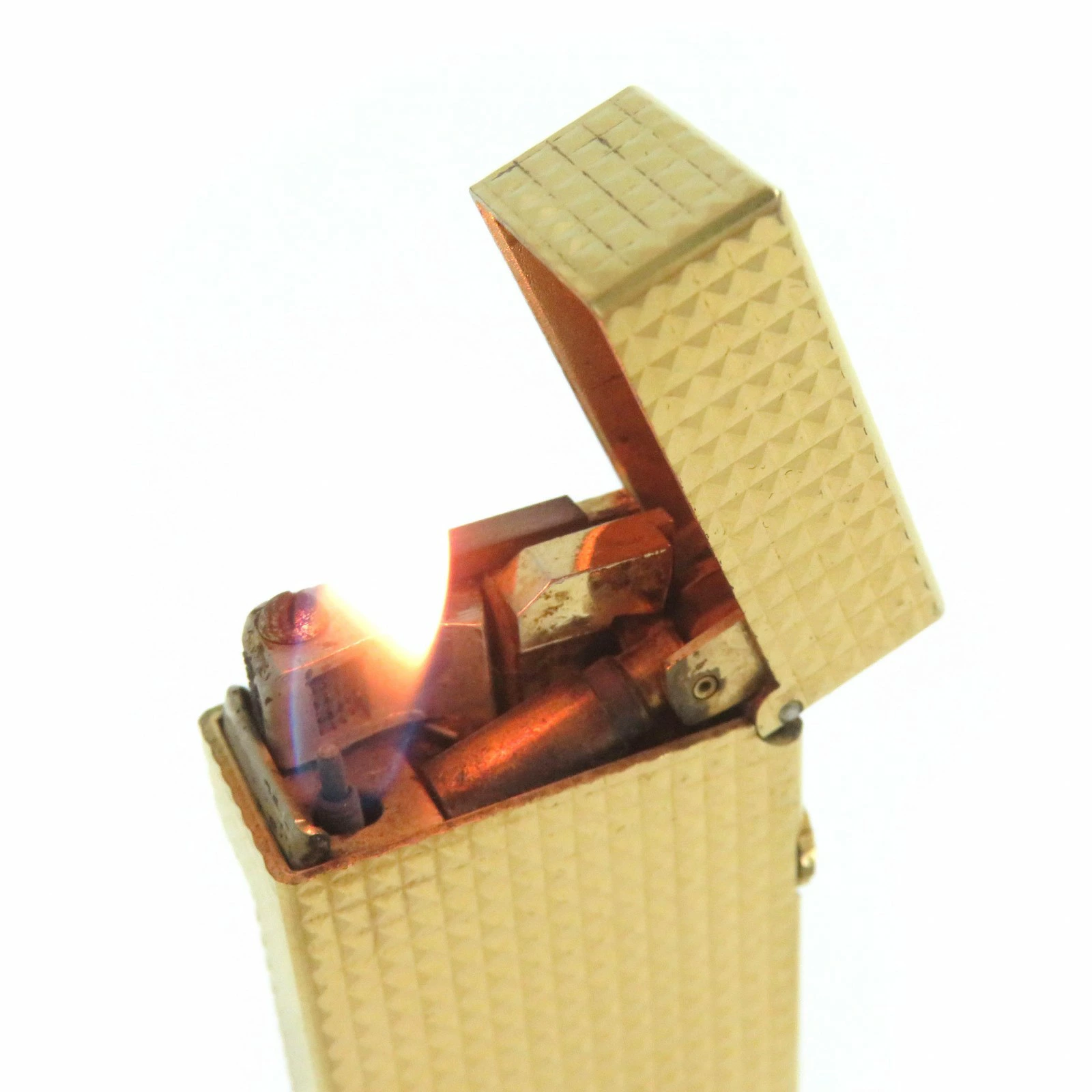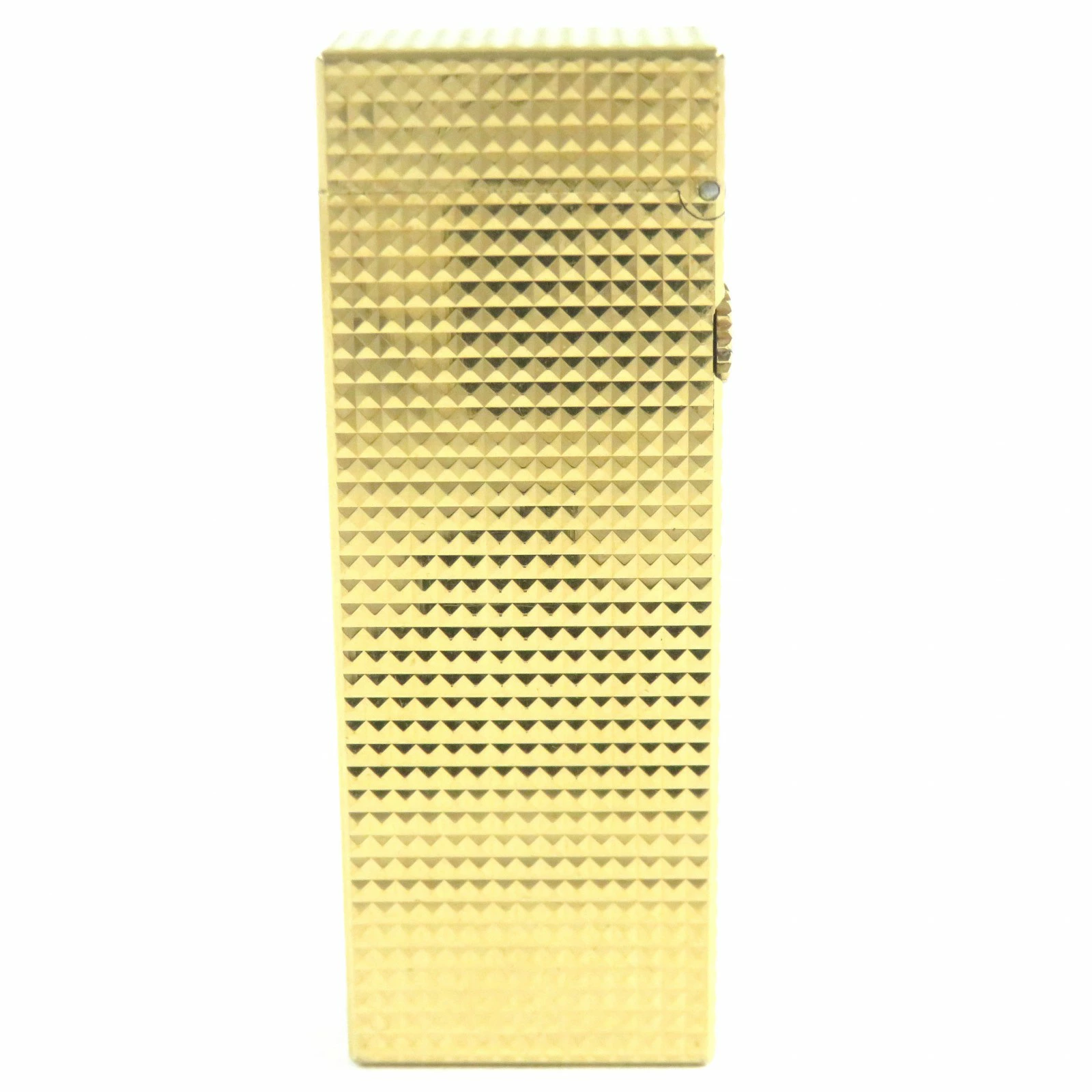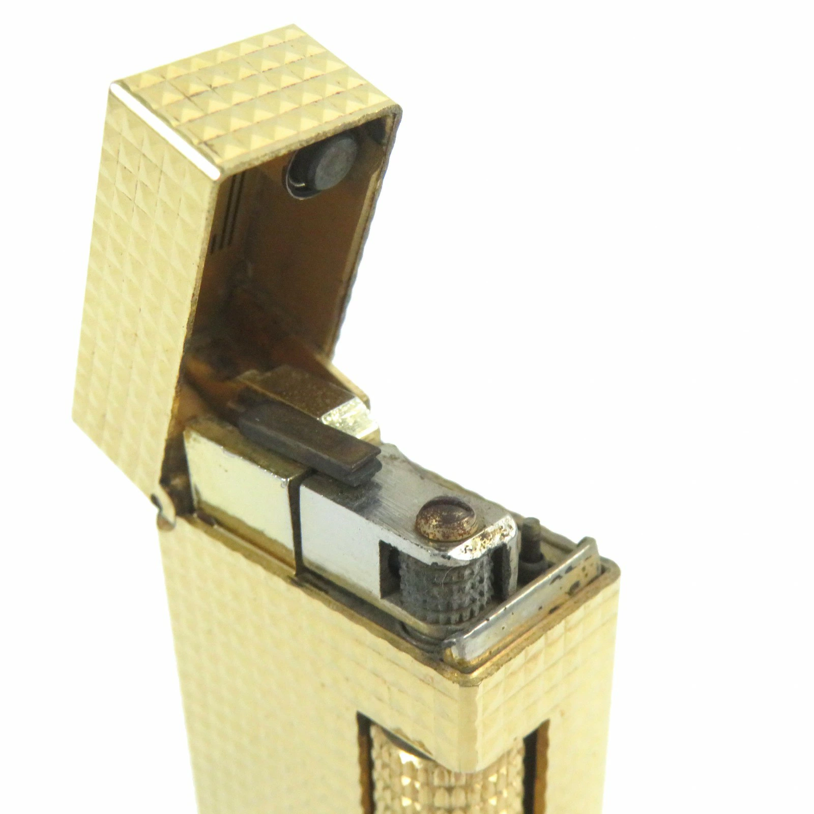 Excellent condition Dunhill diamond-patterned square roller gas lighter, gold, for men. Verified to light. Recommended. Pre-owned.