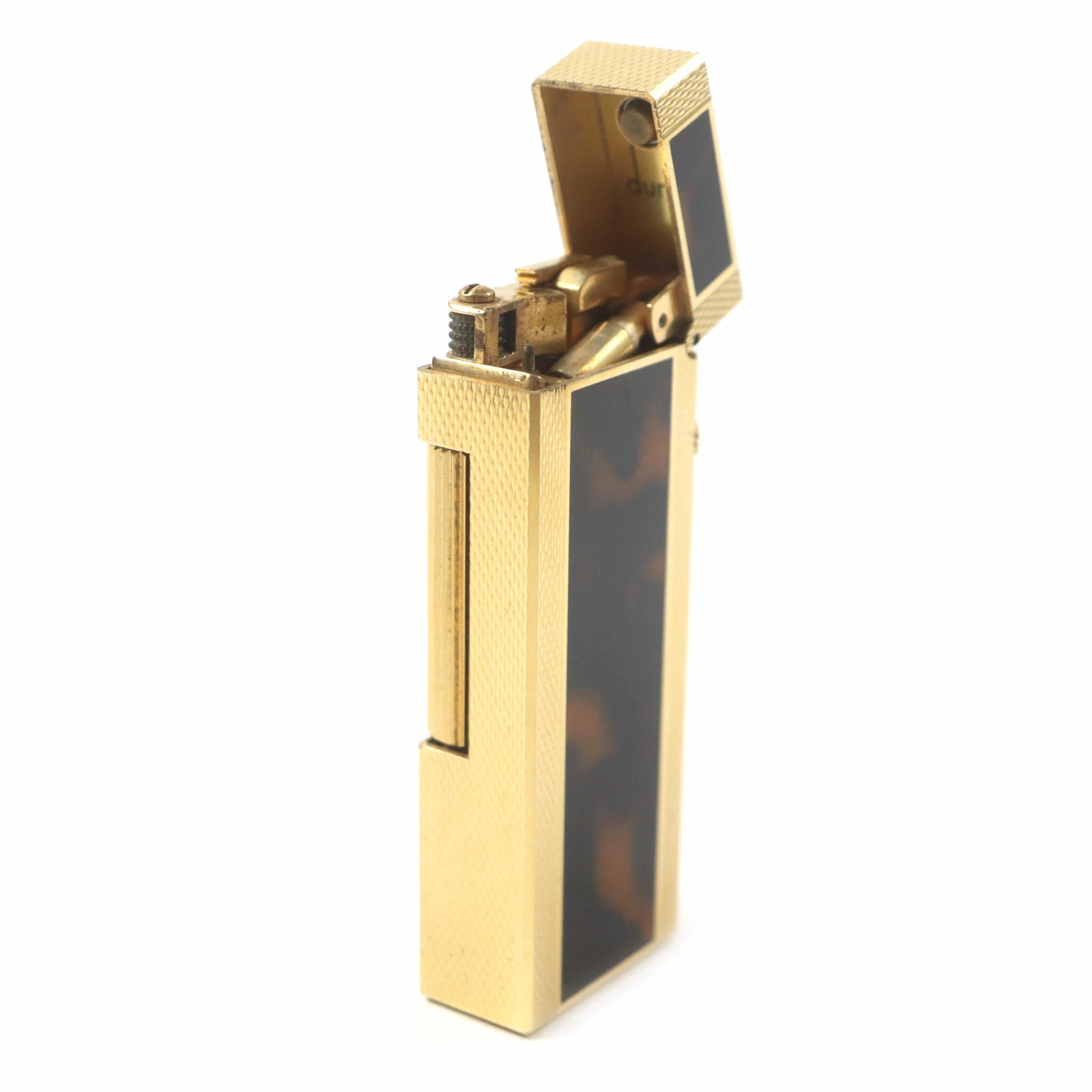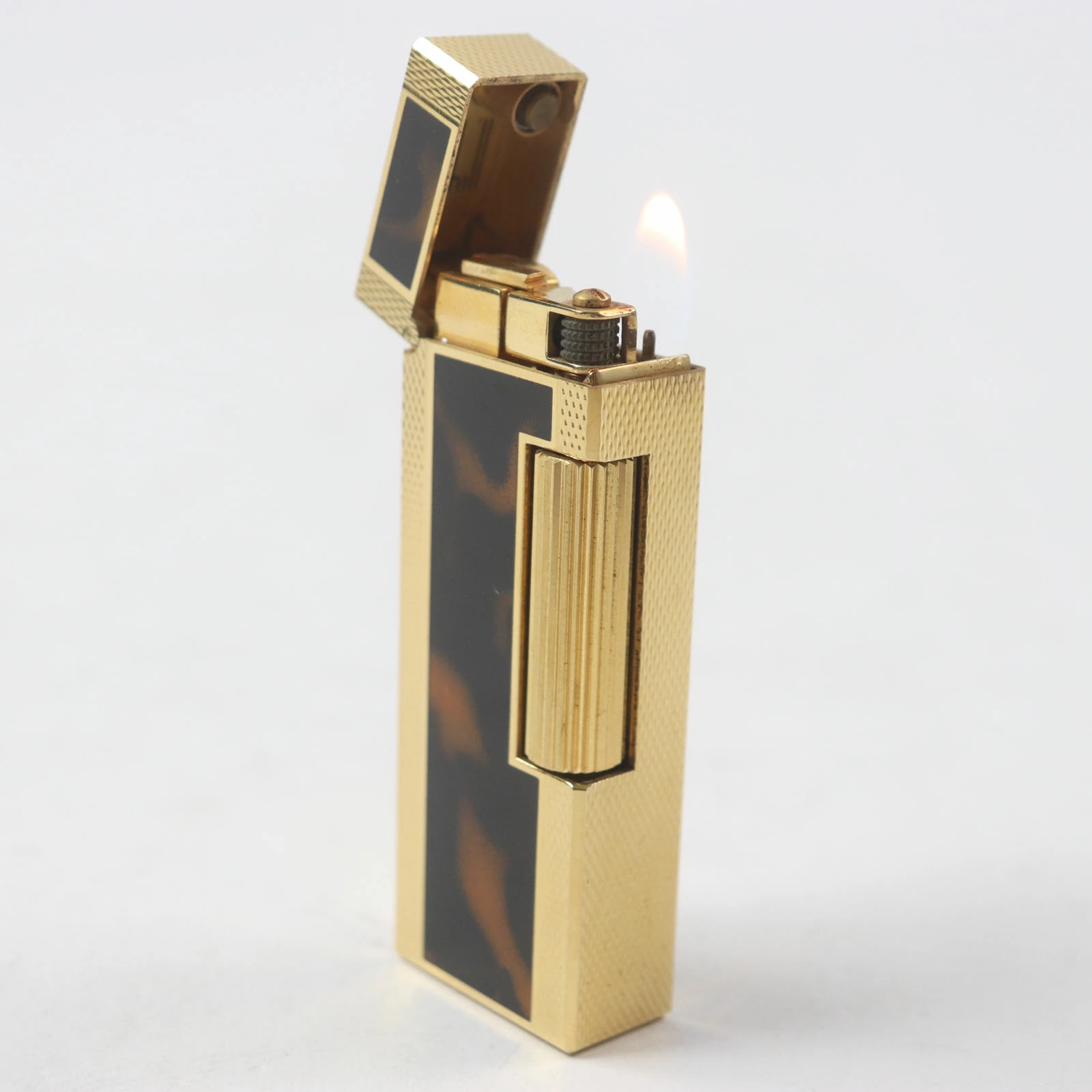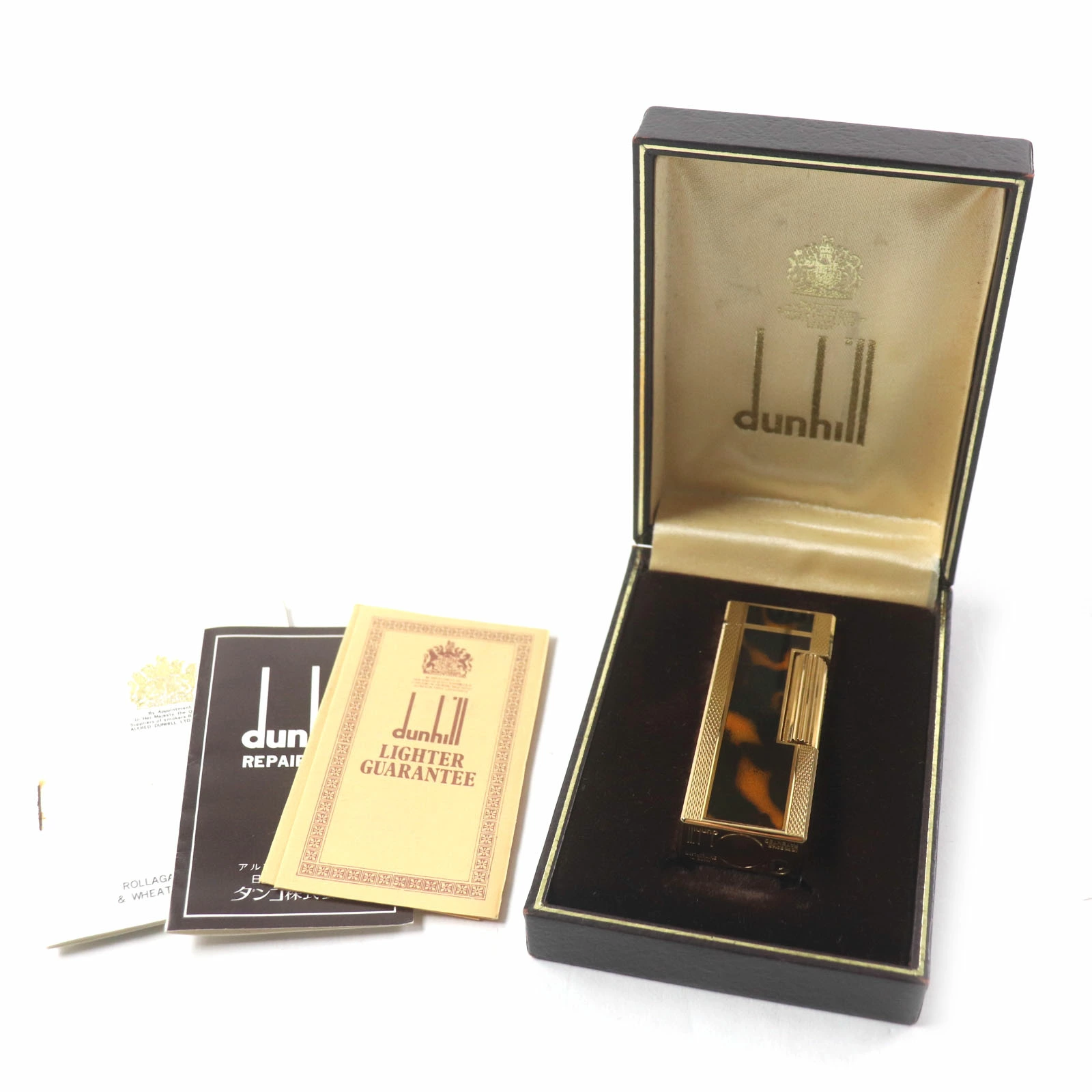 Excellent condition: Dunhill Square Lacquer Marble Roller Gas Lighter, Gold/Brown, with Case, Swiss Made, Men's, Fire-Tested [Pre-owned]