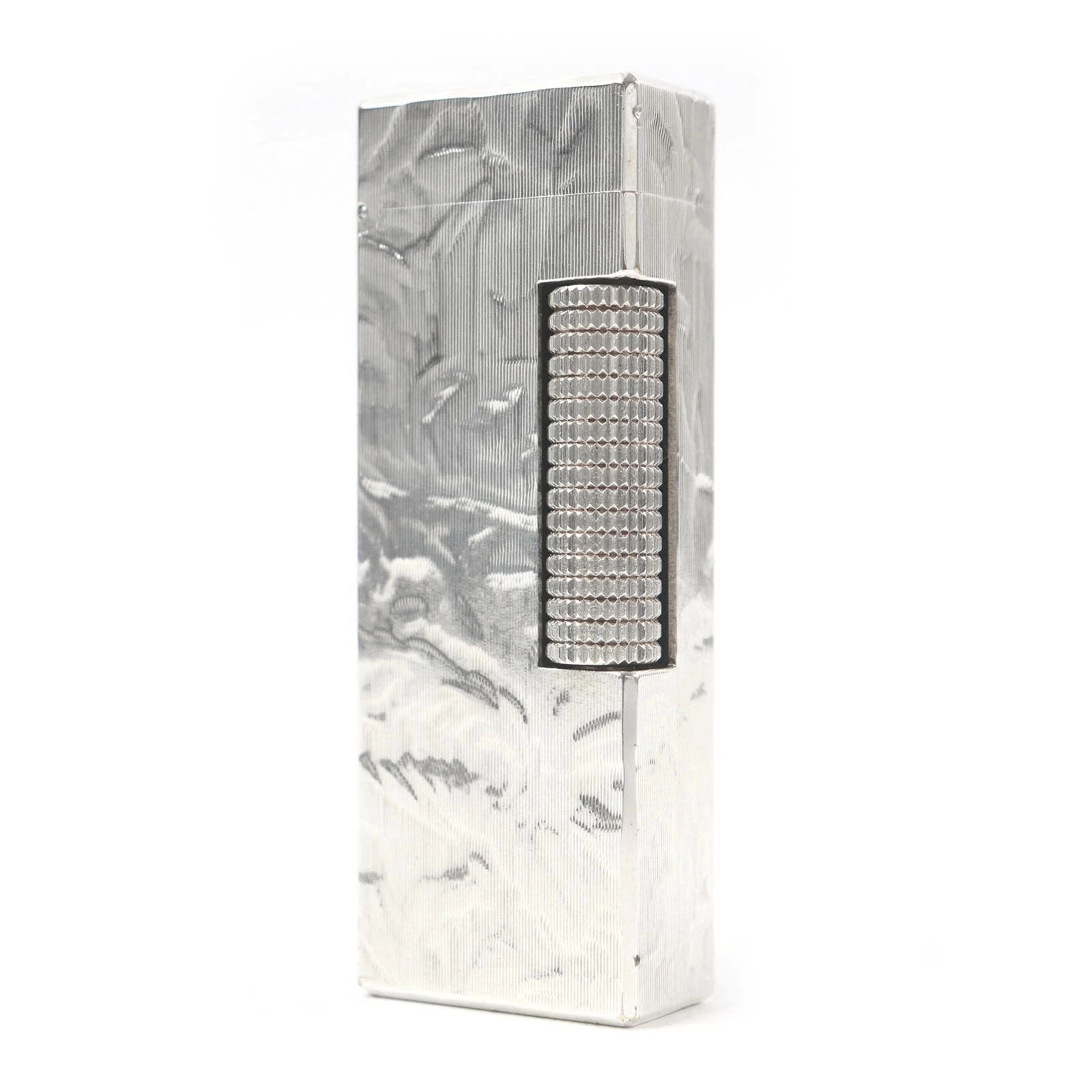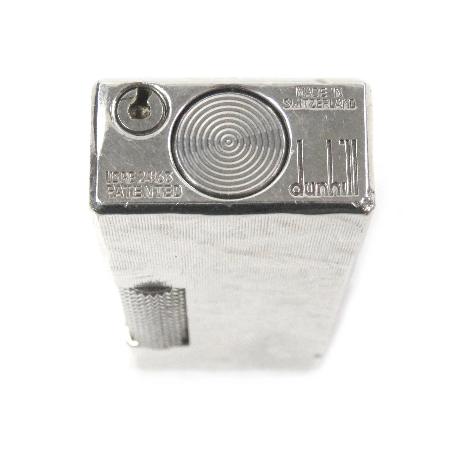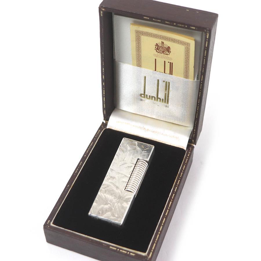Excellent condition Dunhill square-shaped, all-over print roller-style smoking accessory gas lighter, silver, with case, Swiss-made, for men and women, ignition confirmed [pre-owned]