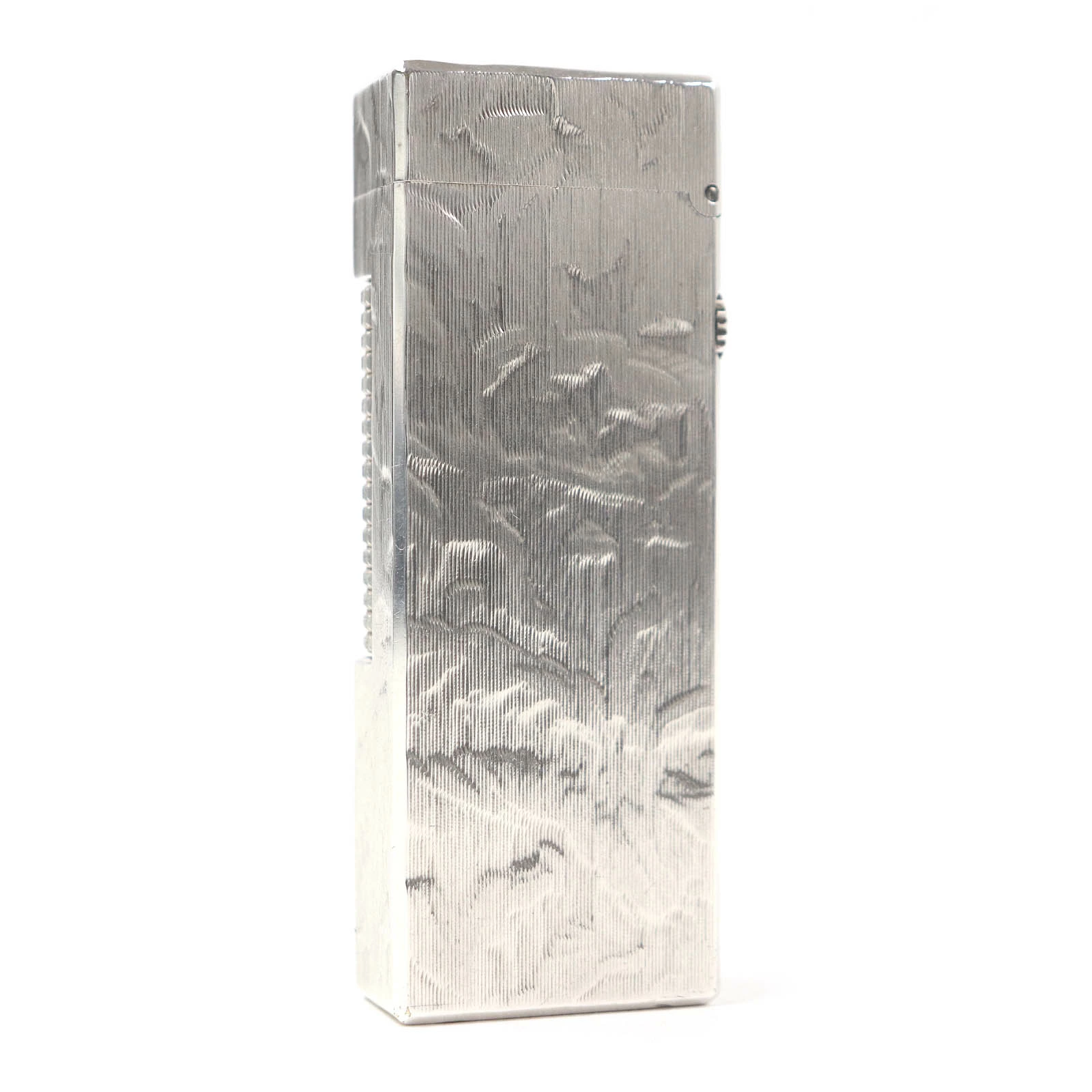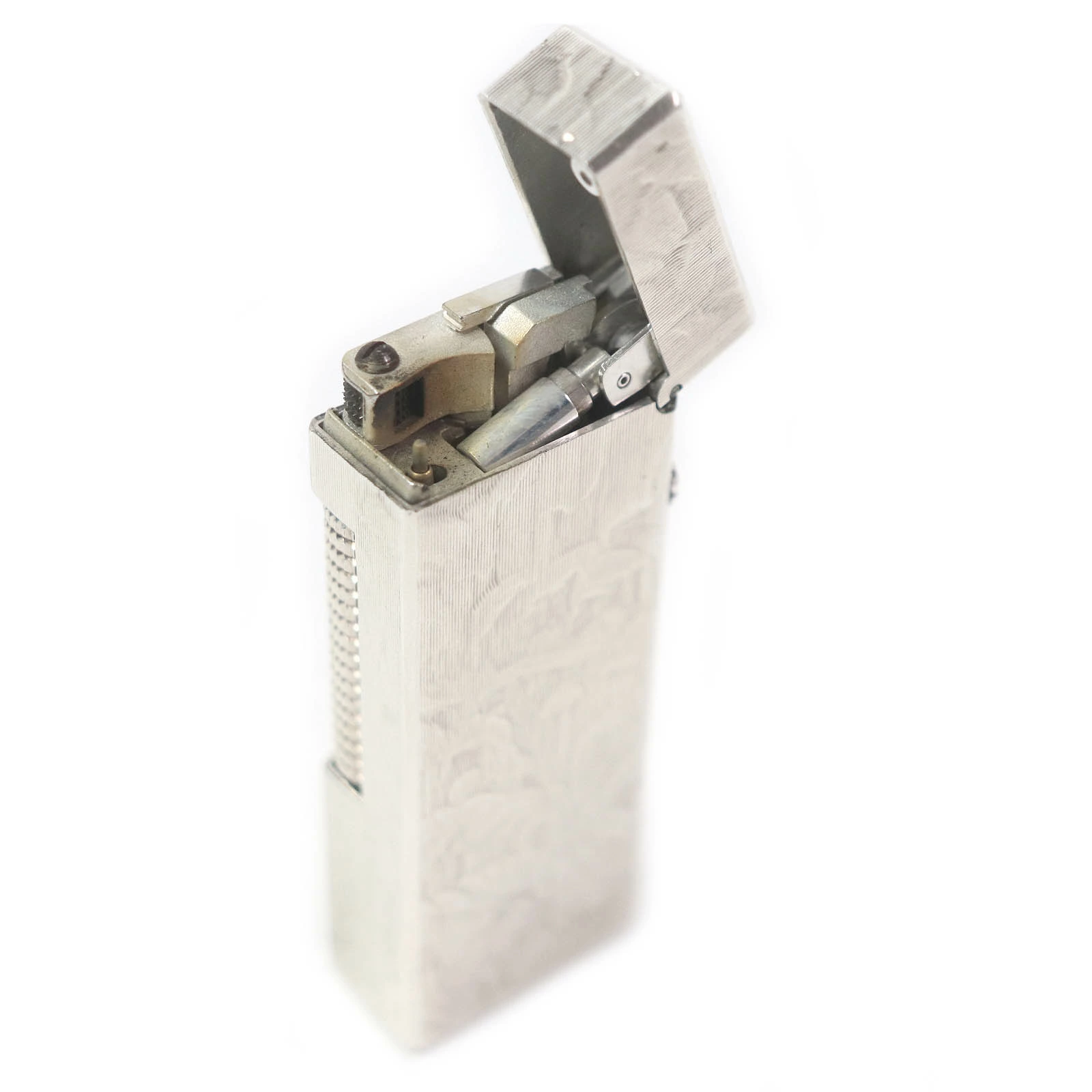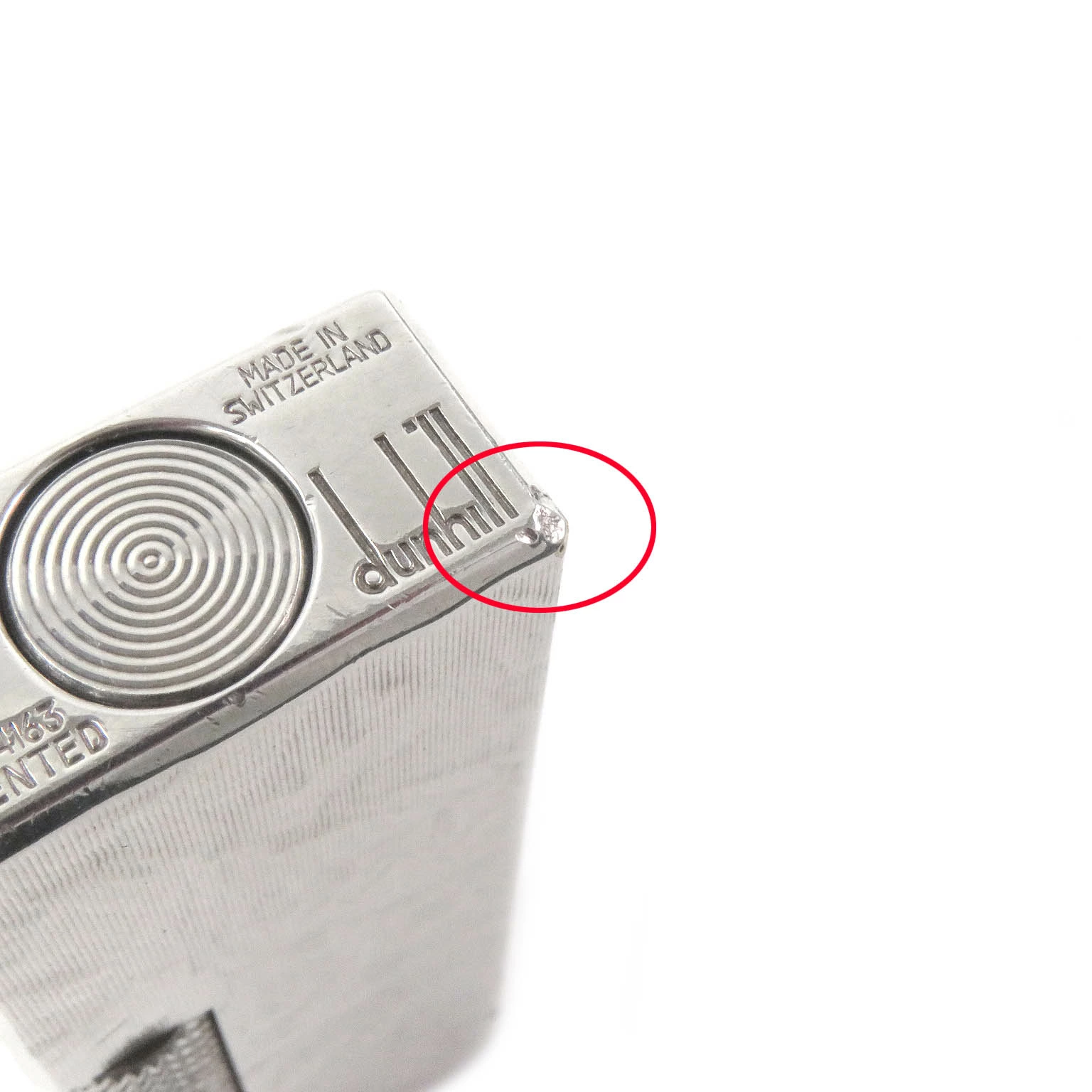 Excellent condition Dunhill square-shaped, all-over print roller-style smoking accessory gas lighter, silver, with case, Swiss-made, for men and women, ignition confirmed [pre-owned]