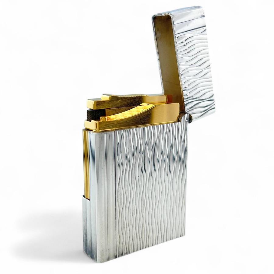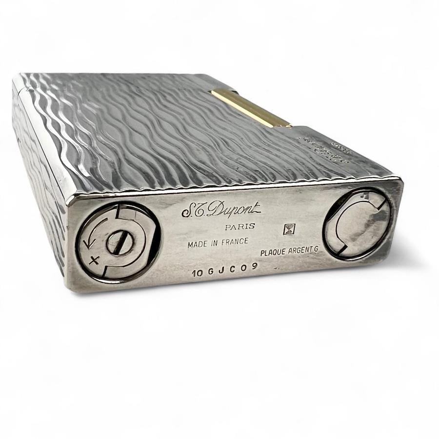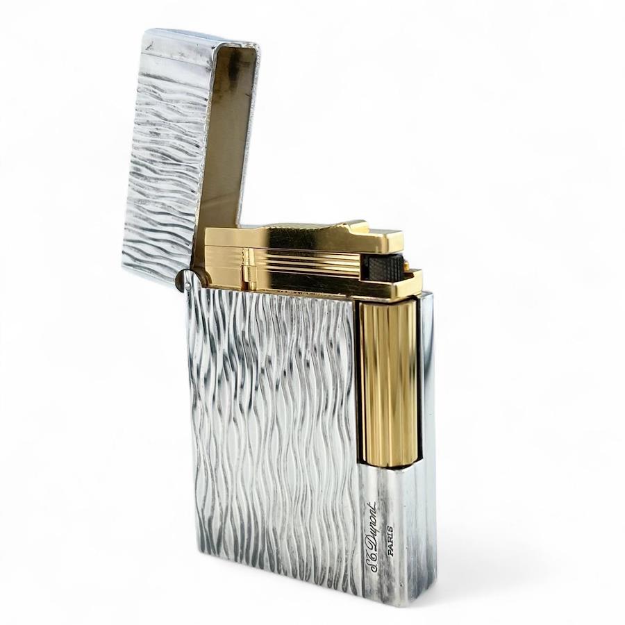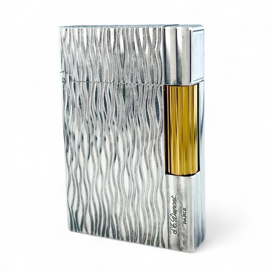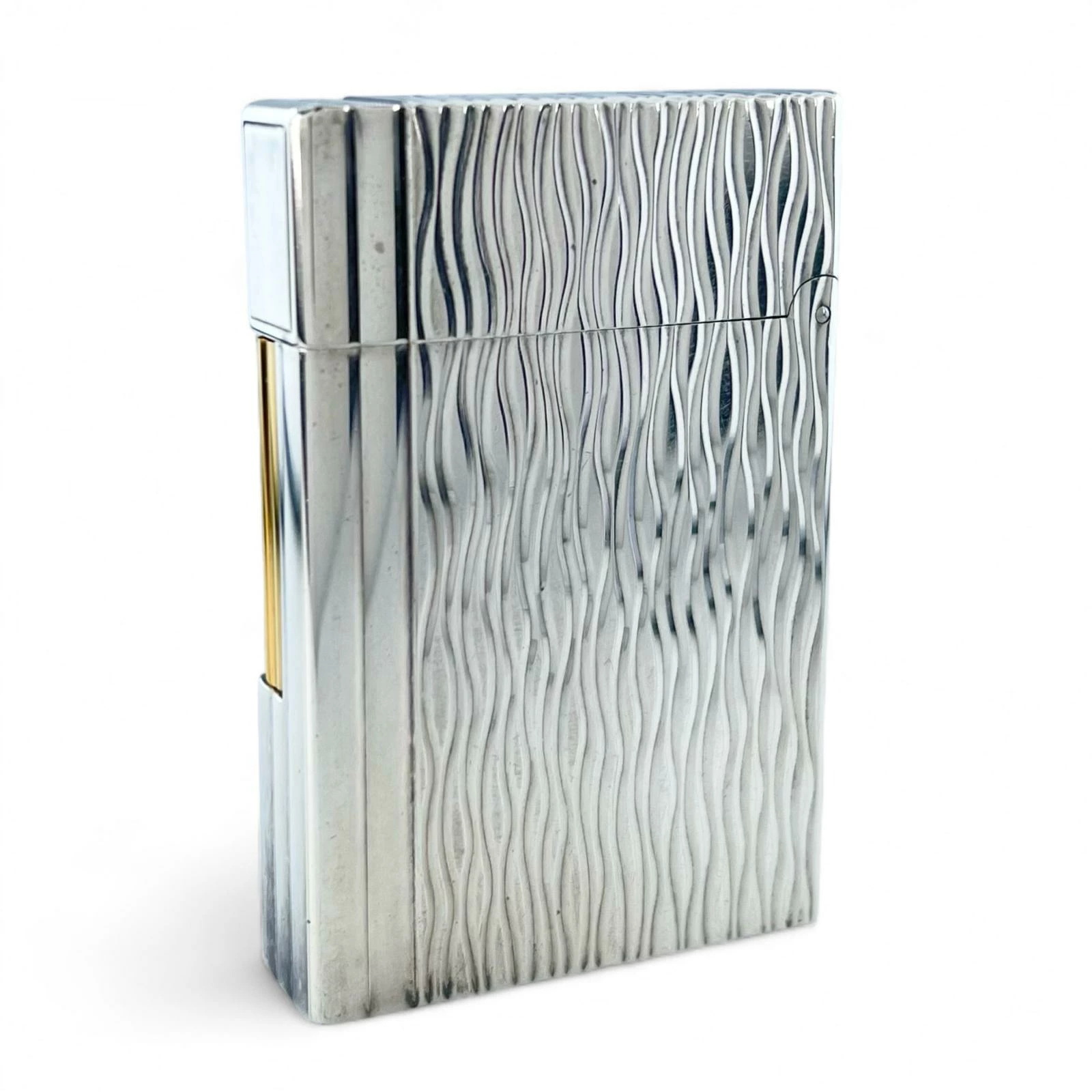 Excellent condition: Dupont Gatsby Wave Embossed Roller Gas Lighter, Silver, Made in France, Men's, Ignition confirmed [Pre-owned]