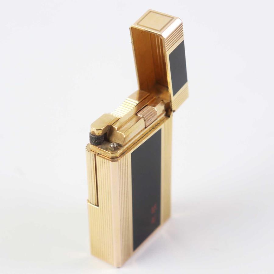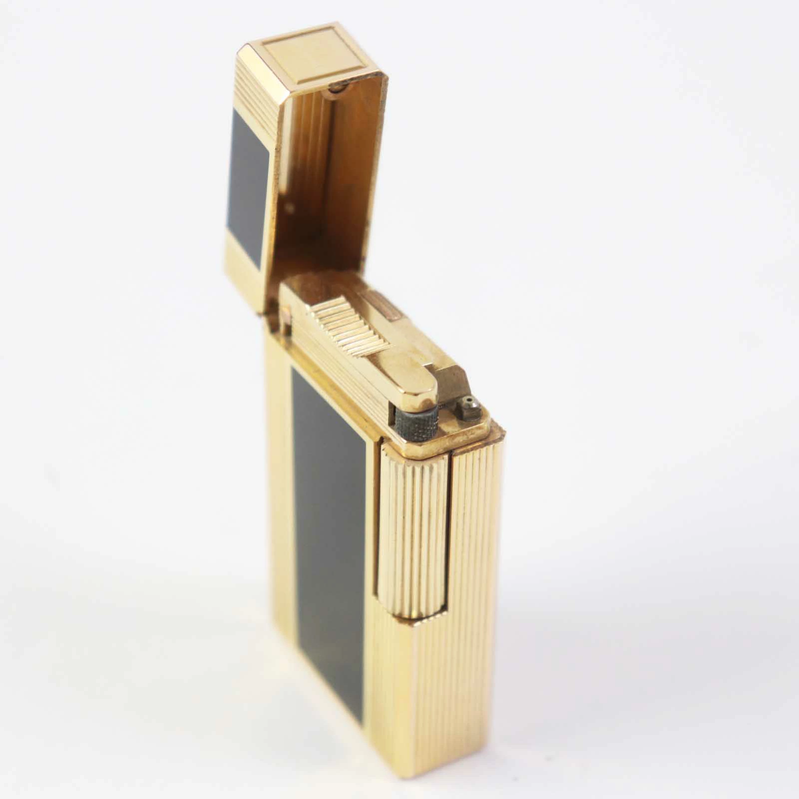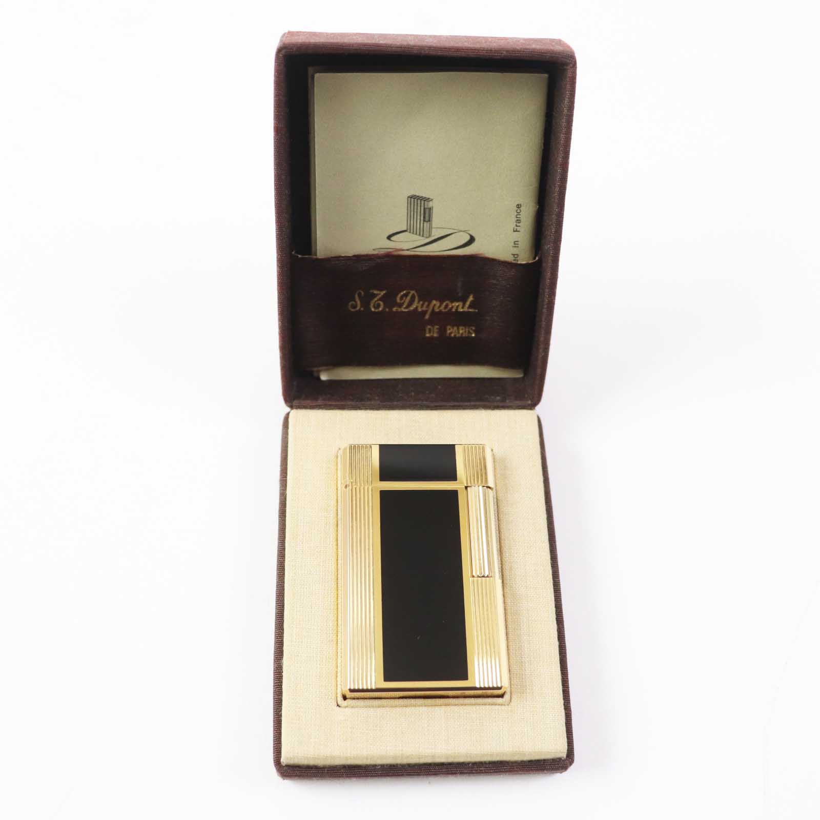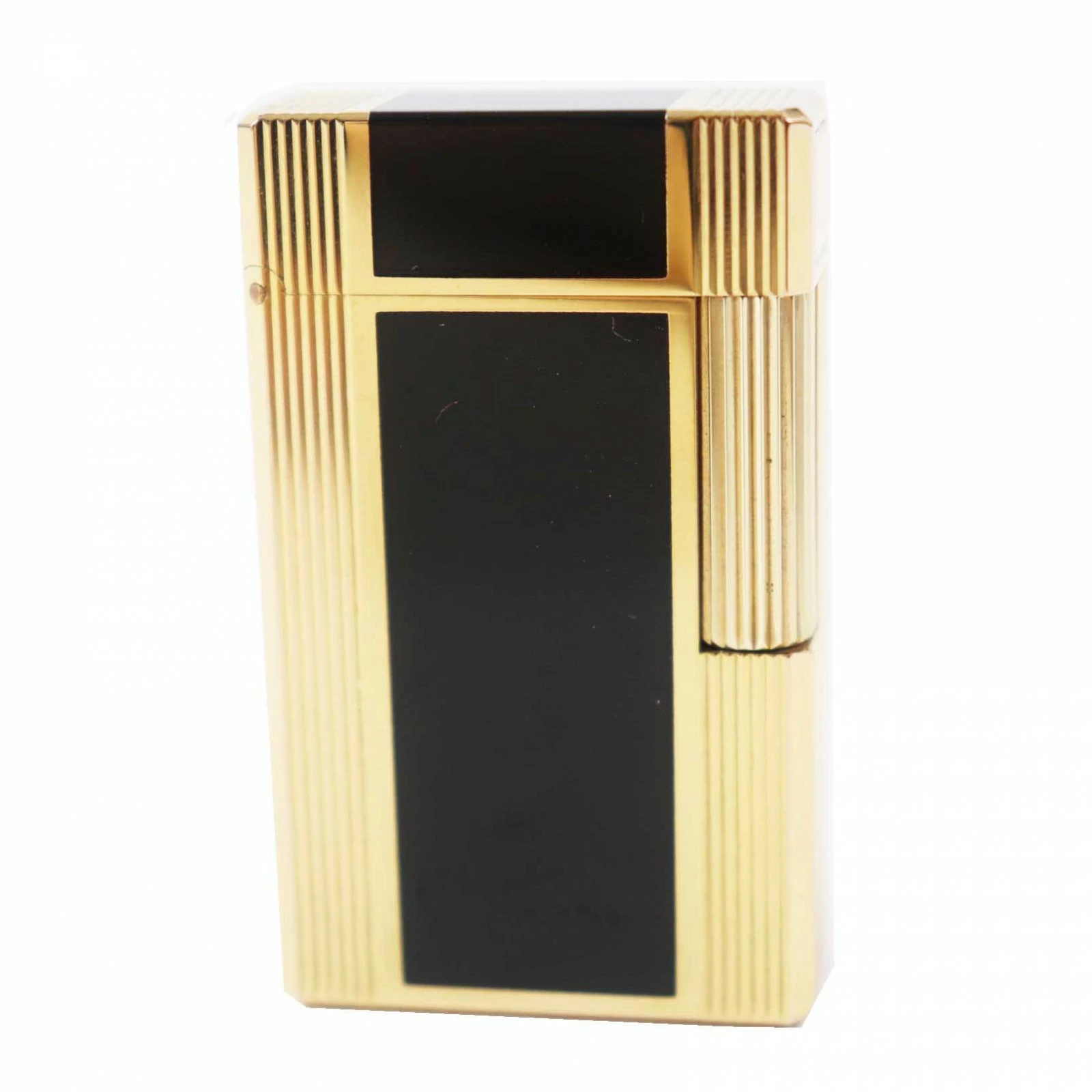 Excellent condition Dupont Line 1 Long Lacquer Roller-Style Square Gas Lighter, Black and Gold, with Box, Made in France, Men's, Unable to Light [Pre-owned]