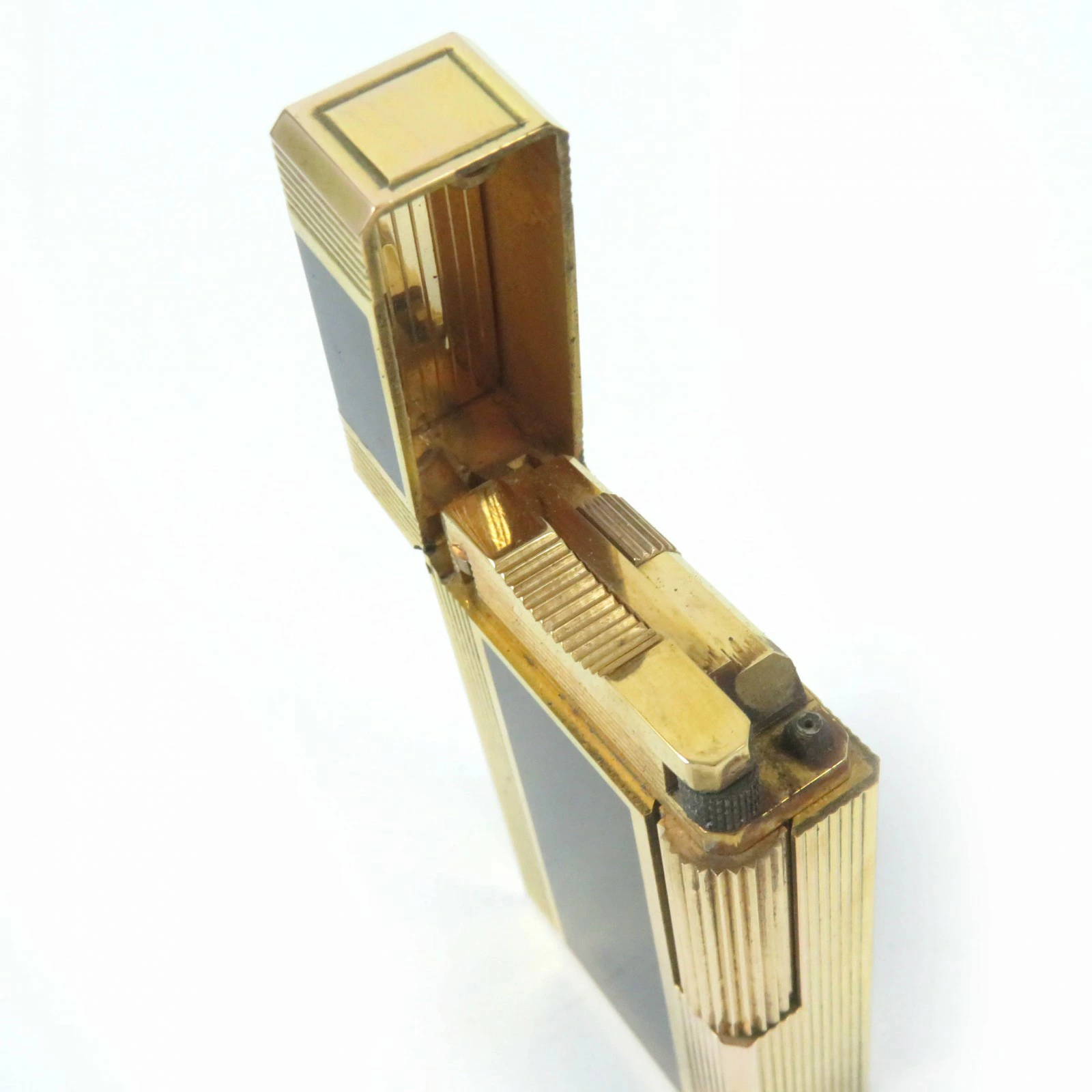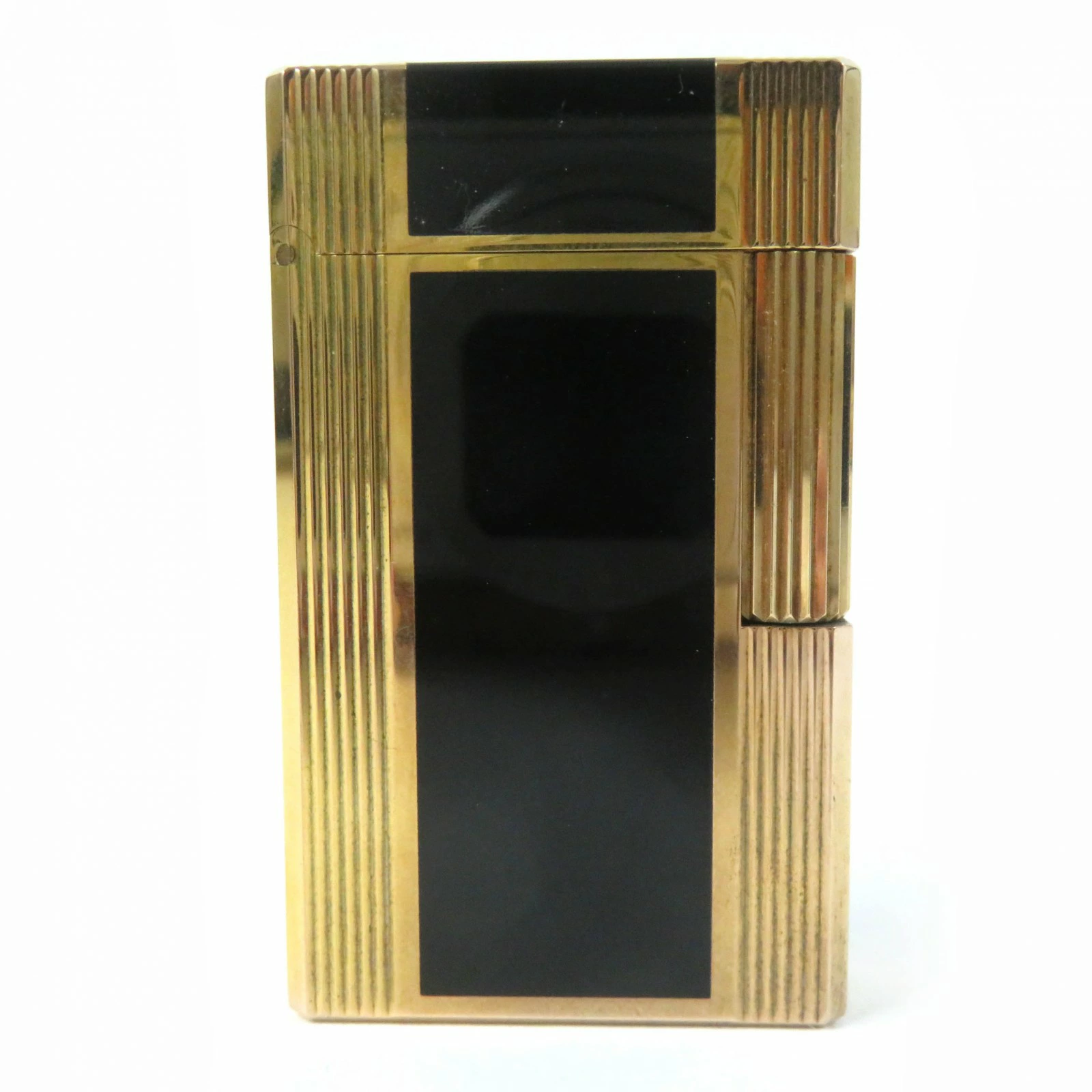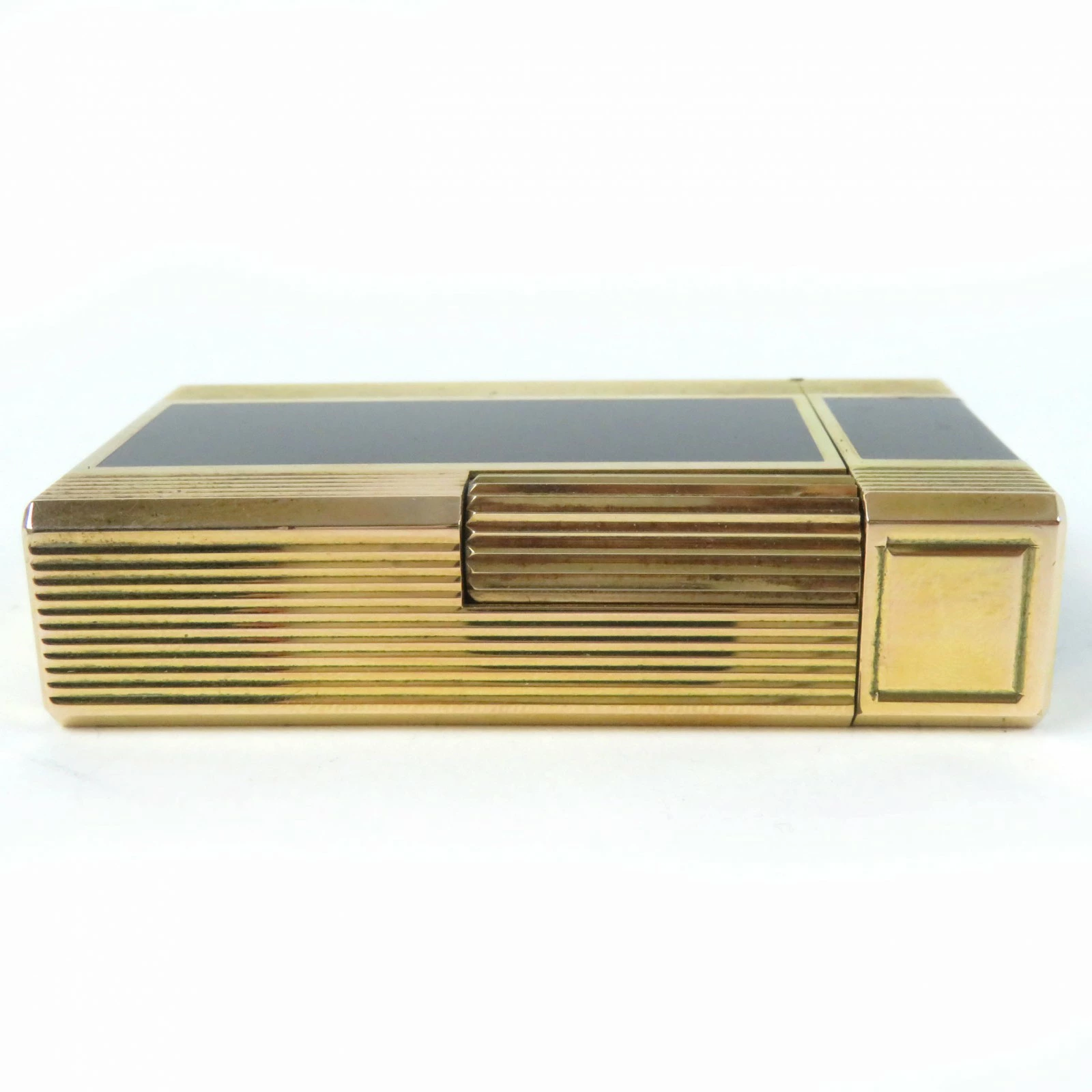 Excellent condition Dupont Line 1 Long Lacquer Square Roller Gas Lighter, Black and Gold, Made in France, Men's, Unable to Light [Pre-owned]