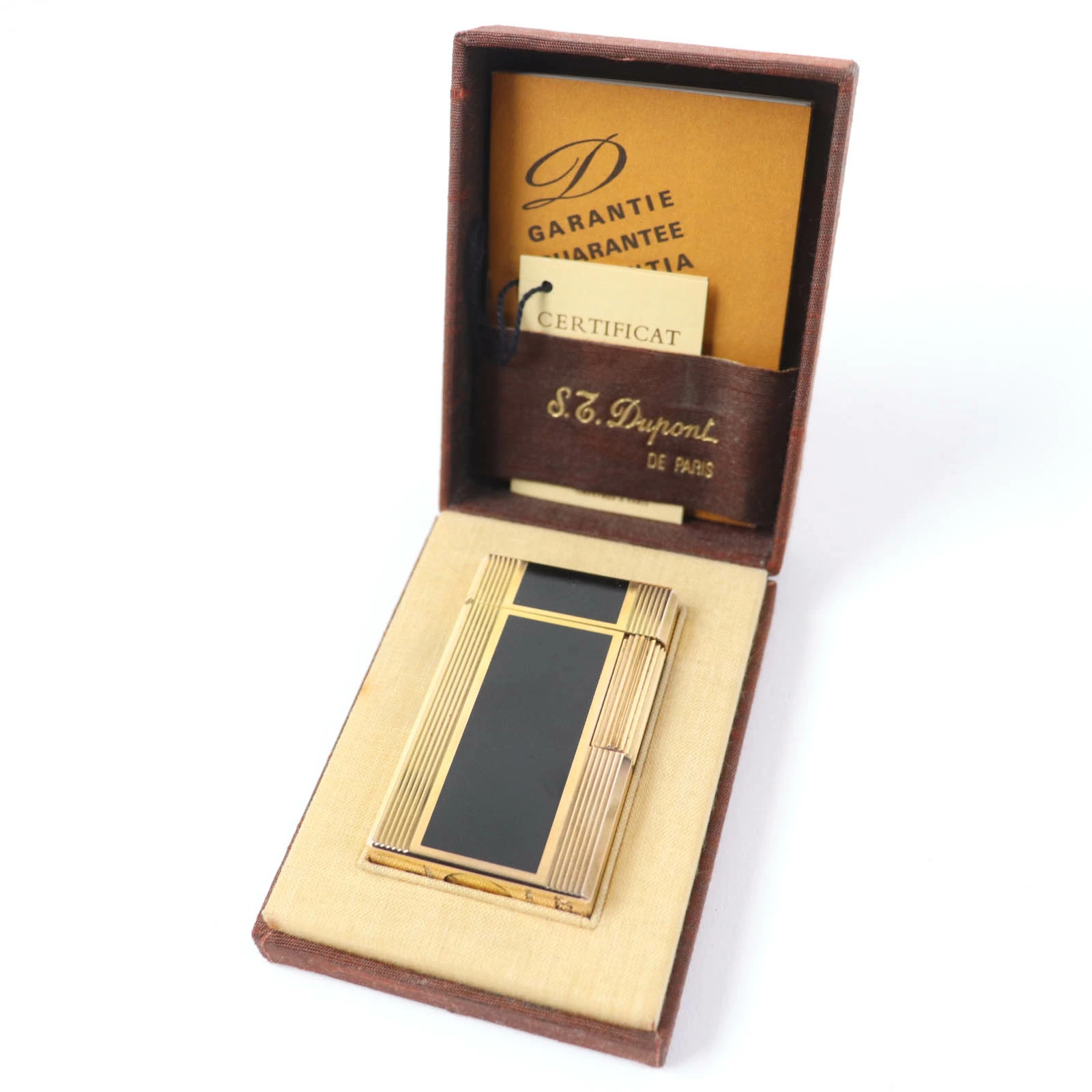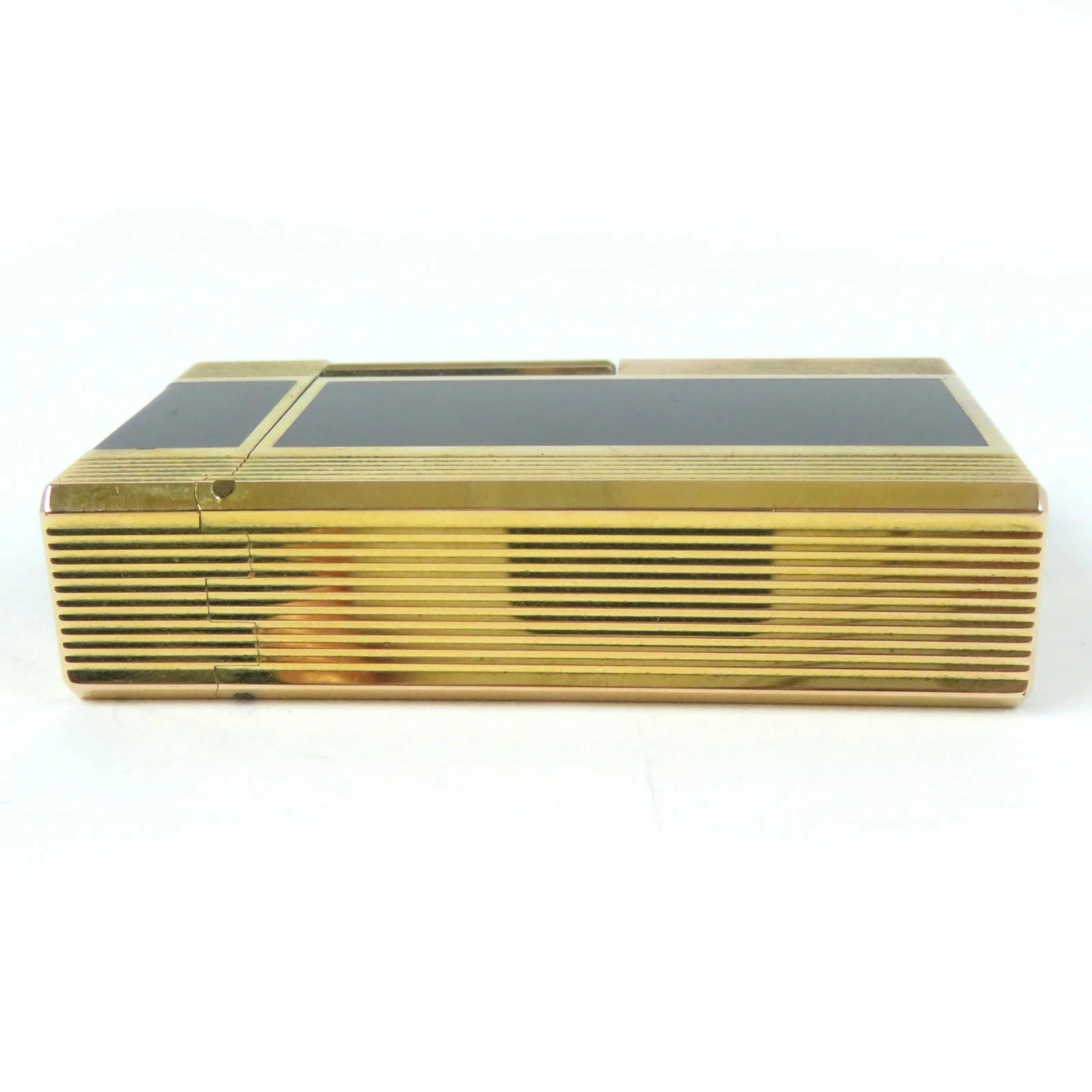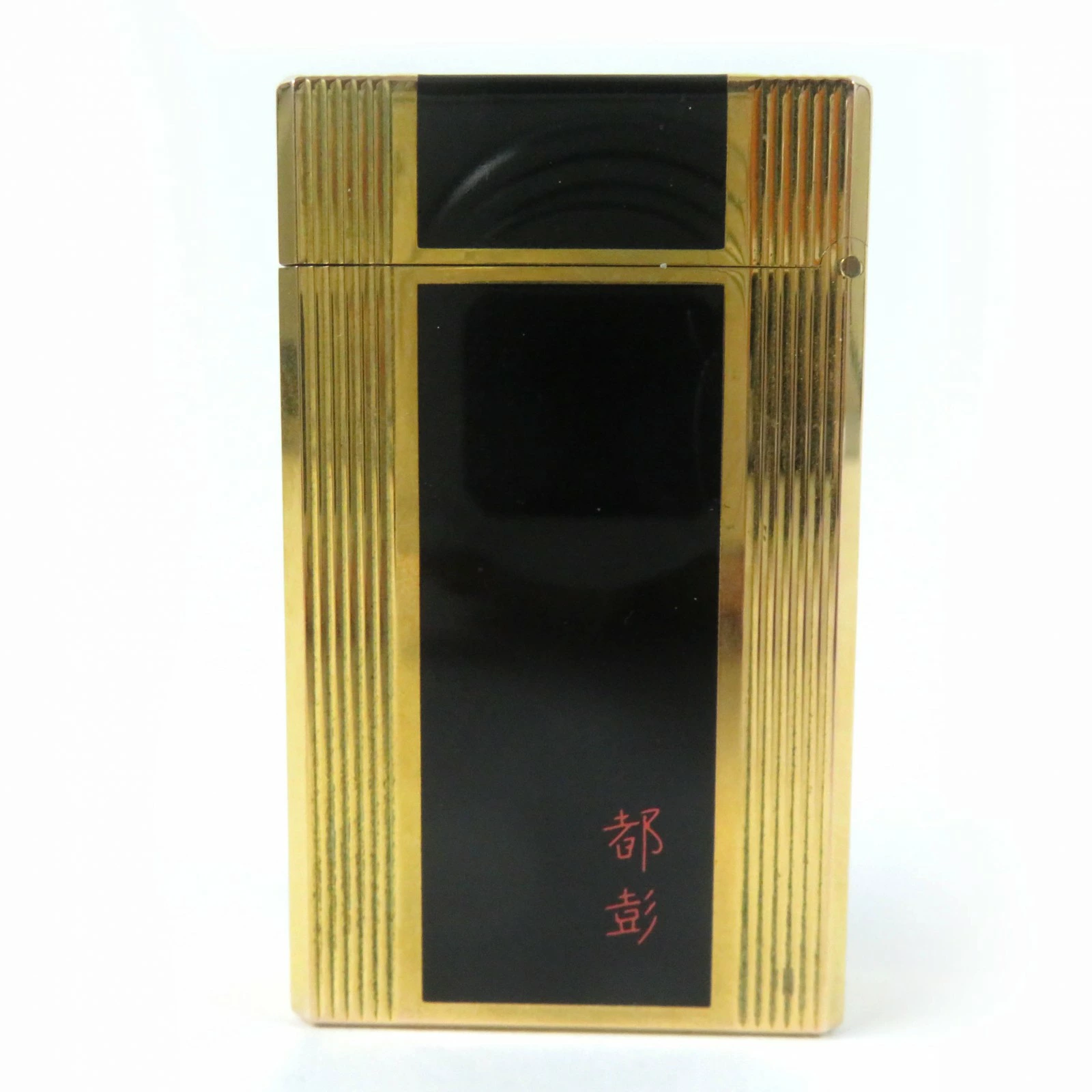 Excellent condition Dupont Line 1 Long Lacquer Square Roller Gas Lighter, Black and Gold, Made in France, Men's, Unable to Light [Pre-owned]