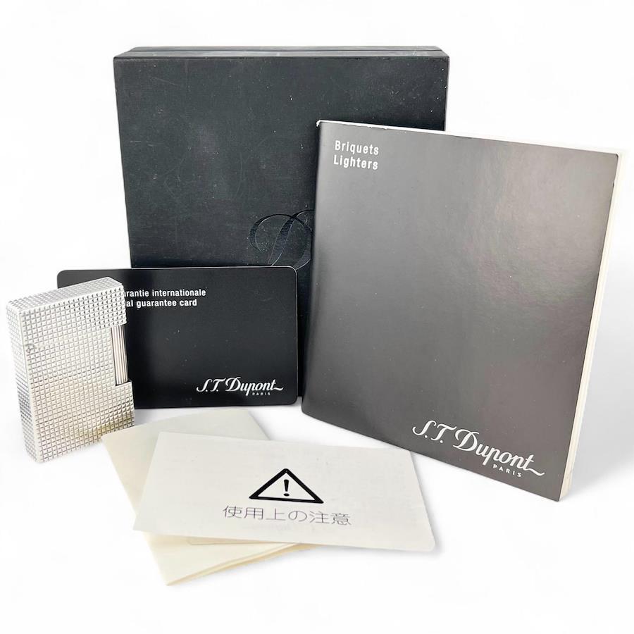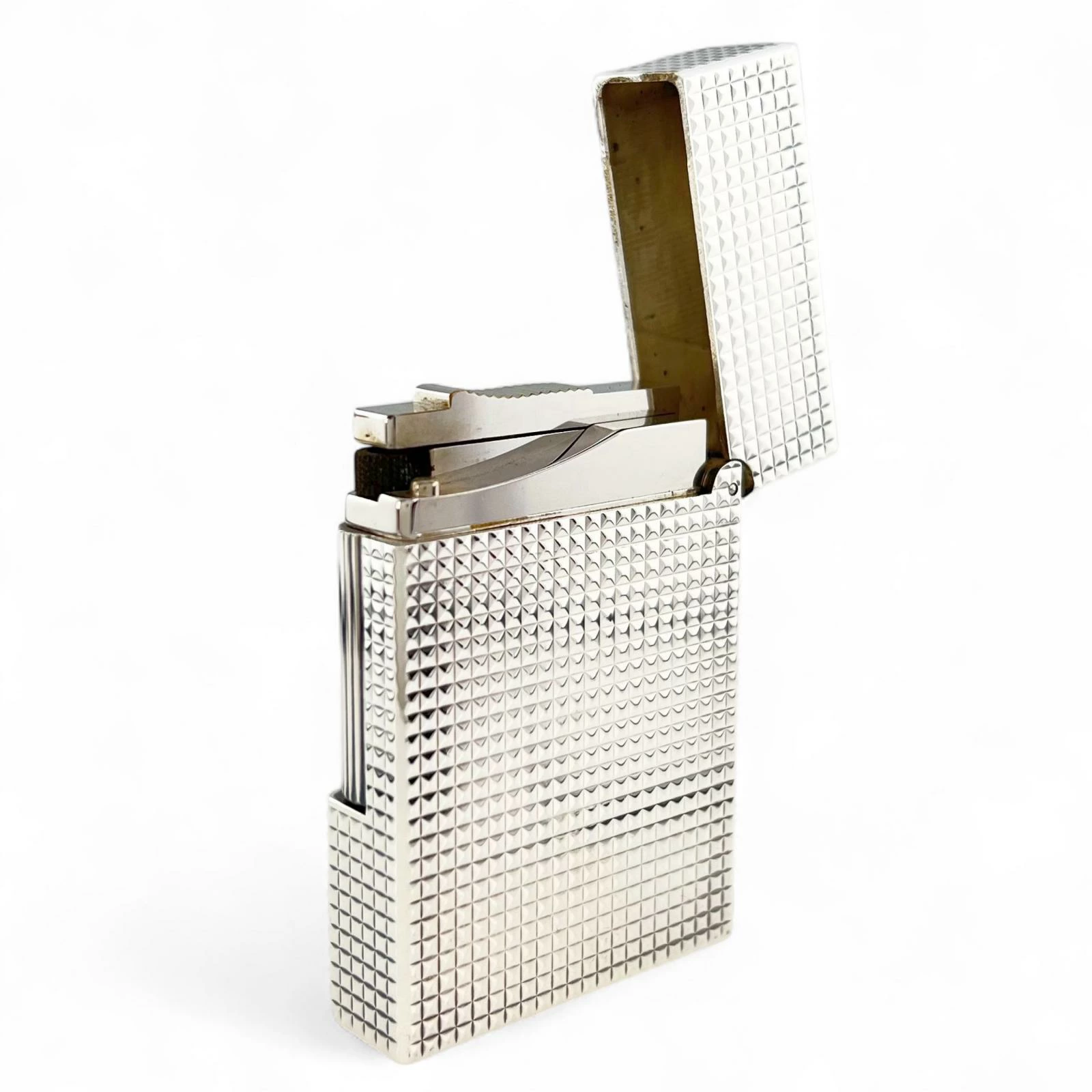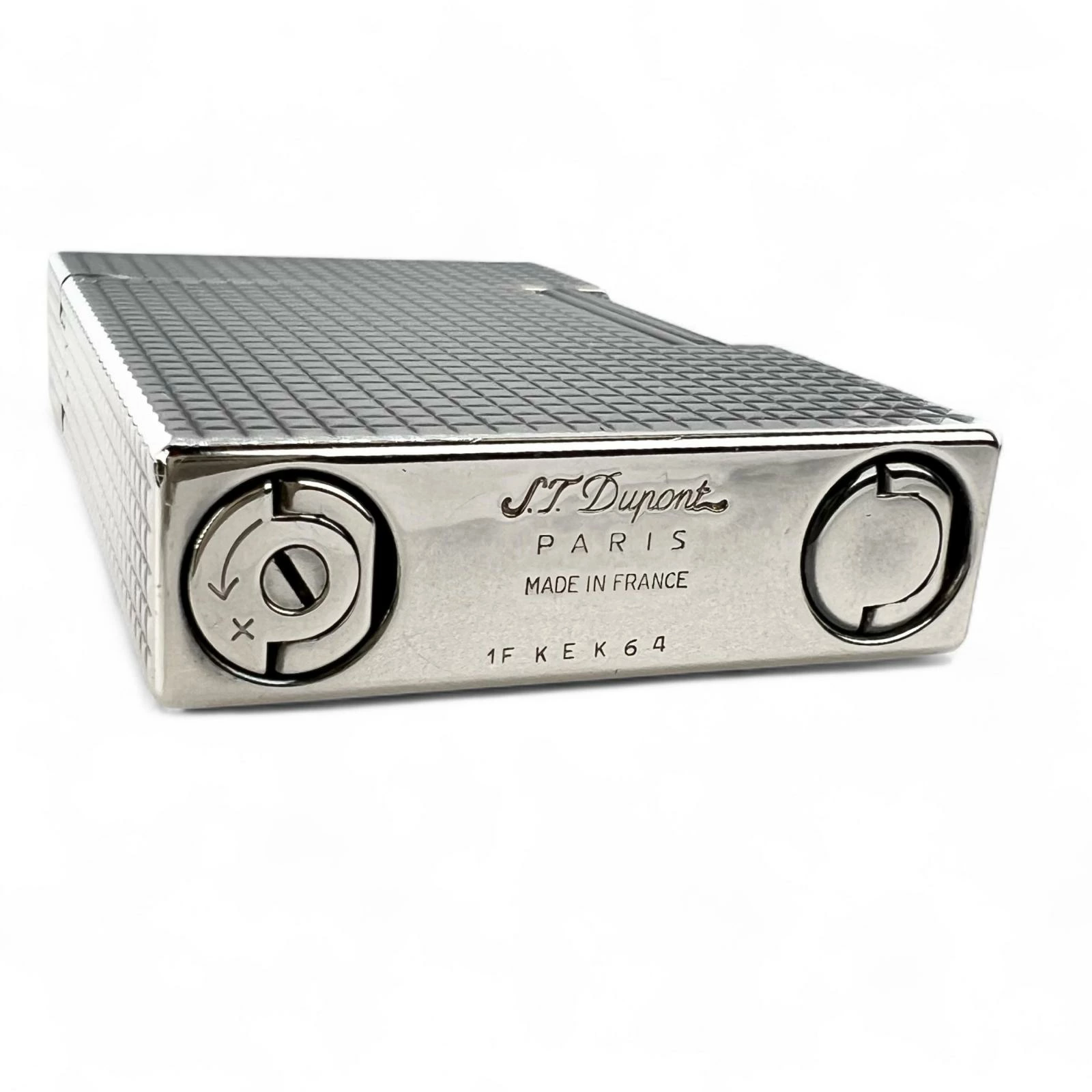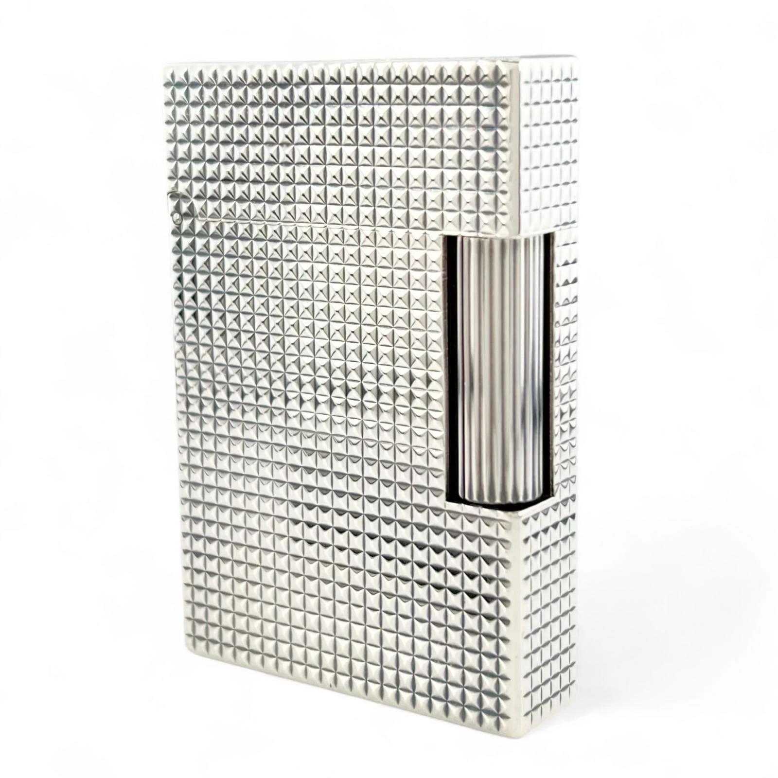 Excellent condition Dupont Line 2 Diamond Head Roller Gas Lighter, Silver, with Case, Made in France, Men's, Ignition Tested [Pre-owned]