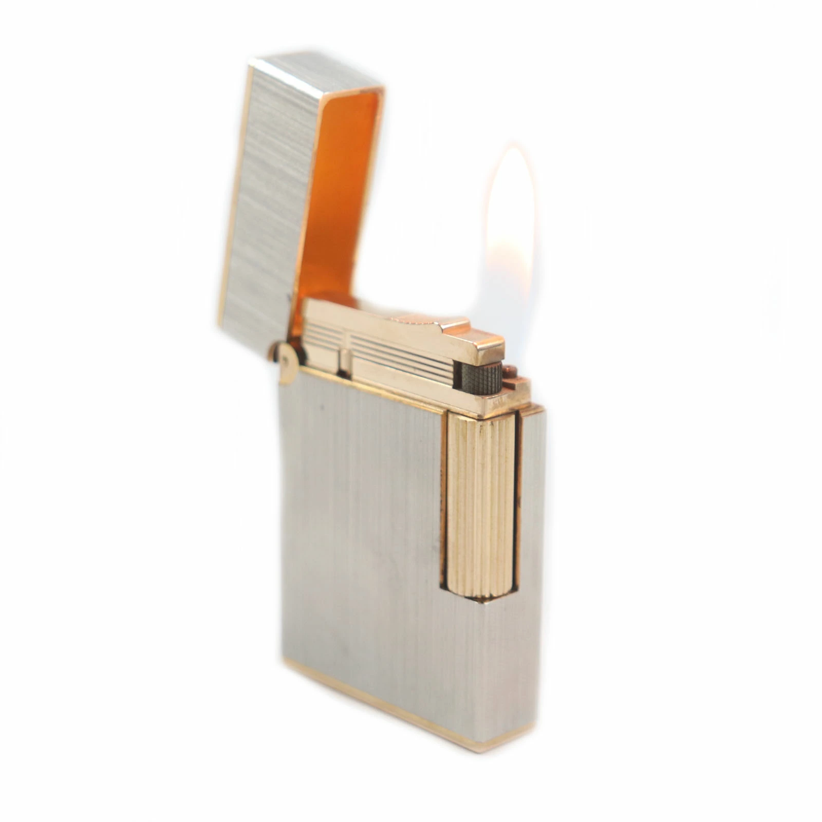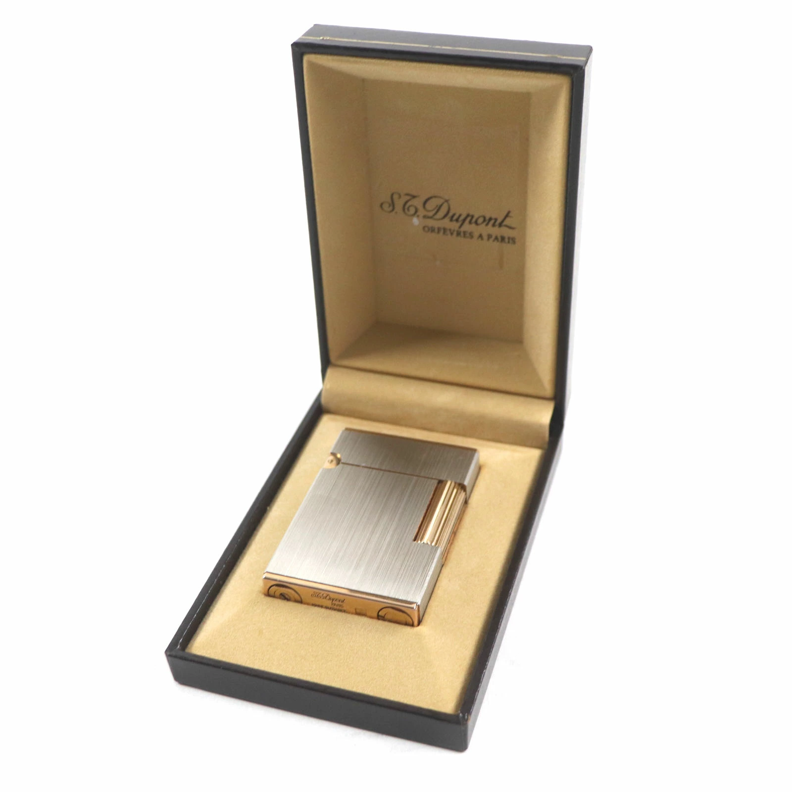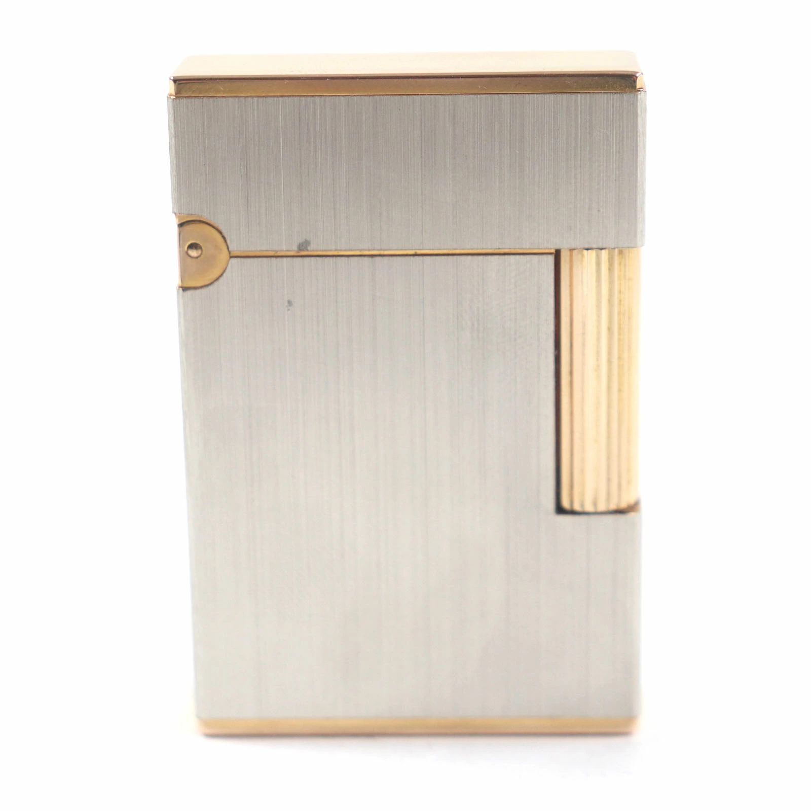 Excellent condition: Dupont Line 2 Square Hairline Roller Gas Lighter, Silver and Gold, with Case, Made in France, Men's, Fire-tested [Pre-owned]