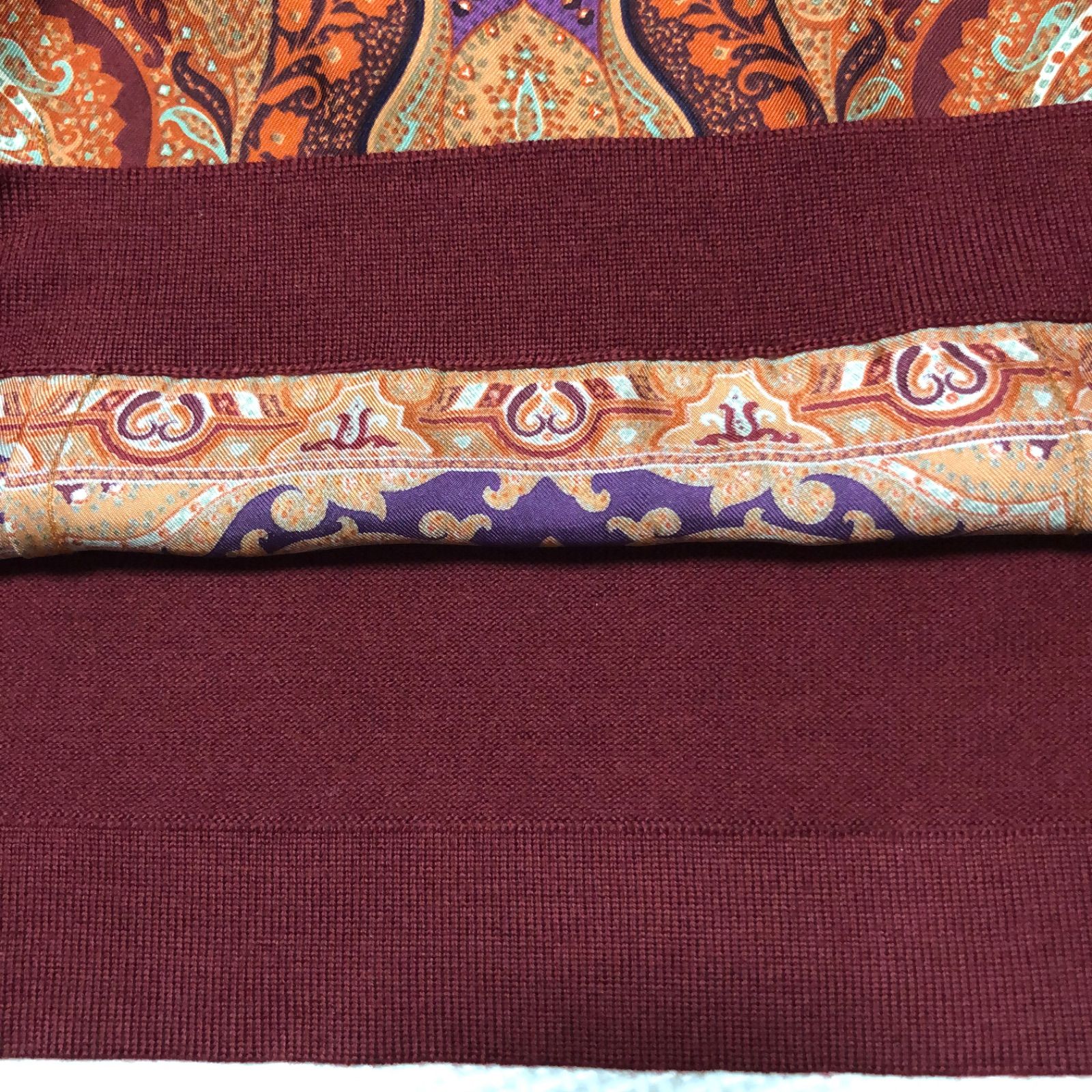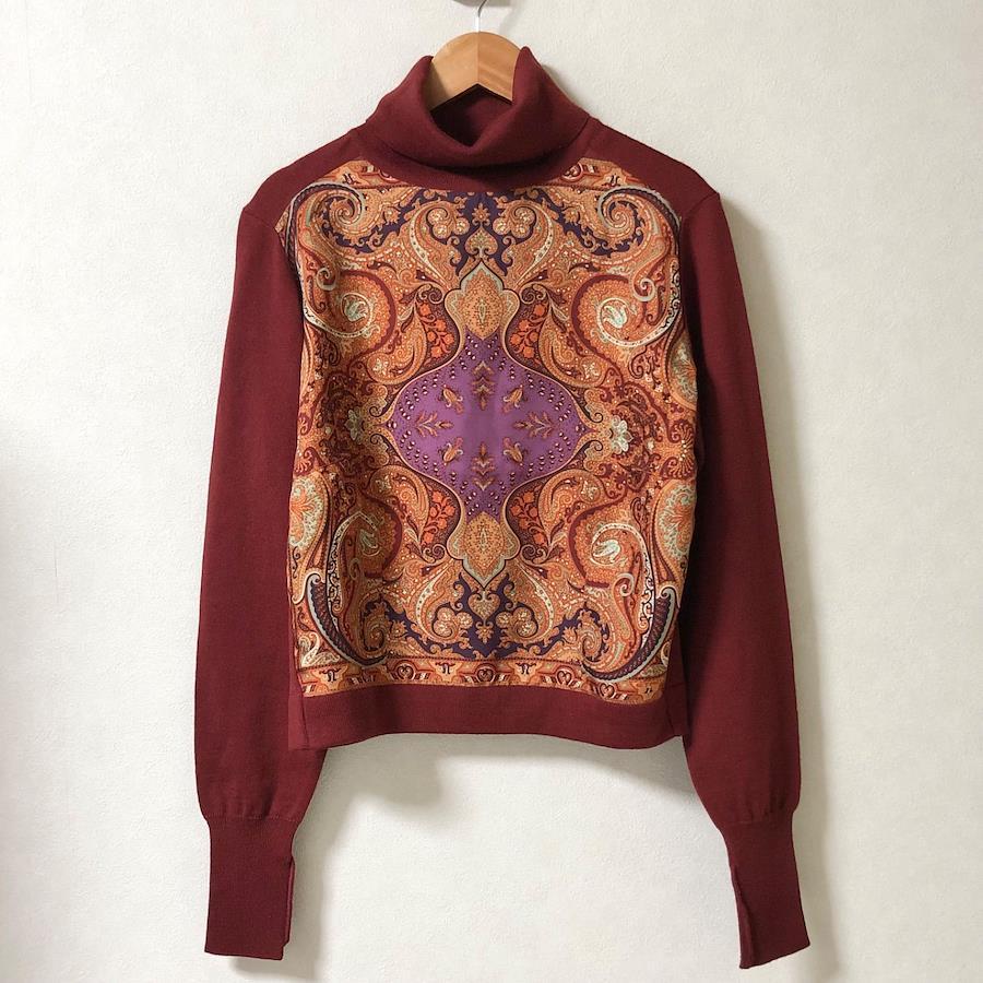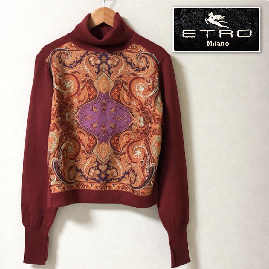 ■商品概要ETRO エトロ前面ペイズリー総柄タートルネックセーター長袖size44(L)イタリア製ウール×シルクレッド系エンジ×オレンジベージュレディース春秋冬ラグジュアリー 高級 ハイブランド派手