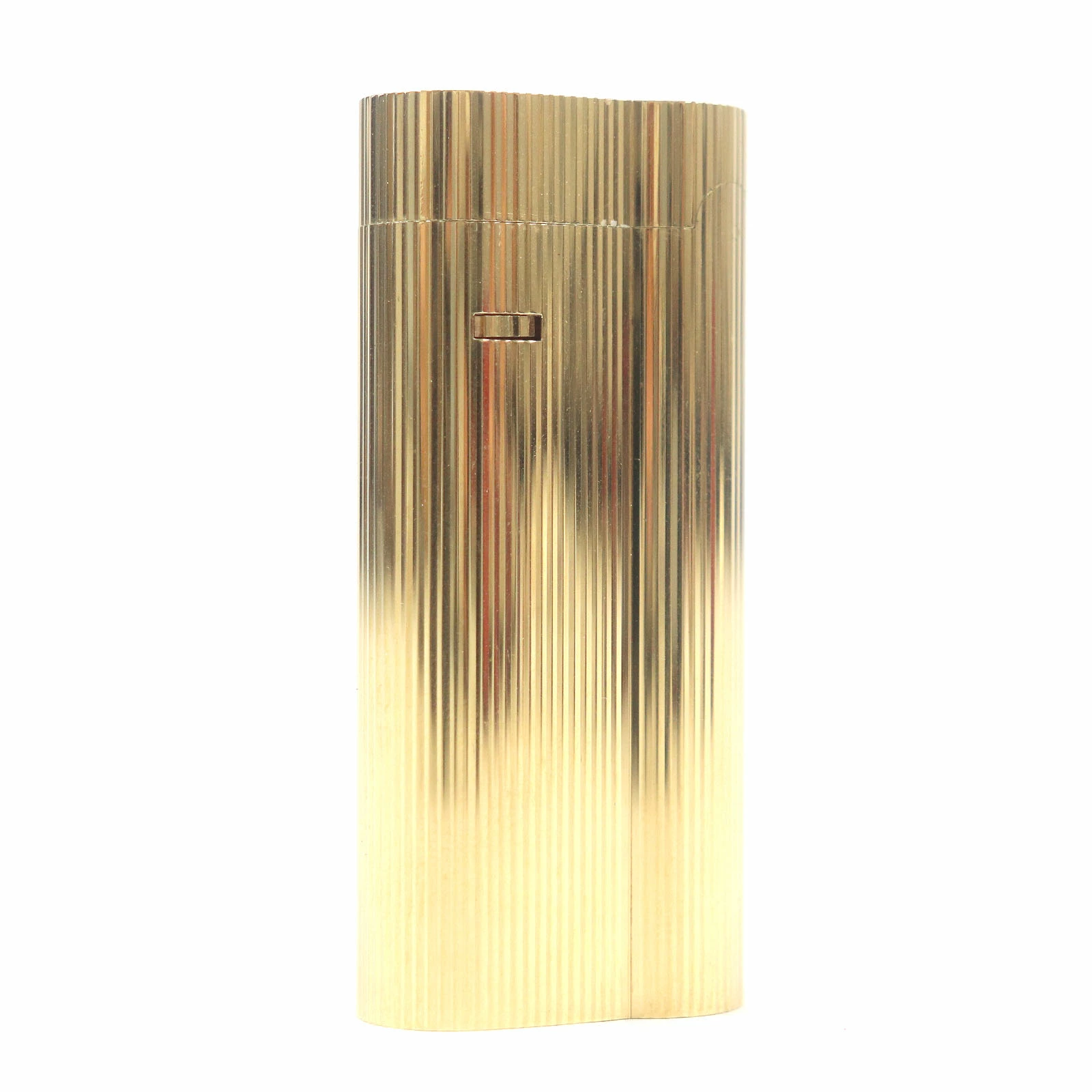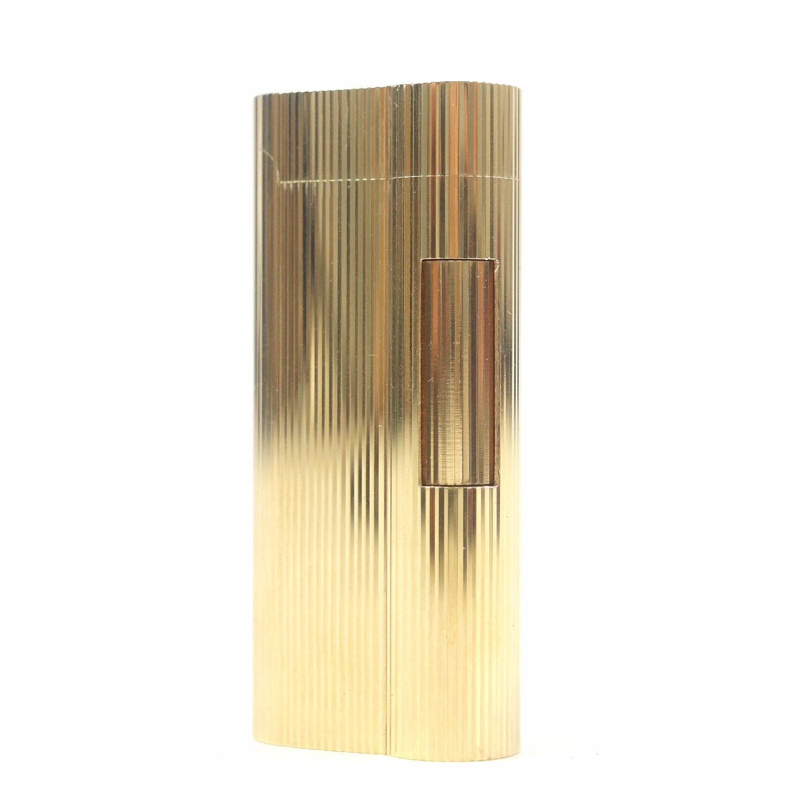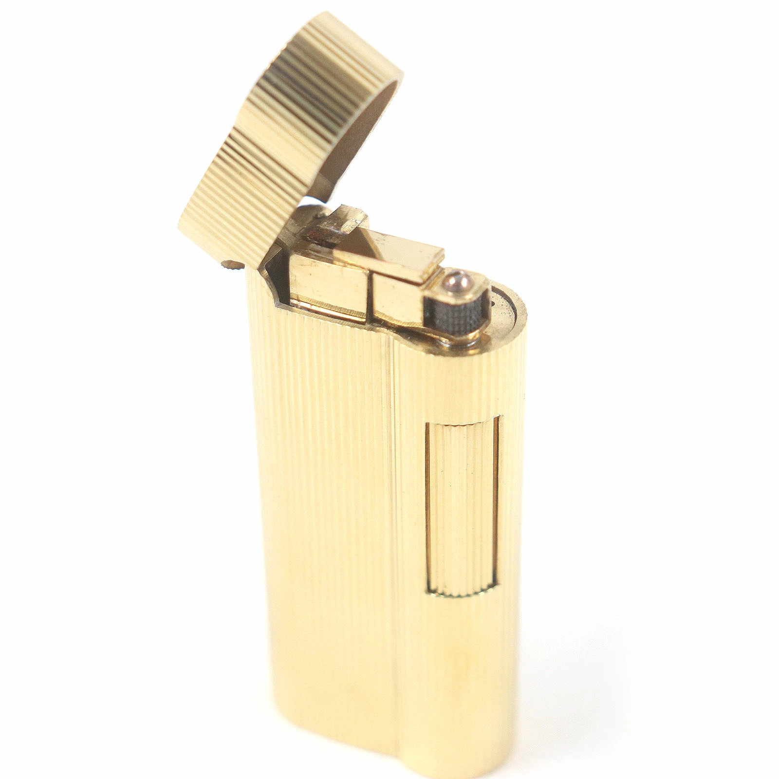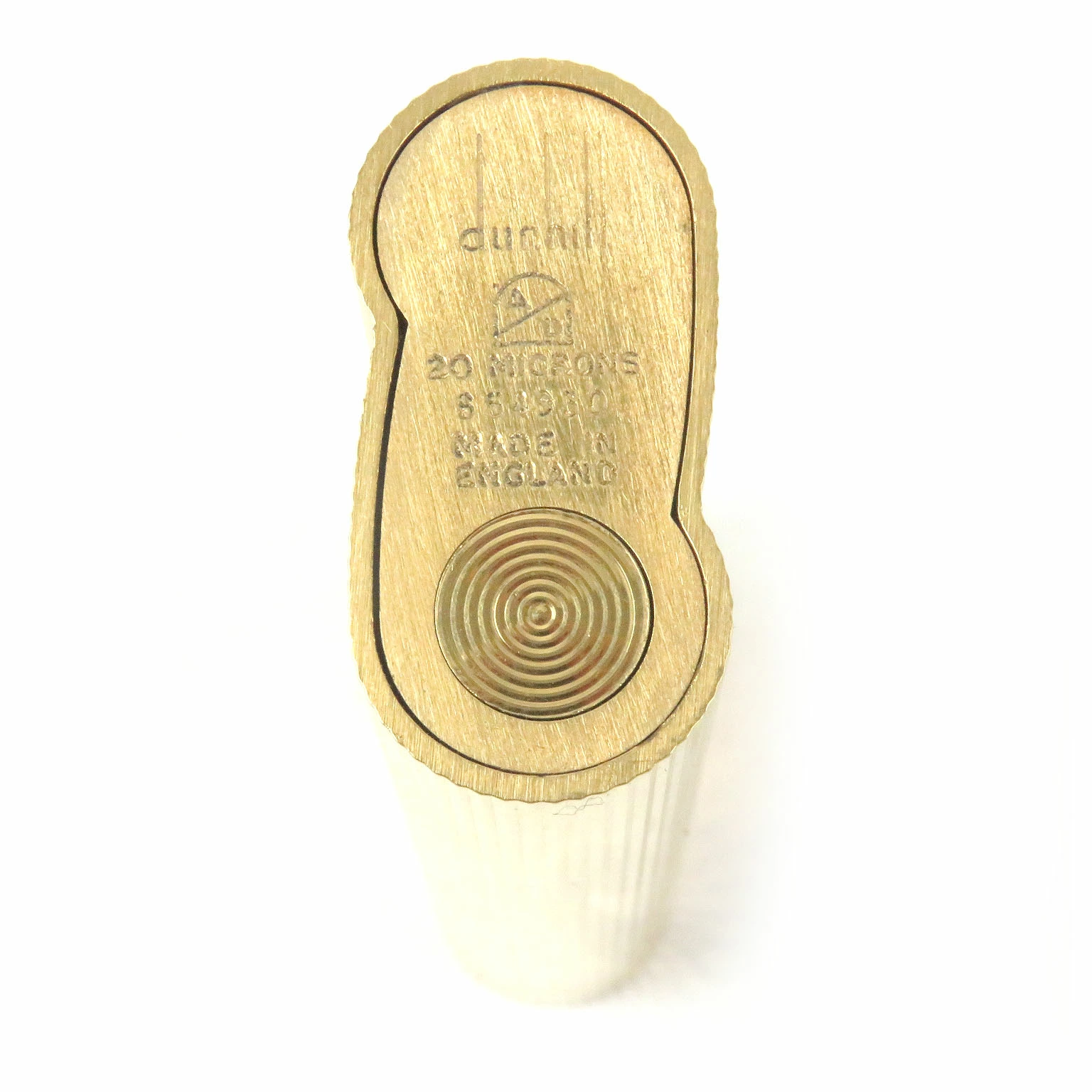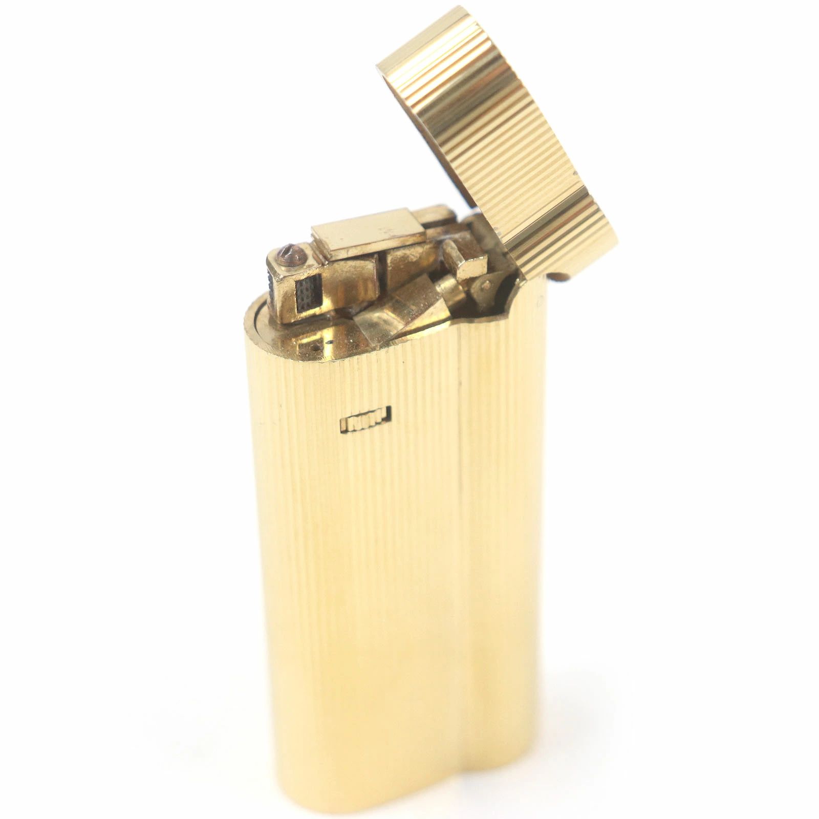 Excellent condition exterior. Dunhill striped oval roller gas lighter, gold, made in England, men's. Unable to light. [Pre-owned]