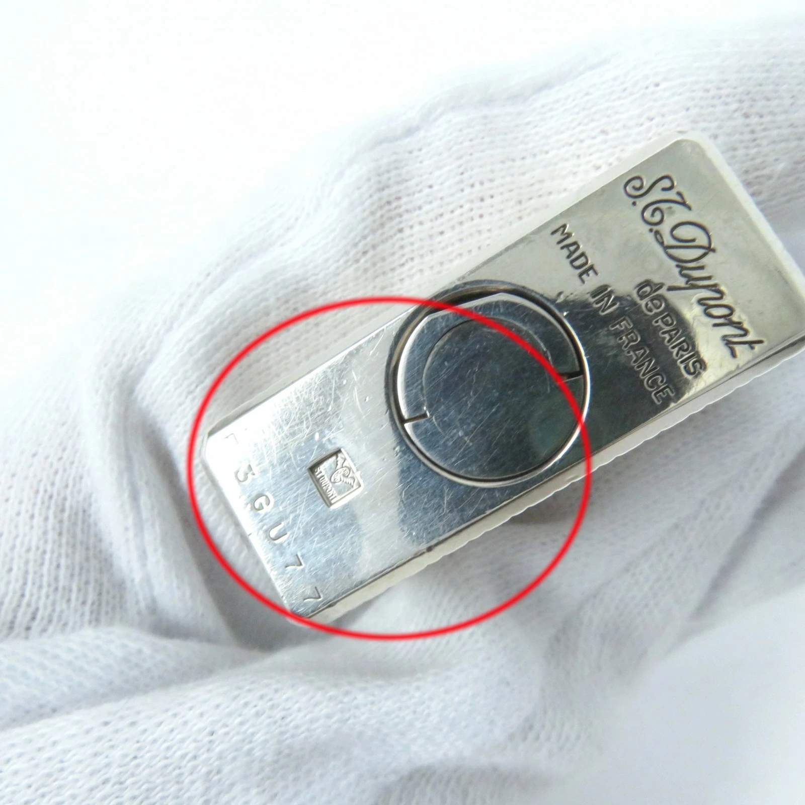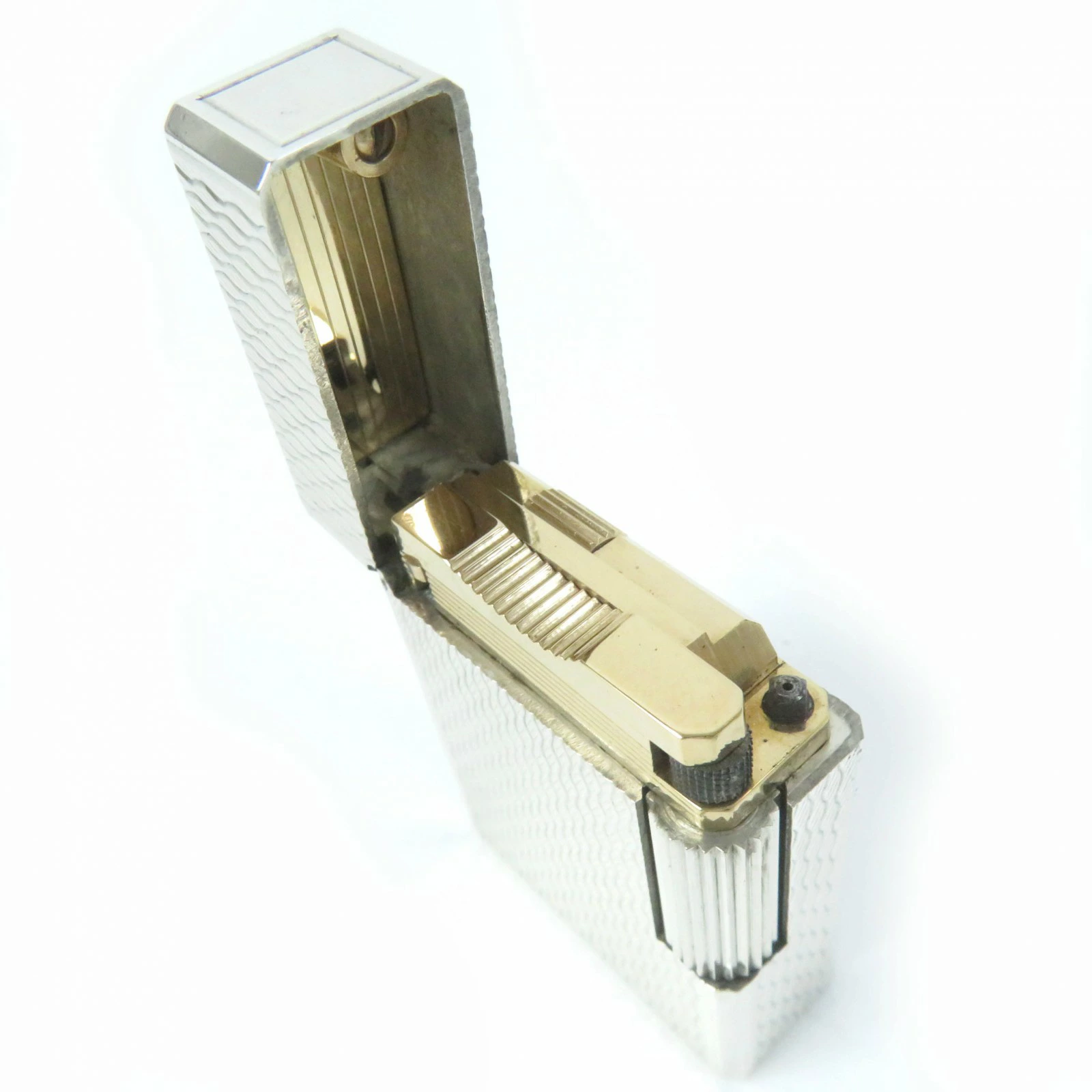 Excellent condition exterior. Dupont Line 1 Short, all-over print, square roller-style gas lighter, silver, made in France, men's. Unable to light. [Pre-owned]