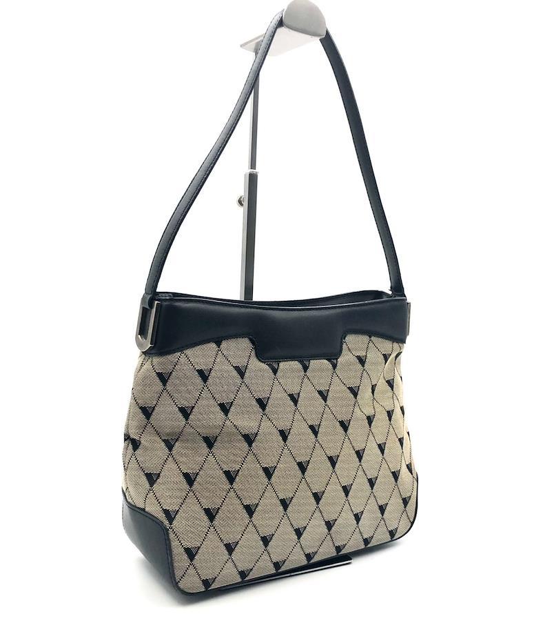 Excellent condition! Extremely rare design! Valextra one-shoulder bag in argyle check and diamond pattern. Canvas and leather in black and gray. Made in Italy. Engraved.