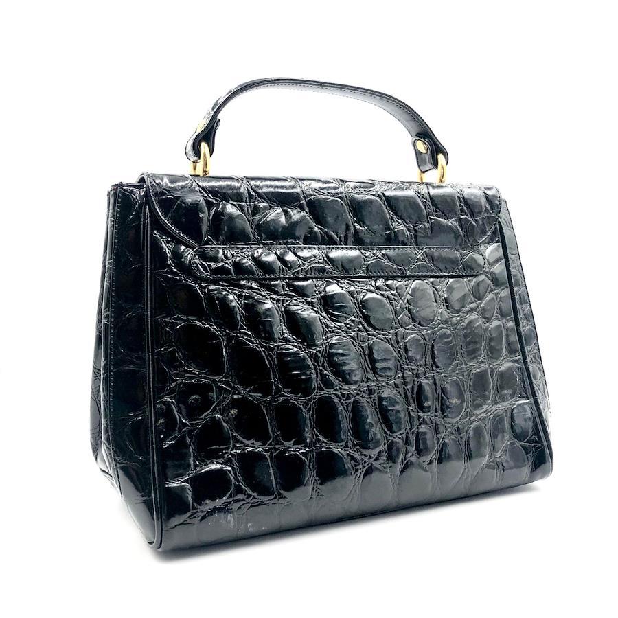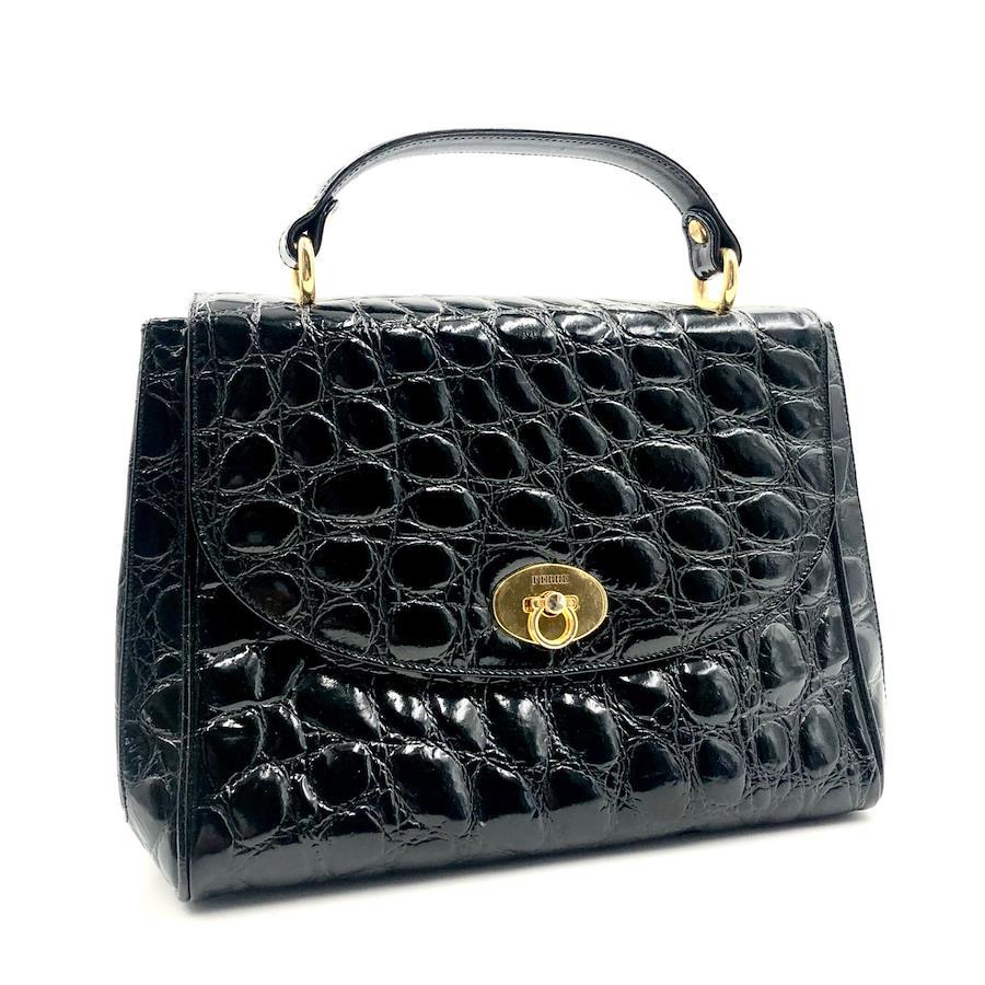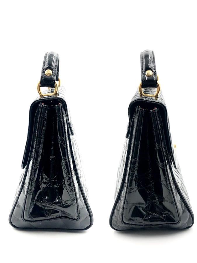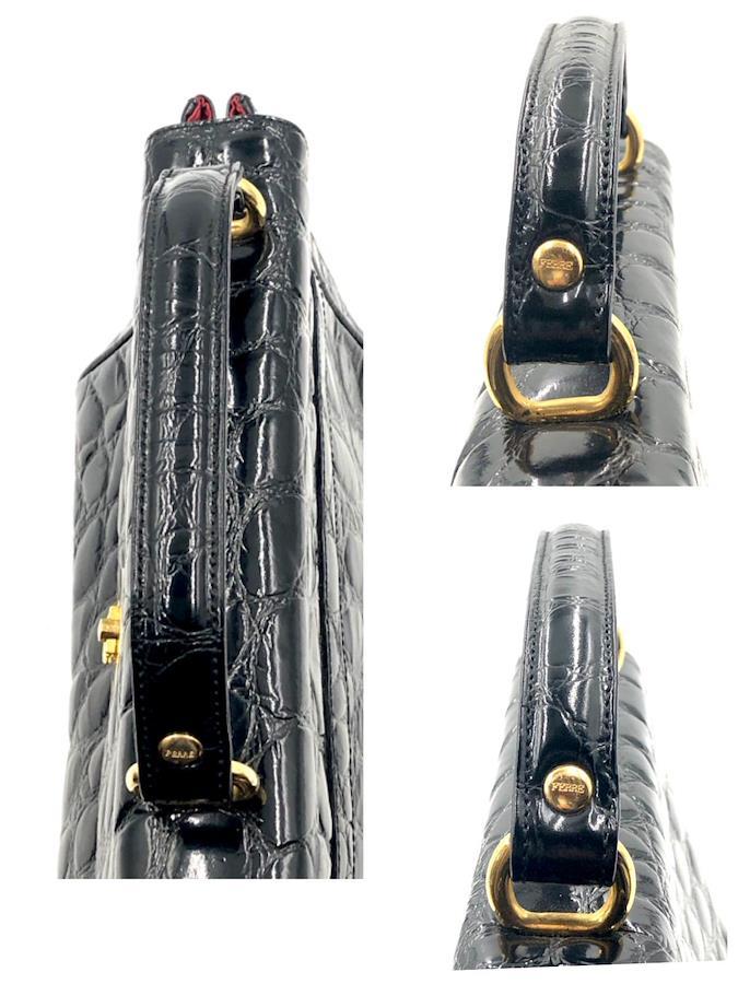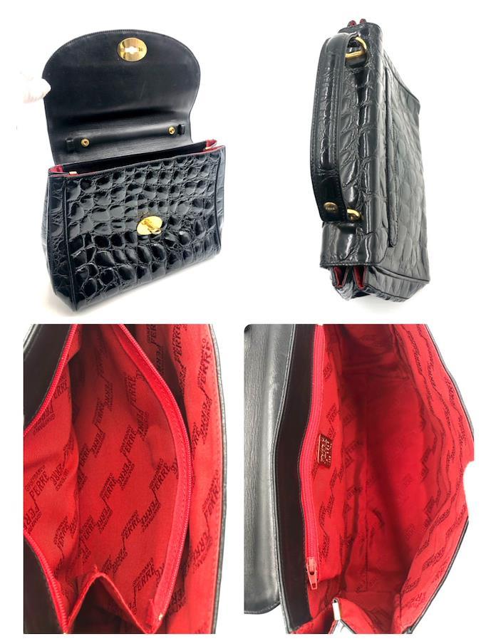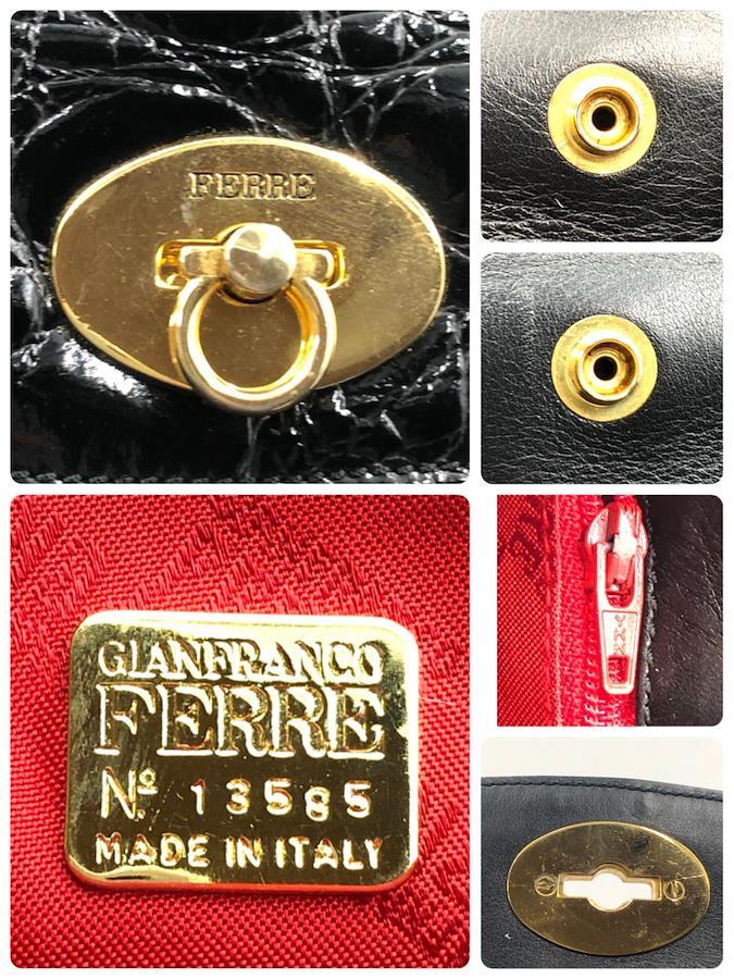 ■商品概要GIANFRANCO FERRE ジャンフランコフェレクロコ型押しハンドバック フォーマルバッグロゴ金具 ターンロックレザー 本革光沢感ブラックゴールド金具自立イタリア製刻印No.13585裏地レッド×ロゴ総柄レディース冠婚葬祭ラグジュアリー 高級 ハイブランドパーティー、結婚式、お祝い、式典、入学式、卒業式、イベント