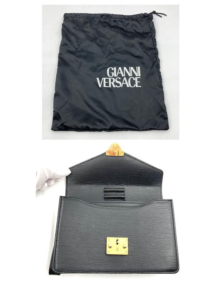 ■商品概要GIANNI VERSACE ジャンニヴェルサーチセカンドバッグ クラッチバッグ ビジネスクラッチストラップ鍵ホックロゴ金具オールレザー 本革ブラックゴールド金具鍵付きメンズ袋ありラグジュアリー 高級