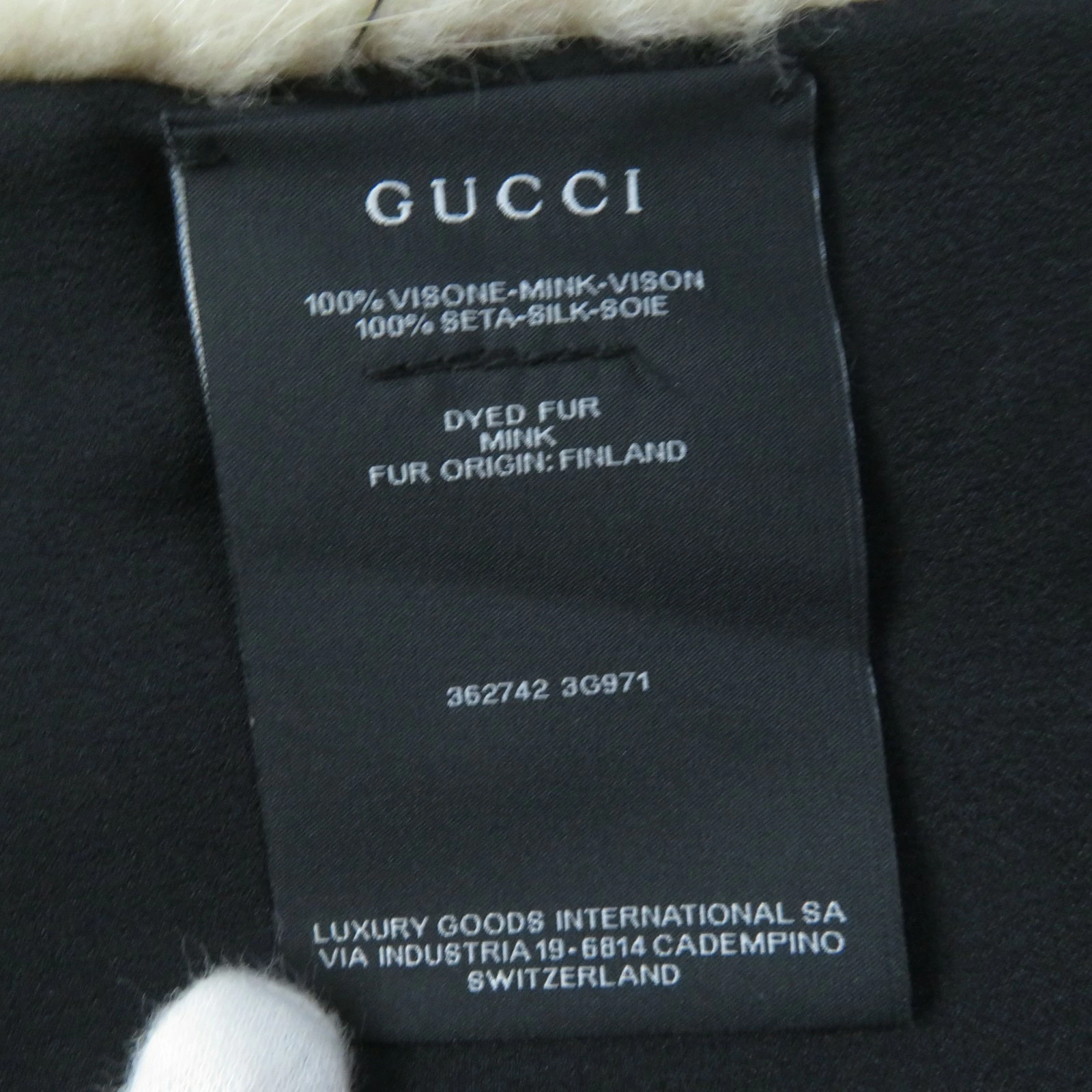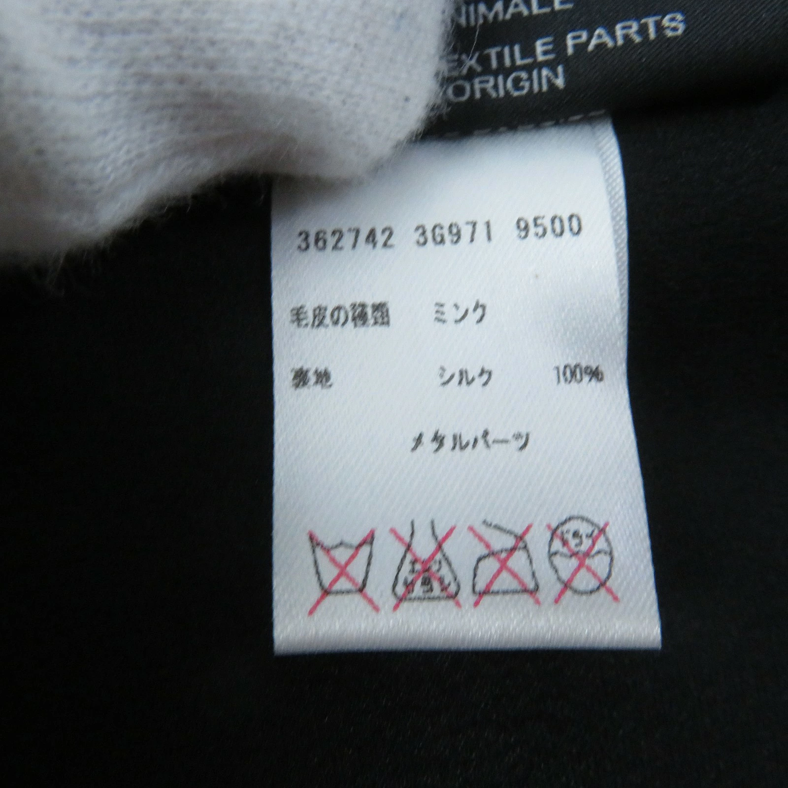| 素材 (material) | 本体:ミンク100% 裏地:シルク100% 本体:ミンク100% 裏地:シルク100% 一部:メタル | ||||||||||||||||