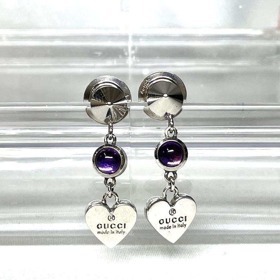 【美品】 GUCCI グッチ ピアス シルバー パープル 925 (44471)