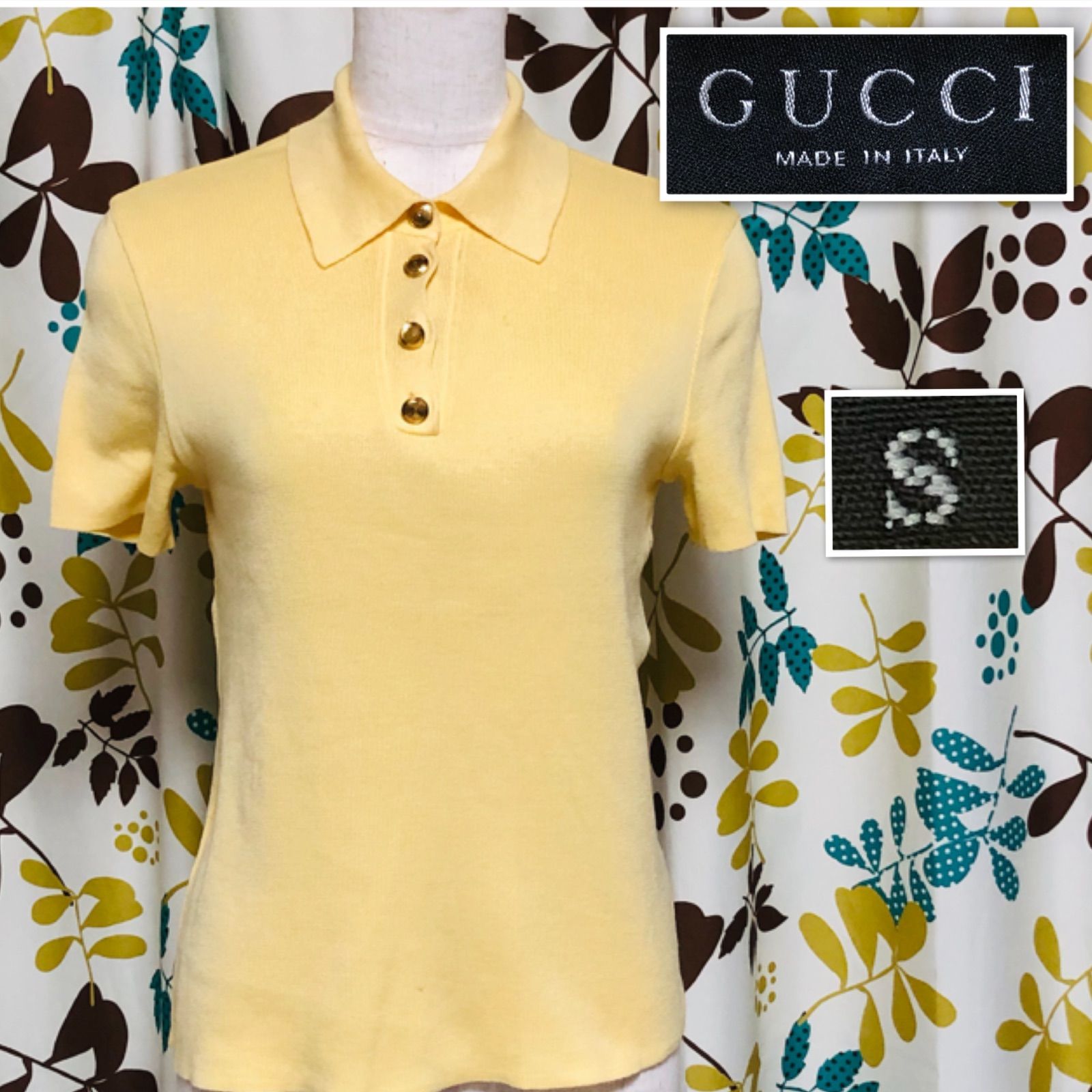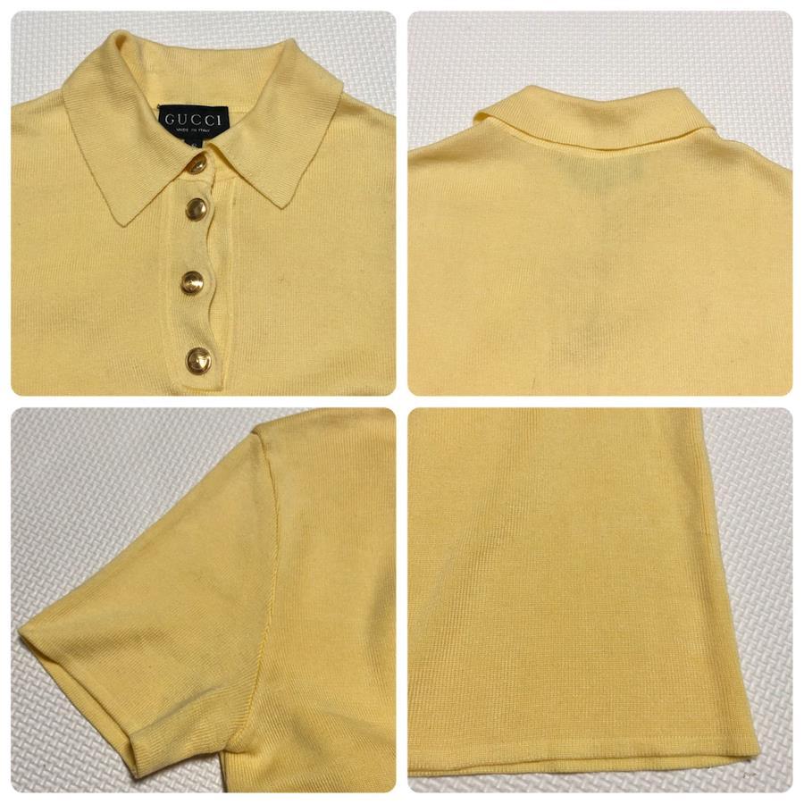 ■商品概要GUCCI グッチGGロゴ金ボタン半袖ニットポロシャツsizeSイタリア製タグありイエローコットン100%レディースラグジュアリー 高級 ハイブランドカジュアル ラグスト