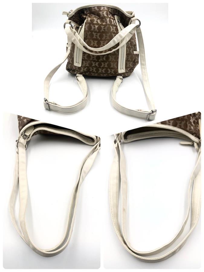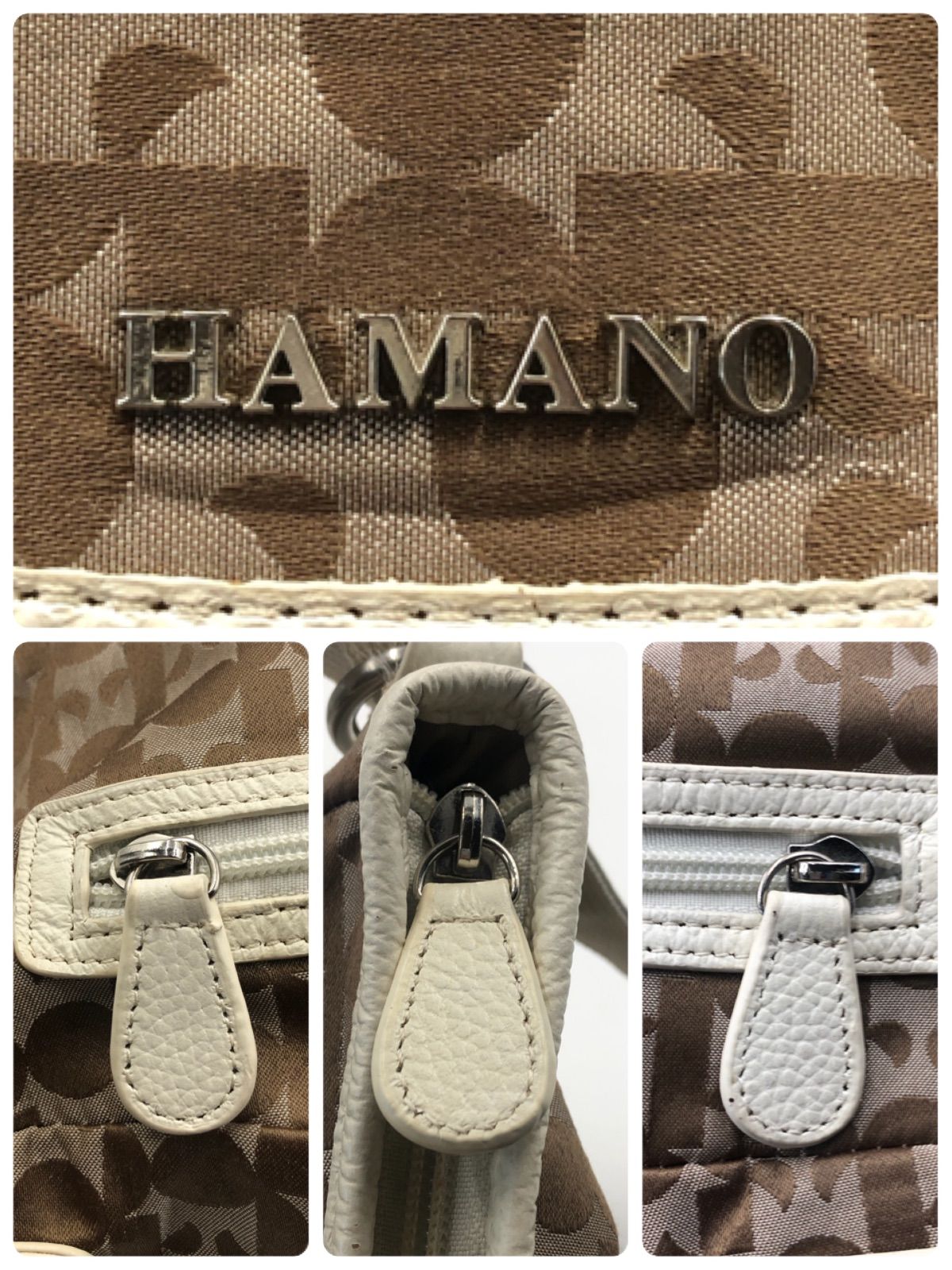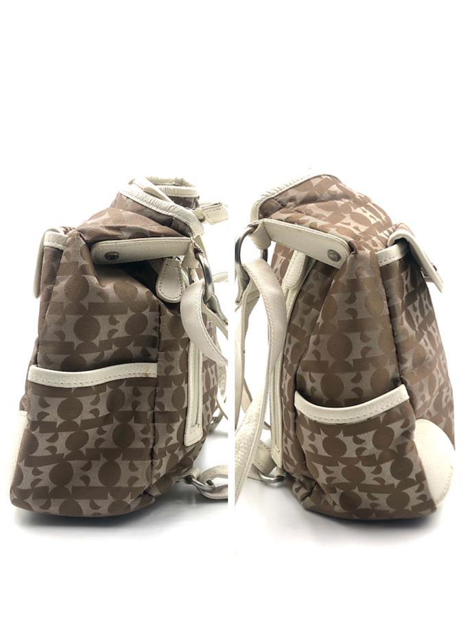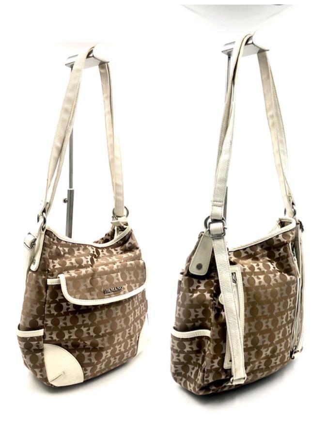■商品概要HAMANO ハマノ 濱野皮革工藝2way リュックサック ショルダーバッグキャンバス×レザーHロゴ総柄ブラウンシルバー金具レディース
