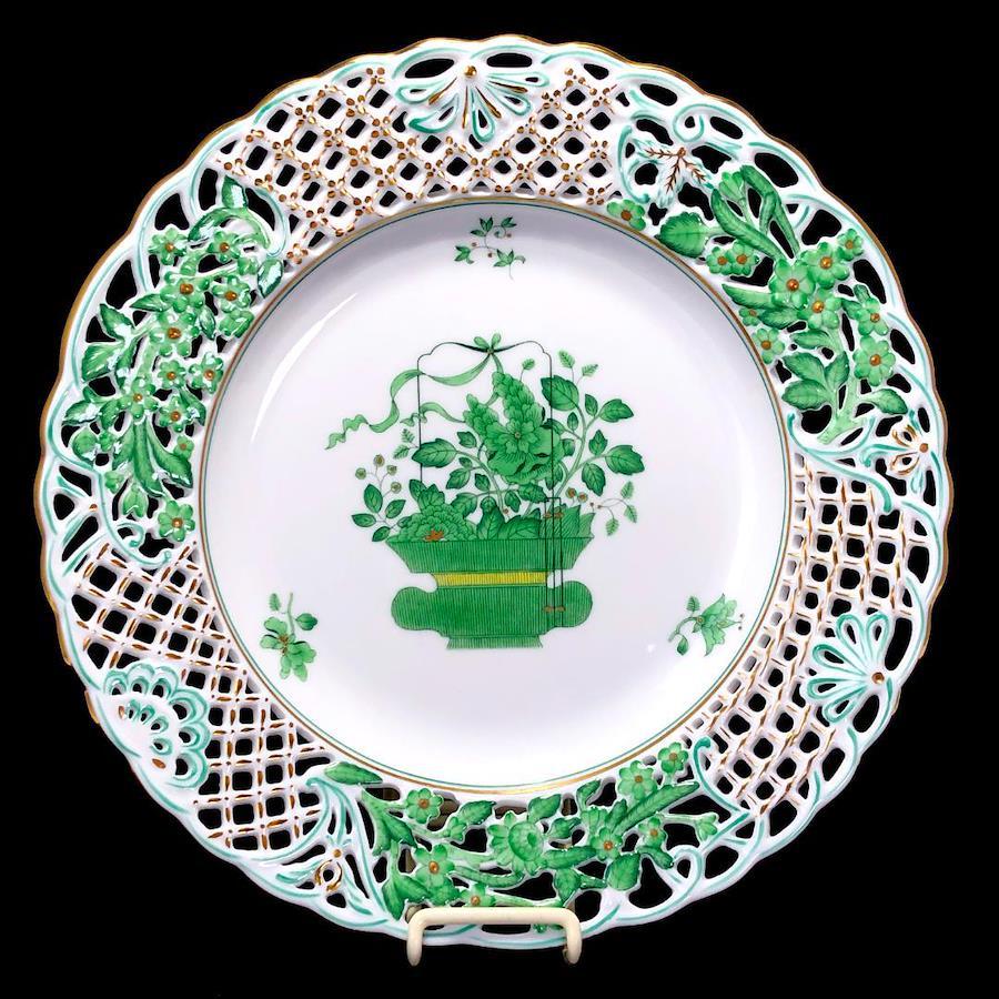 ◎綿密に描かれた清の花籠と金彩の輝き◎透かし技法による綿密で美しいデザイン