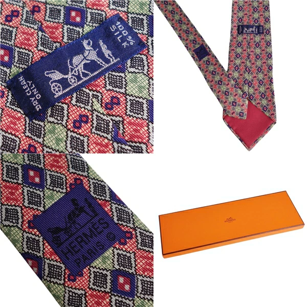 [Excellent Condition] Hermes HERMES Tie, All-over Pattern, 100% Silk, Men's, Made in France, Multicolor [Pre-owned]