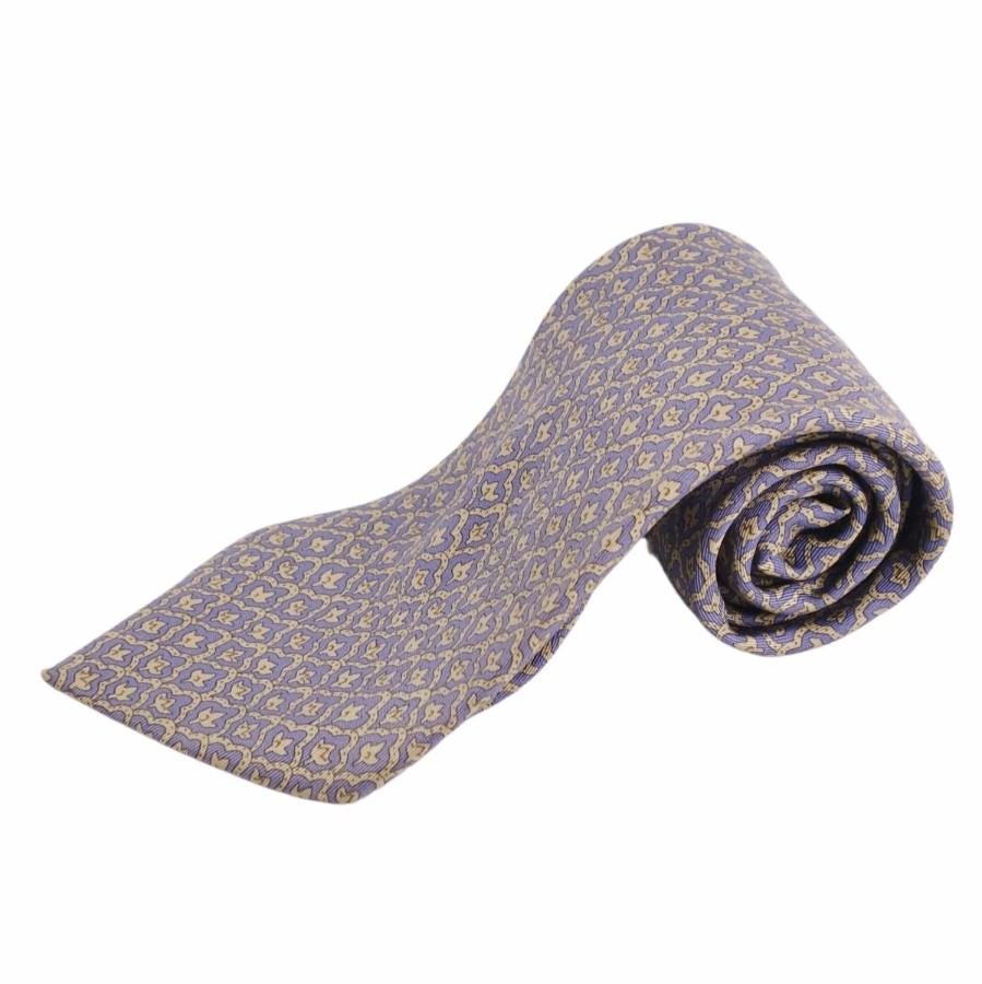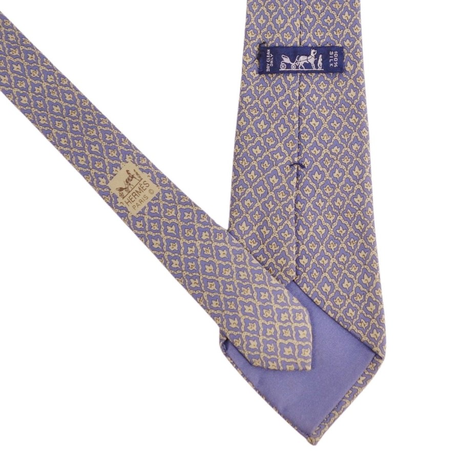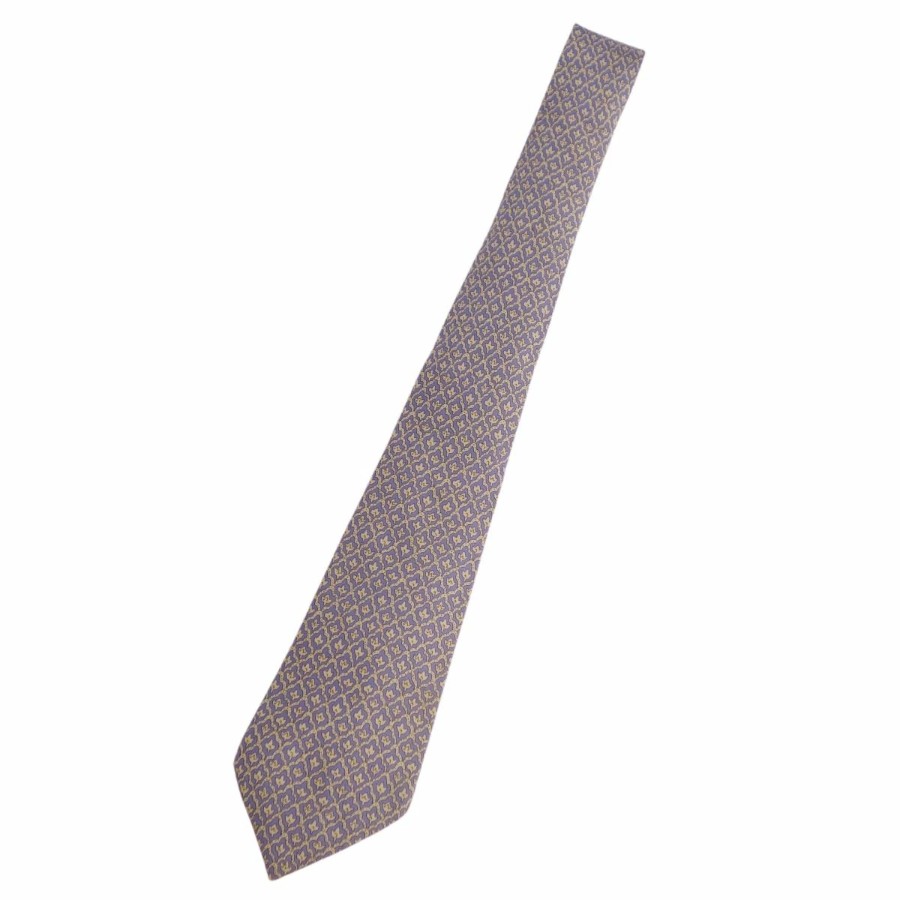 [Excellent Condition] Hermes HERMES Tie, All-over Pattern, Silk, Men's, Made in France, Navy/Khaki [Used]