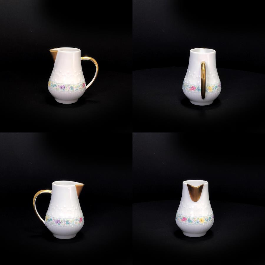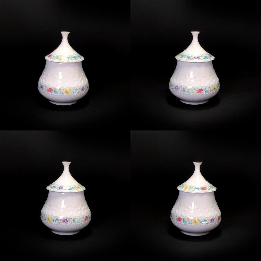 ◎エンボスと繊細でシンプルな野花の描画◎ティーポット・シュガーポット・クリーマーの3点セット