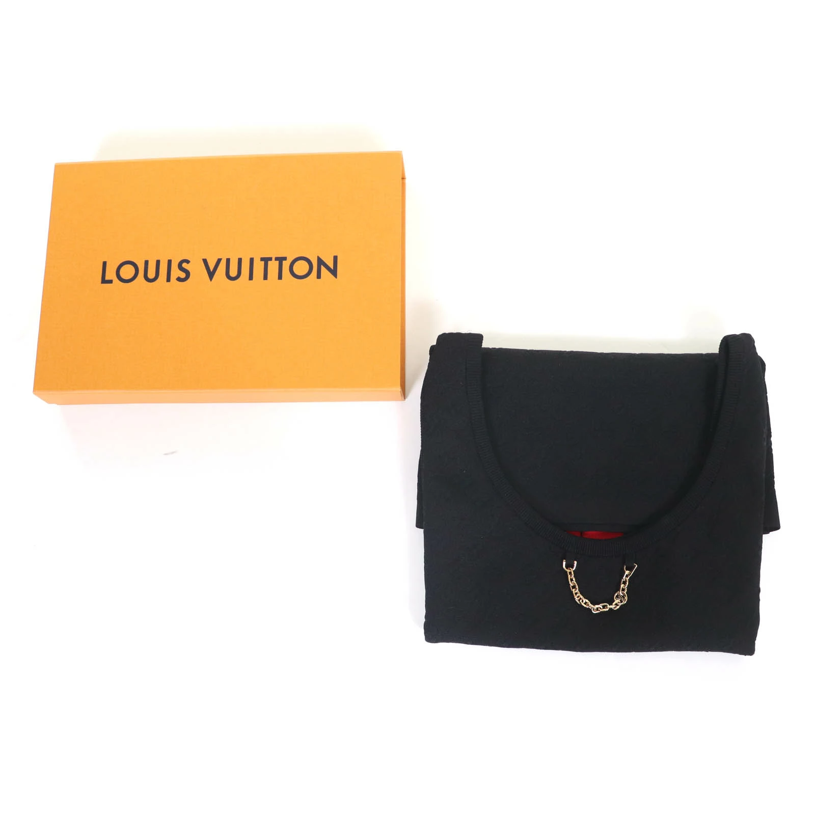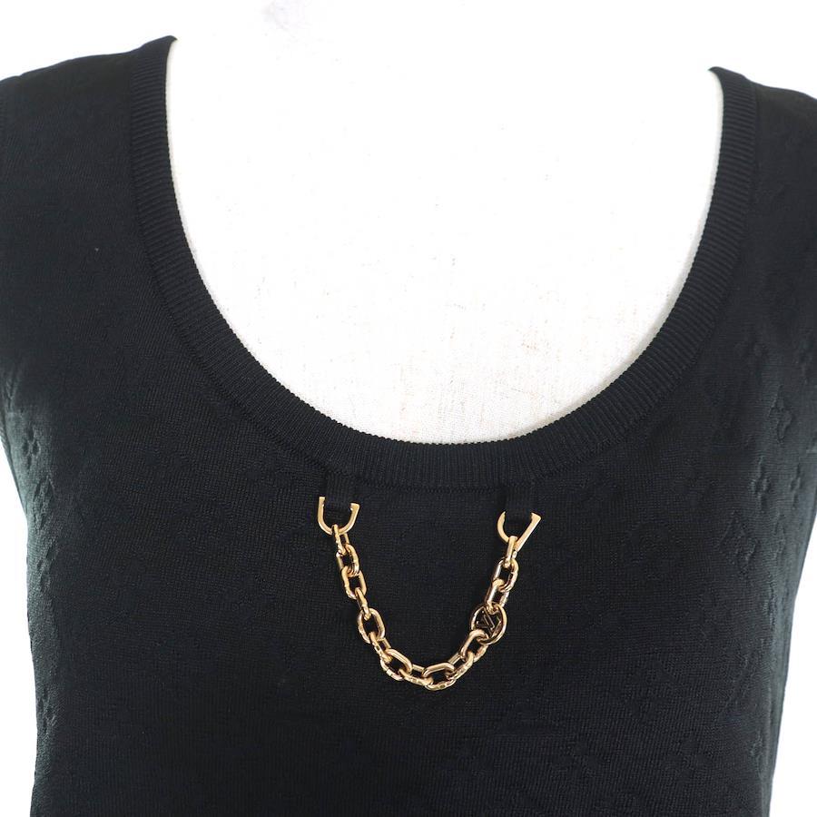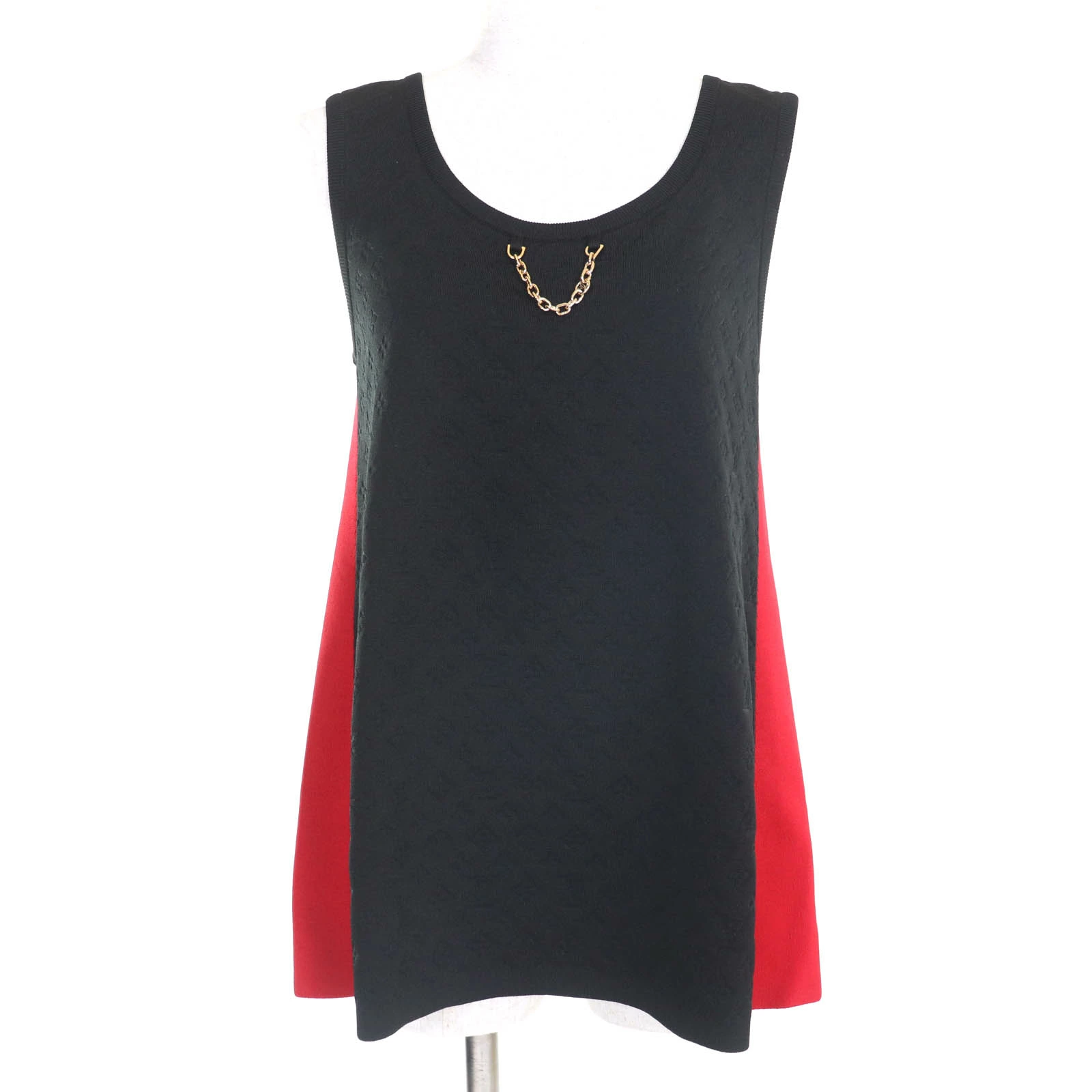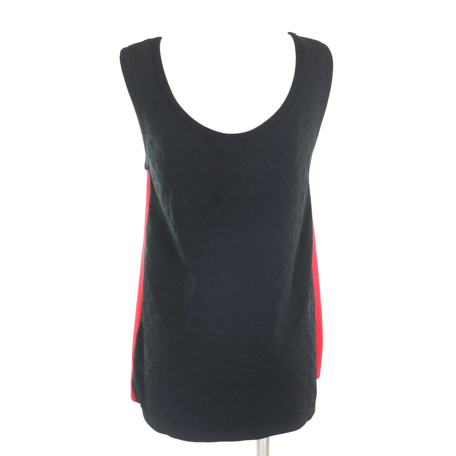 Excellent condition LOUIS VUITTON 2022 silk blend tank top with chain, Monogram print, side stripes, sleeveless cut-and-sew, black/red, size M, with box, authentic, made in Italy, women's [pre-owned]