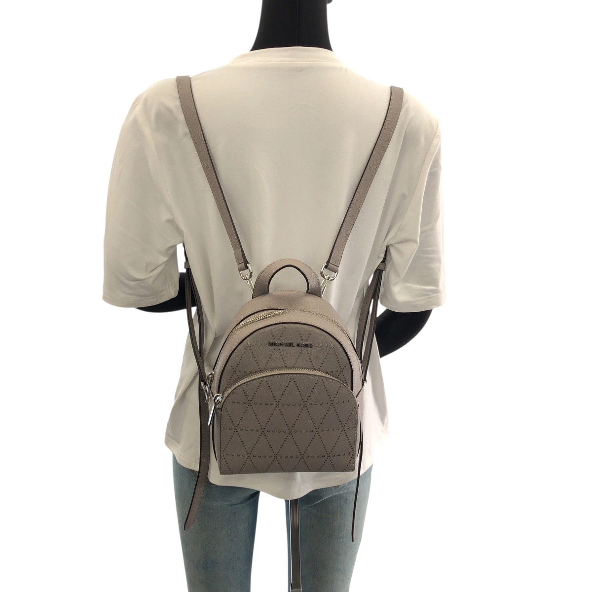 Excellent condition Michael Kors 506853 women's gray leather backpack with silver hardware, size 35H7SAYB1T.