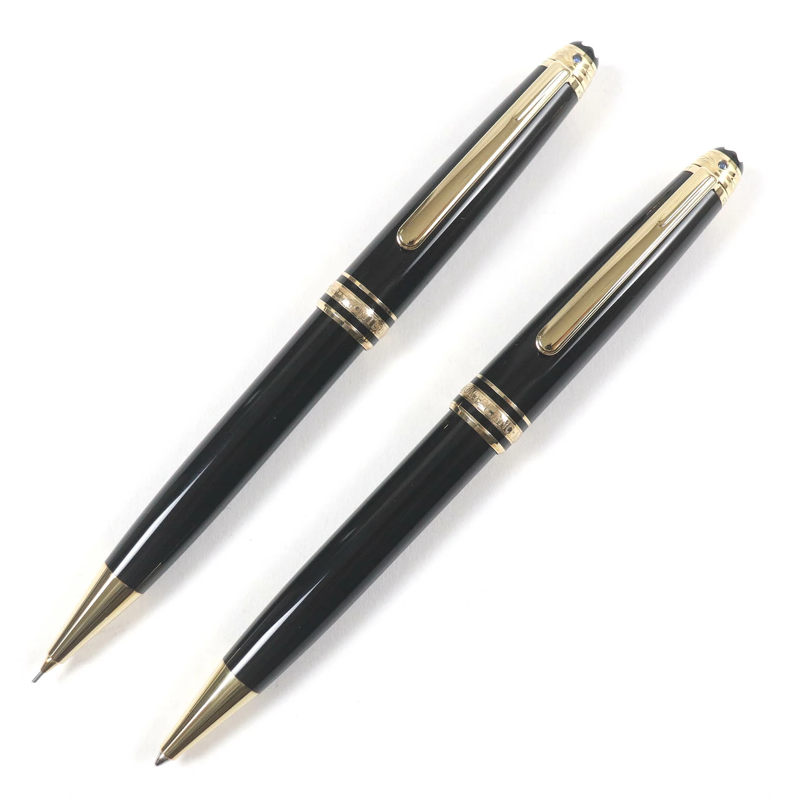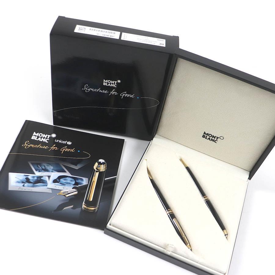 Excellent condition: Montblanc Meisterstück Classic Signature pens in precious resin and sapphire, UNICEF for Good, set of two, mechanical pencil and ballpoint pen, black and gold, with box and case, made in Germany, men's [pre-owned]