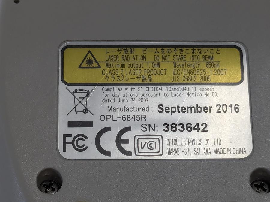 【美品】OPTICON OPL-6845R レーザスキャナ USB接続 抗菌仕様 (Opticon OPL-6845R Laser Barcode Scanner USB)