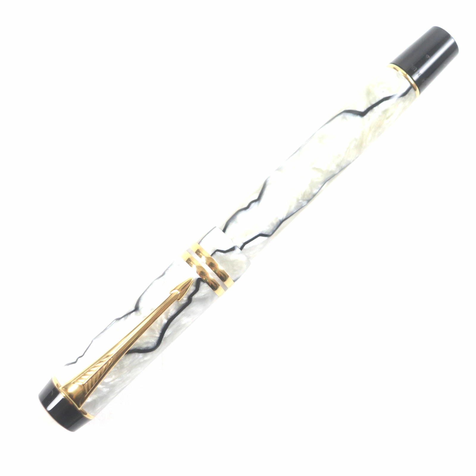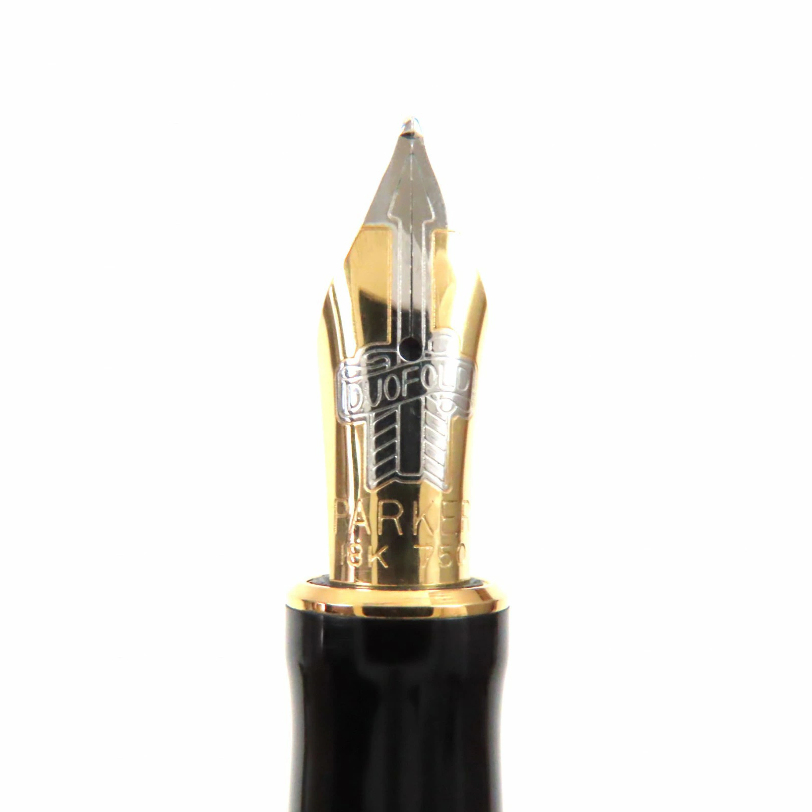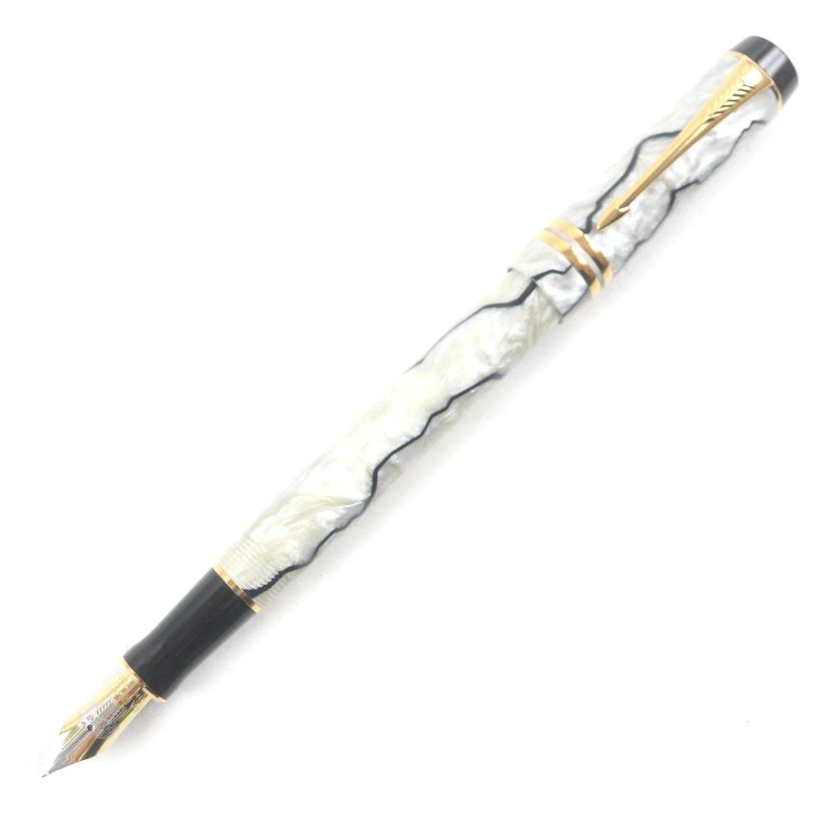 Excellent condition: Parker Duo Field Centennial, early model (1980s-1990s), 18K gold nib, M nib, pearl white, black, gold, made in the UK, for men. Pre-owned.
