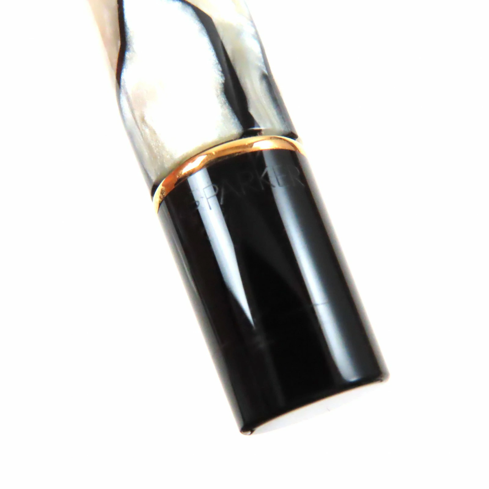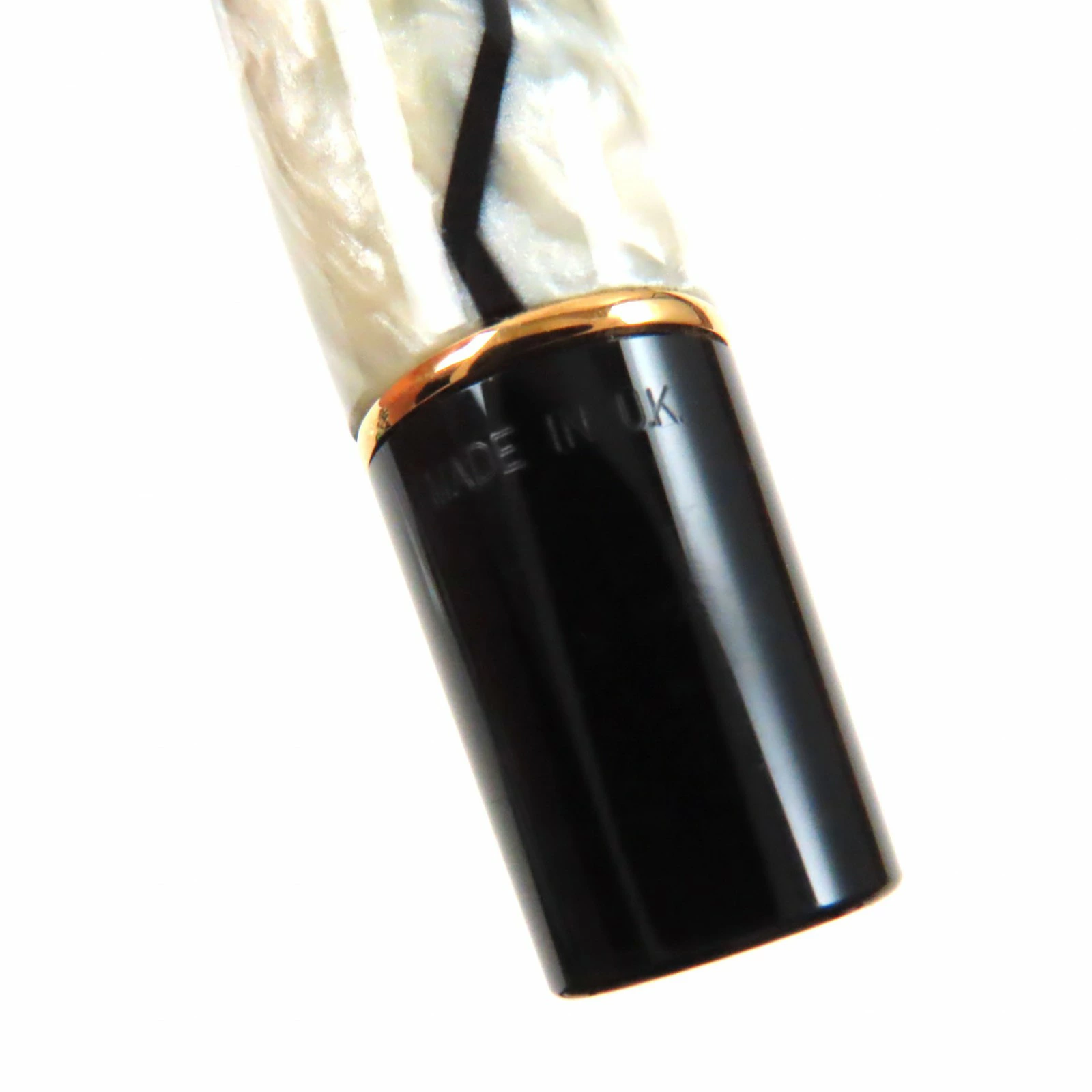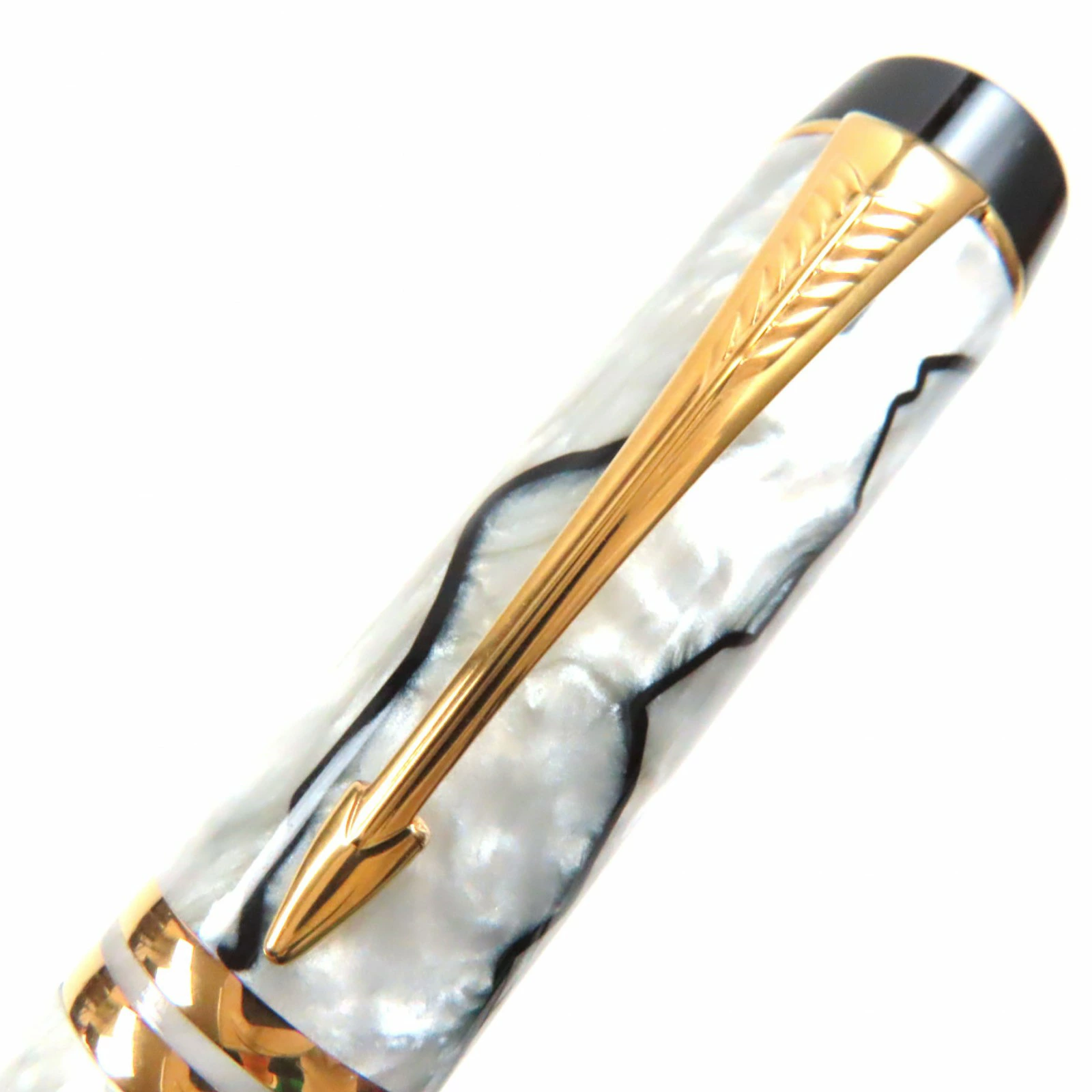 Excellent condition: Parker Duo Field Centennial, early model (1980s-1990s), 18K gold nib, M nib, pearl white, black, gold, made in the UK, for men. Pre-owned.