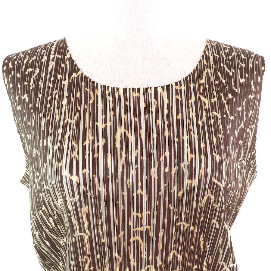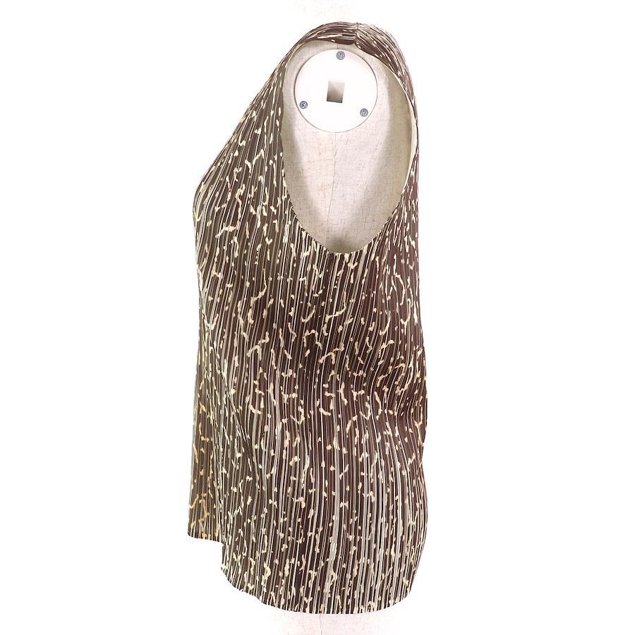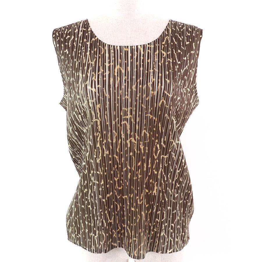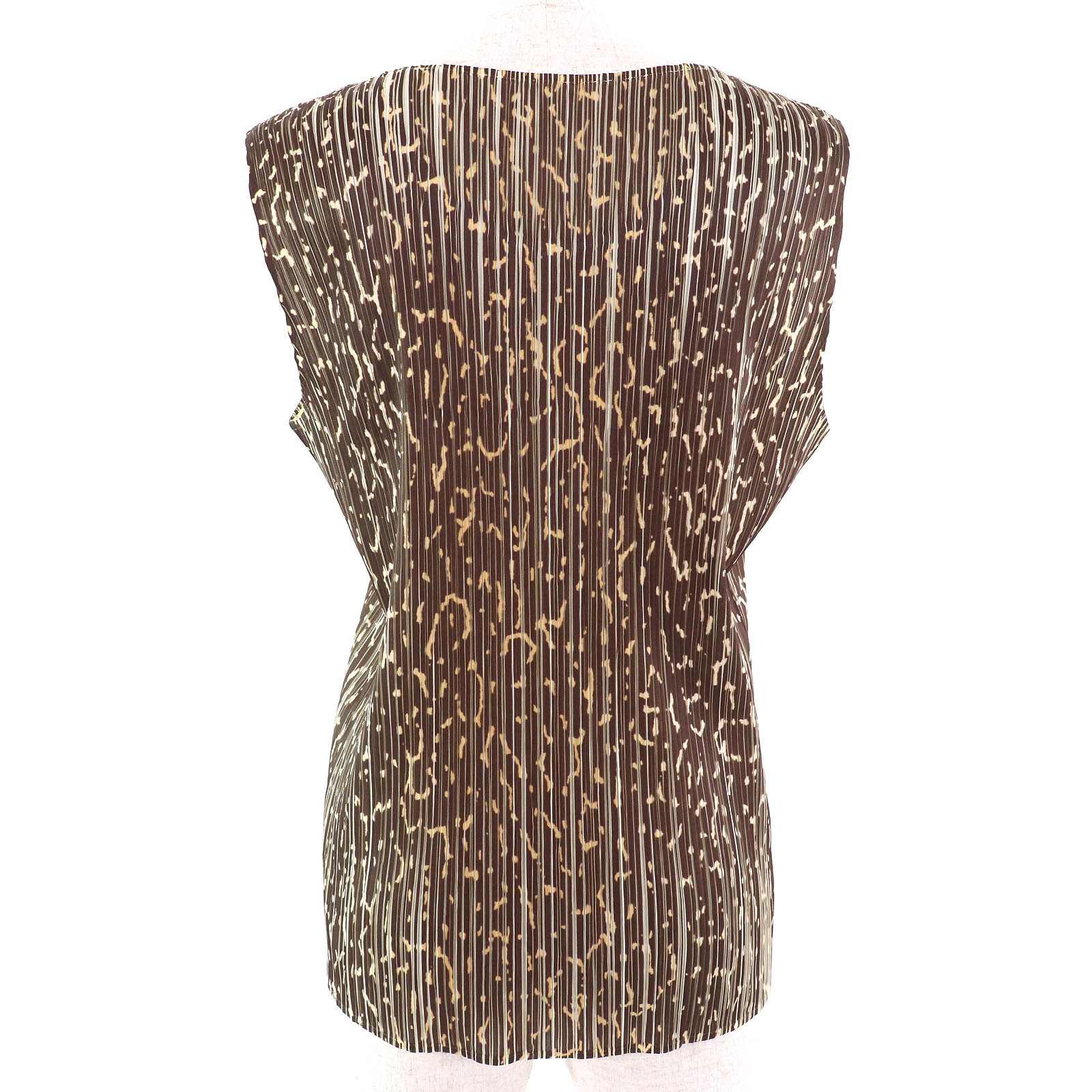 Excellent condition: PLEATS PLEASE Issey Miyake PP62-JK500 all-over print sleeveless tank top in brown and beige, size F (approximately L-LL size), authentic, made in Japan. Pre-owned.
