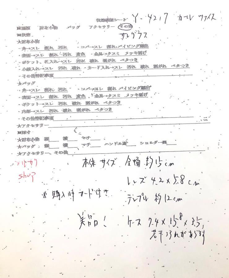 ■寸法(cm)全幅15レンズ4.2×5.8テンプル12~13素人採寸のため誤差はご容赦ください