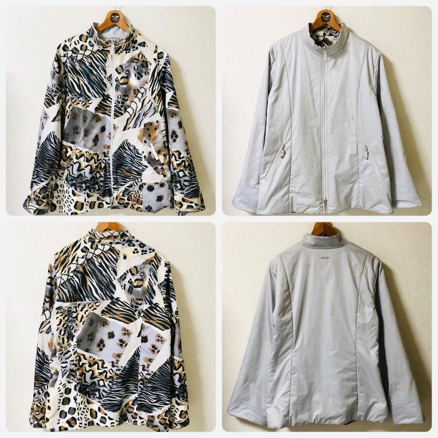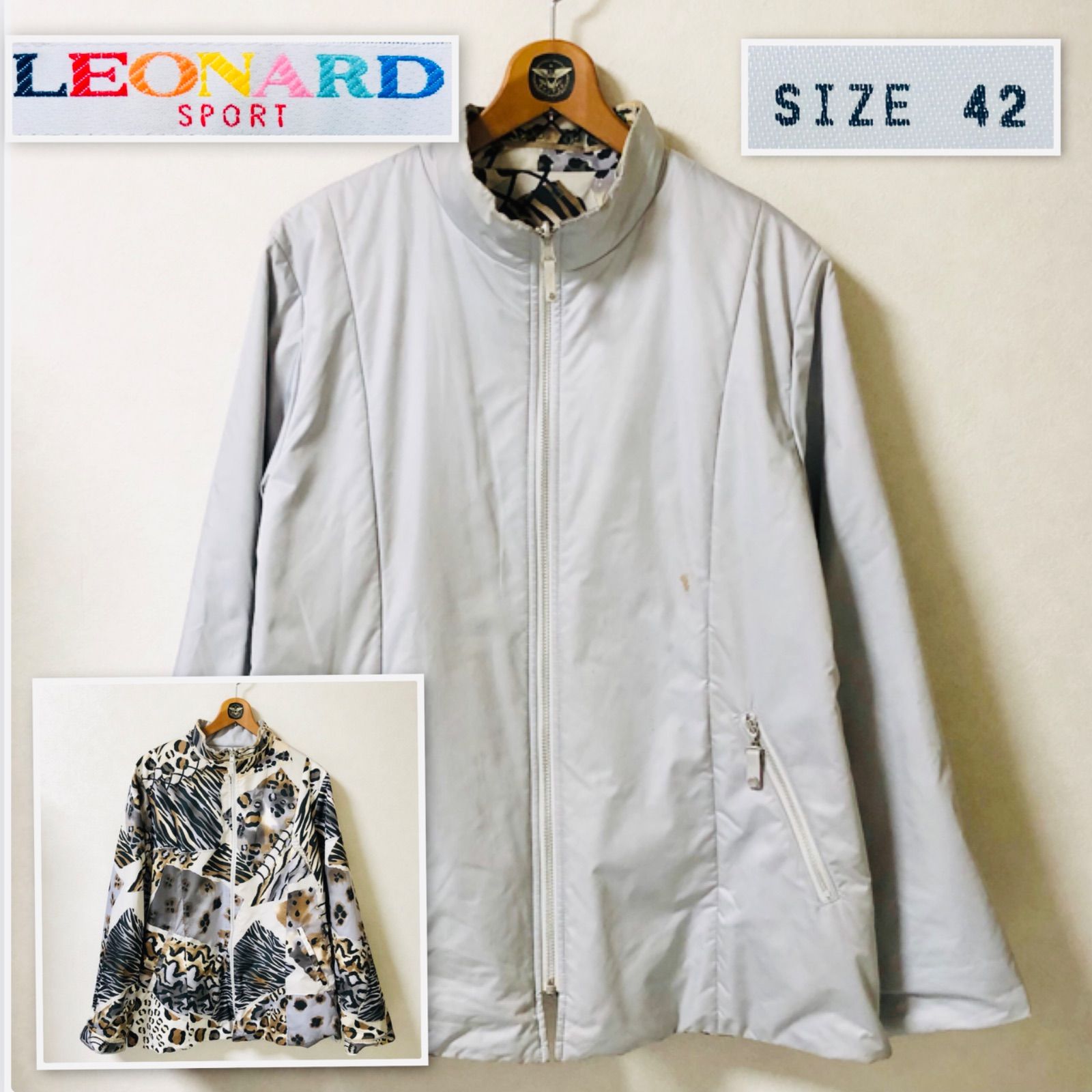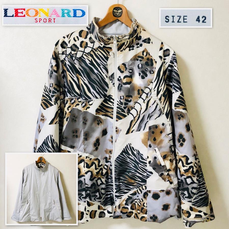 ■商品概要LEONARD SPORT レオナールスポーツ2way 中綿リバーシブルジャケット ブルゾン片面 総柄 ネコ科アニマル柄(レオパード ヒョウ、タイガー 虎、ジャガー等)片面 グレー系size42(サイズXL相当)ビッグサイズ 大きなサイズ 大きいサイズポリエステル100%日本製レディース派手 ラグジュアリー 高級春秋冬