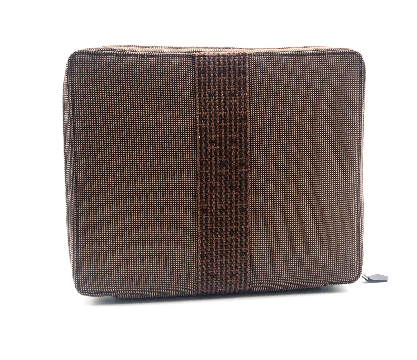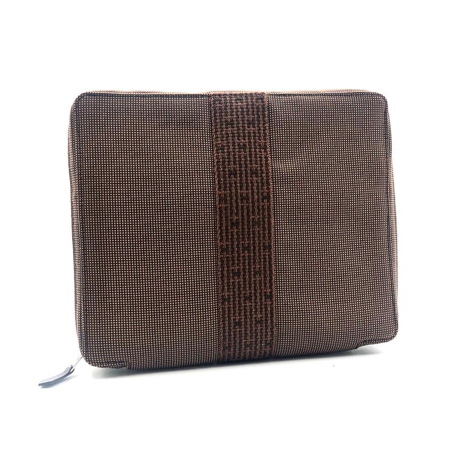 ■商品概要HERMES エルメスエールラインクラッチバッグ ポーチ オーガナイザー マルチケースラウンドファスナー ラウンドジップブラウンシルバー金具キャンバスフランス製布タグありラグジュアリー 高級 ハイブランド