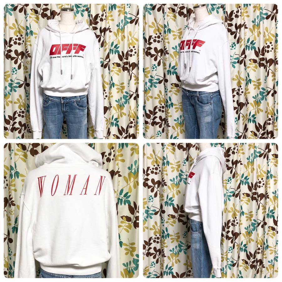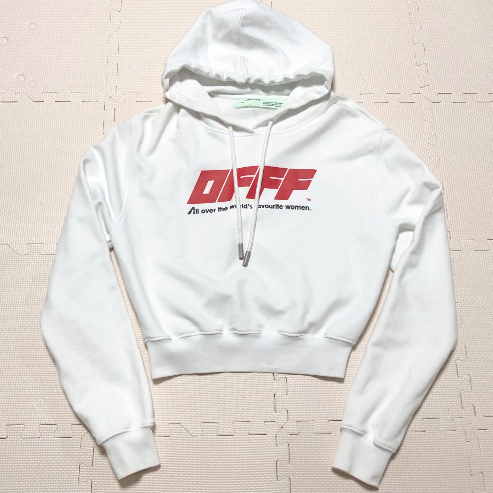 ■商品概要Off-White オフホワイトMAIN LABEL メインレーベルロゴ 前面OFFF 裏面WOMANプルオーバーパーカークロップド丈フーディー フードオーバーサイズsizeXS かなり大きめです。詳細は下部寸法値を必ずご確認くださいポルトガル製ホワイト×レッドコットンレディースラグスト ラグジュアリー ストリート ハイブランド 高級 カジュアル春秋冬