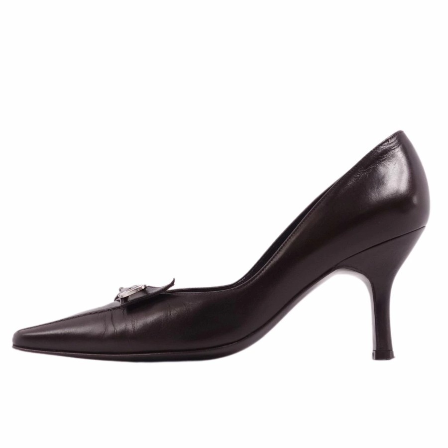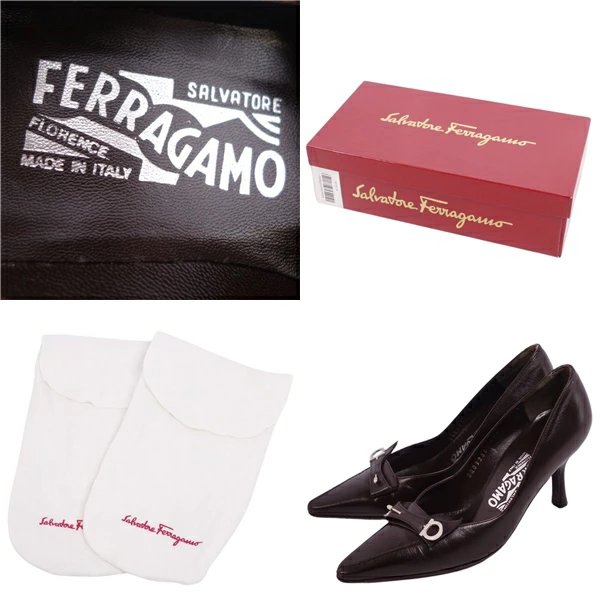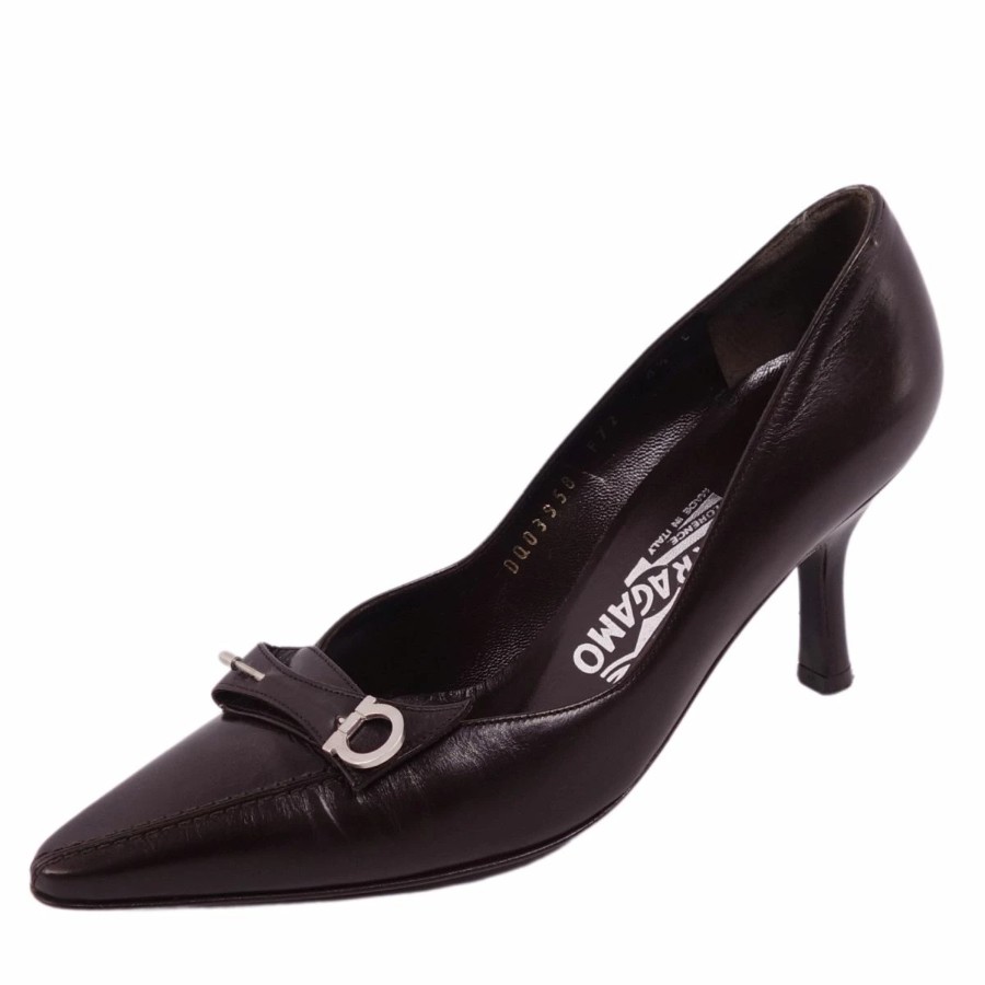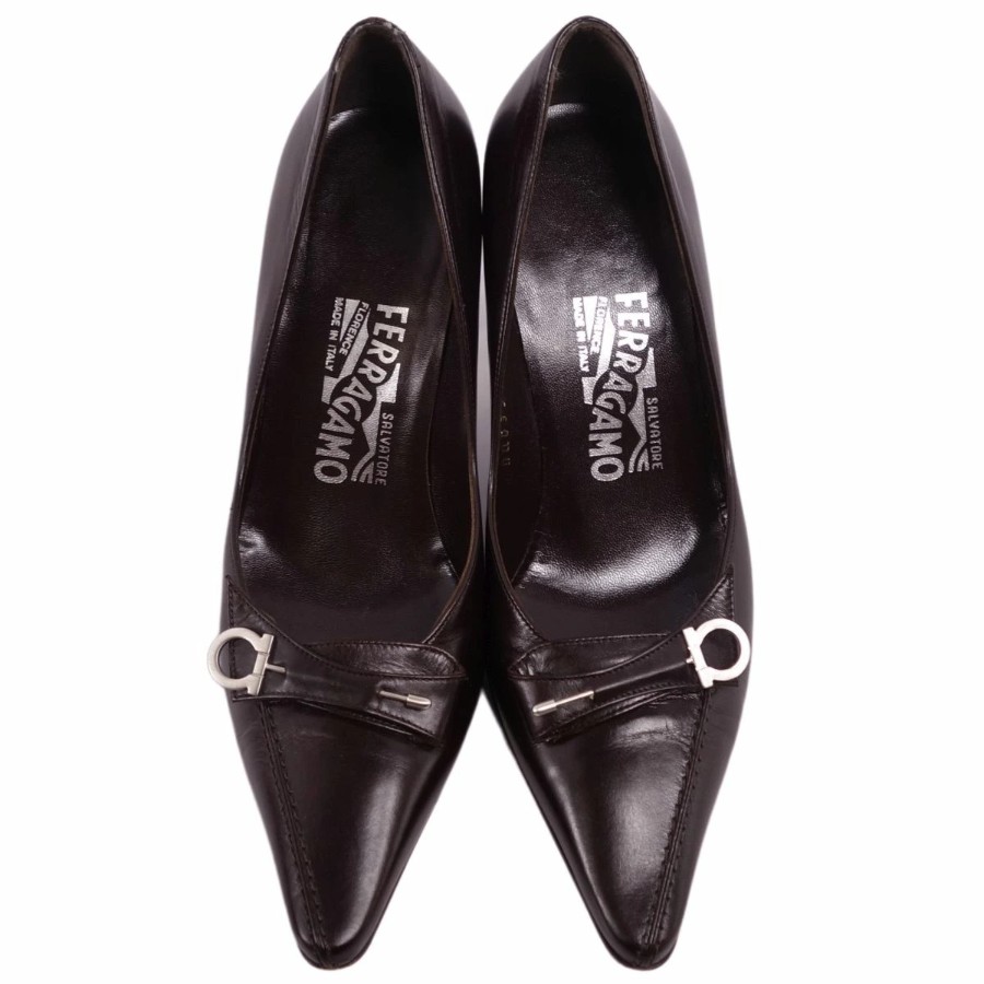 [Excellent Condition] Salvatore Ferragamo Pumps, Heels, Gancini Hardware, Calf Leather, Women's Shoes, Made in Italy, Size 4 1/2C (Equivalent to 22cm), Dark Brown [Pre-owned]