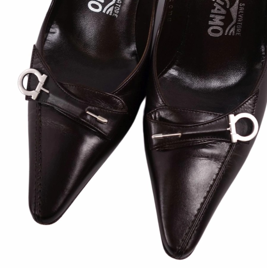 サルヴァトーレ フェラガモ Salvatore Ferragamo パンプス ヒール ガンチーニ金具 カーフレザー シューズ 靴 レディース イタリア製 ダークブラウン サイズ4 1/2C(22cm相当)