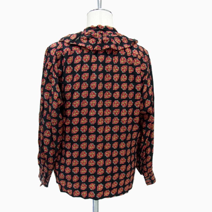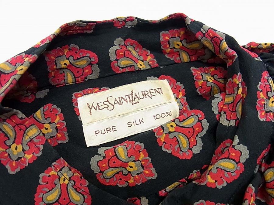 Excellent condition vintage YSL Yves Saint-Laurent 100% silk long-sleeved blouse with all-over print and flared collar.