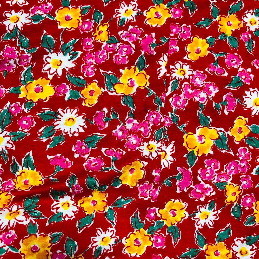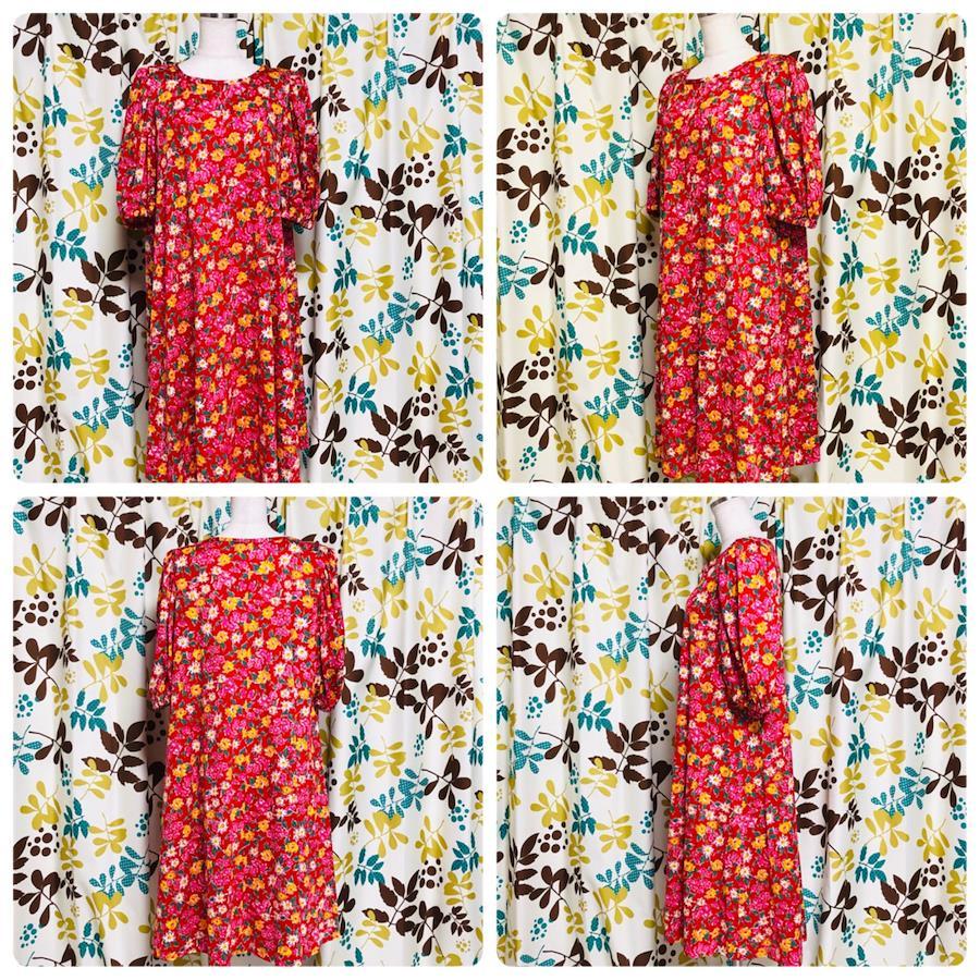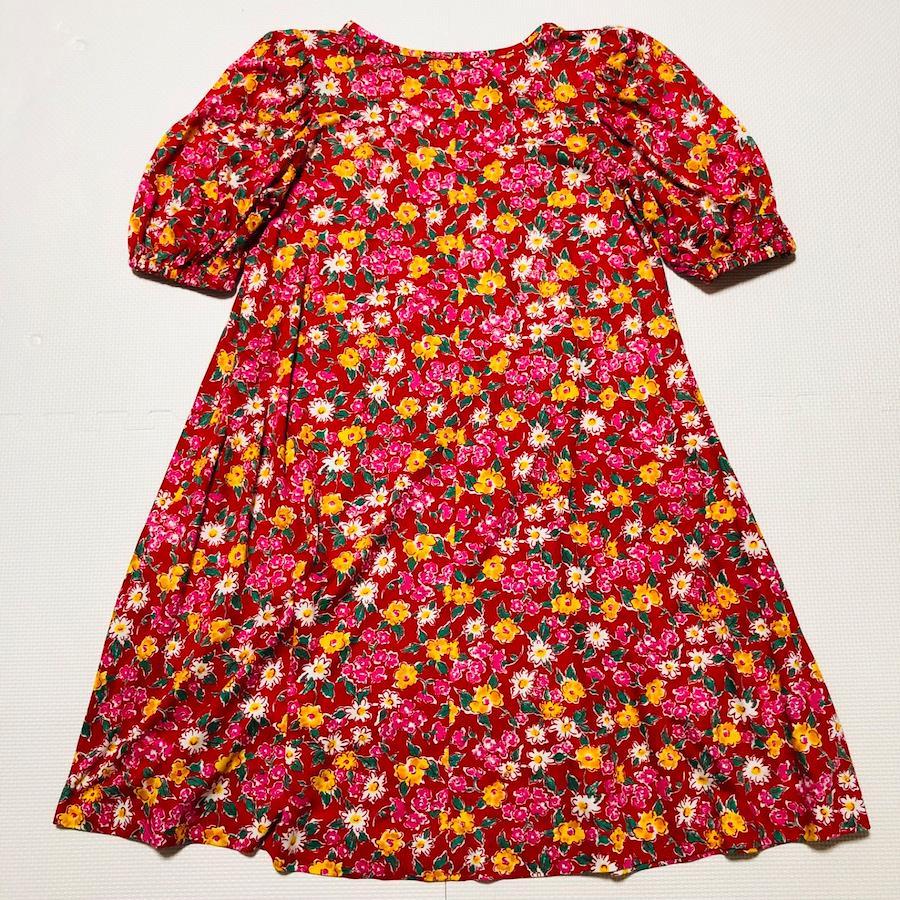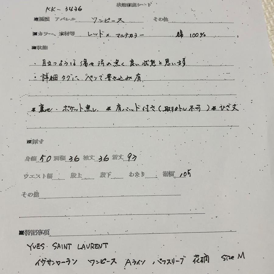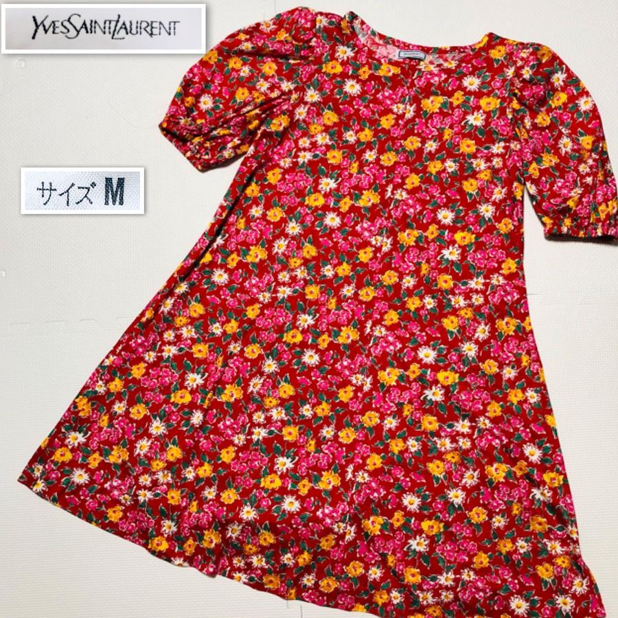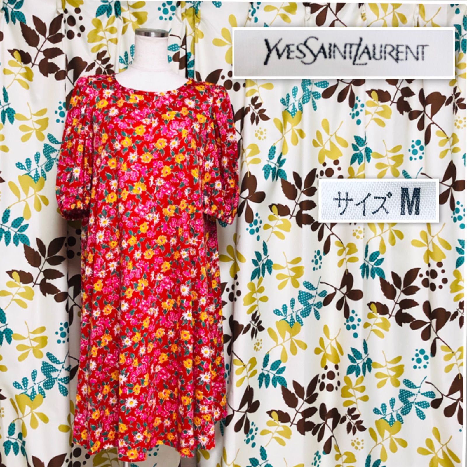 ■商品概要Yves saint Laurent イヴサンローランワンピースAラインパフスリーブ花柄 総柄ひざ丈ロングsizeM福助製コットン100%肩パッドレッド×マルチカラーレディースラグジュアリー 高級 ハイブランド