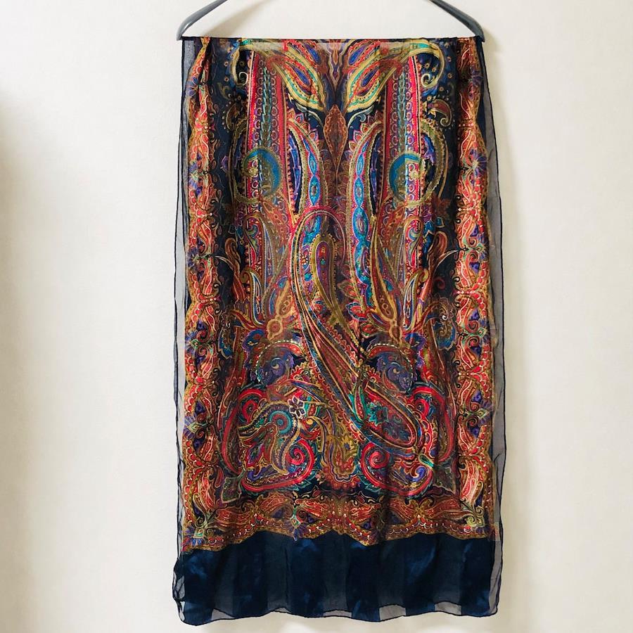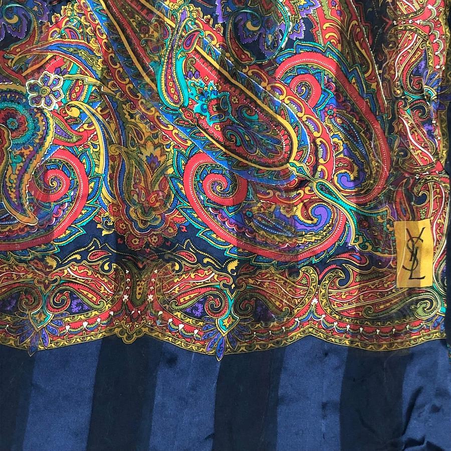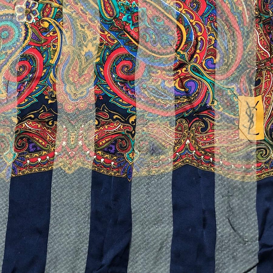 ■商品概要Yves saint Laurent イヴサンローランストール ロングスカーフシルク100%ペイズリー×ストライプネイビー×マルチカラーレディースラグジュアリー 高級 ハイブランド