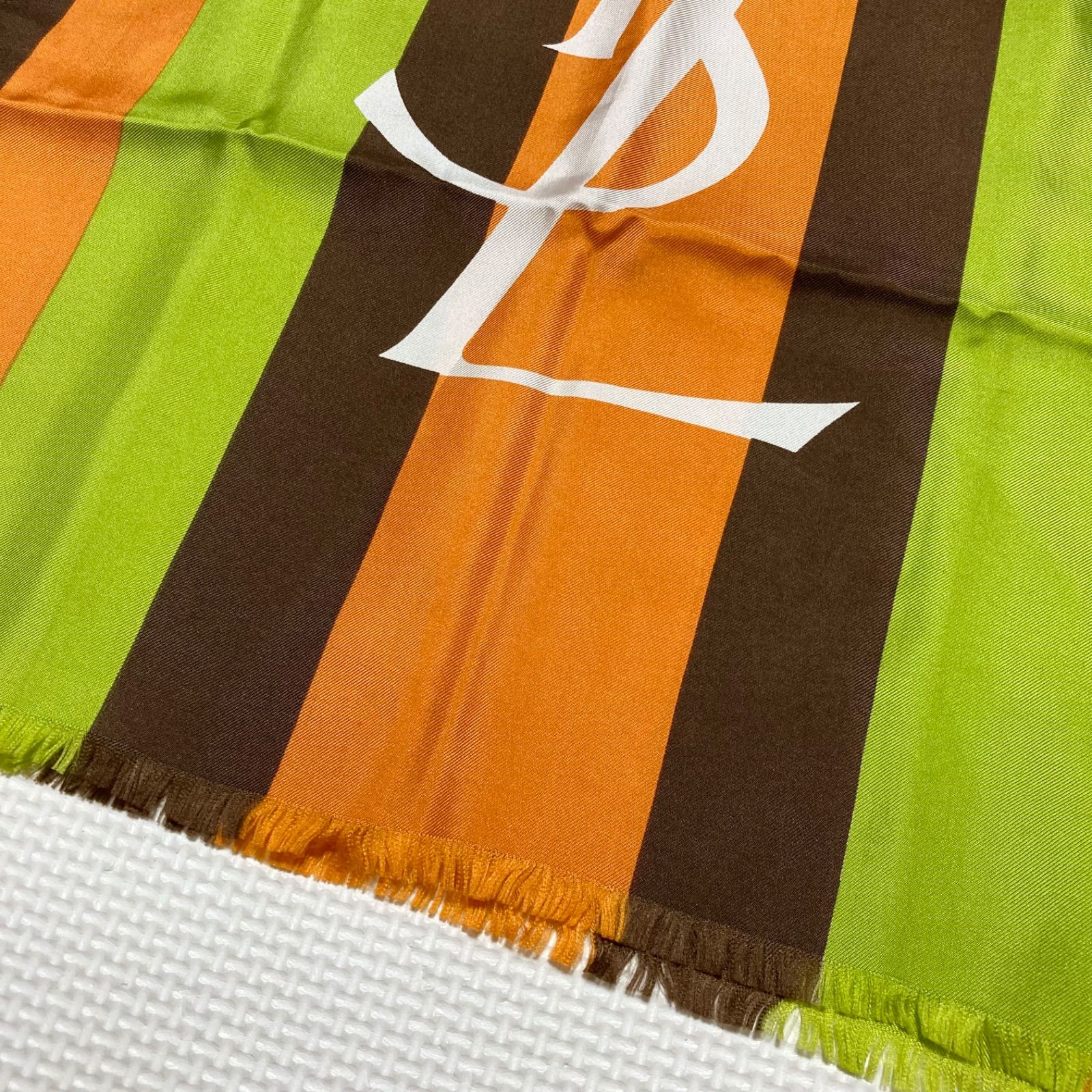 ■商品概要Yves saint Laurent イヴサンローラン大判ストール ロングストール ロングスカーフ シルクマフラーシルク100%YSLビッグロゴ×ストライプオレンジ×グリーン×ブラウンフリンジレディースラグジュアリー 高級 ハイブランドパーティー、ラグジュアリー、結婚式、お祝い、式典、入学式、卒業式、入社式、イベント