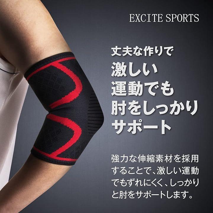 肘の動きを妨げず、しっかり支える伸縮フィット設計 「整体師監修」EXCITESPORTS 肘サポーターは、 スポーツや筋トレなどで肘を酷使しやすいシーンでも、 動きを妨げず、快適な装着感で肘をサポートするスリーブタイプのサポーターです。