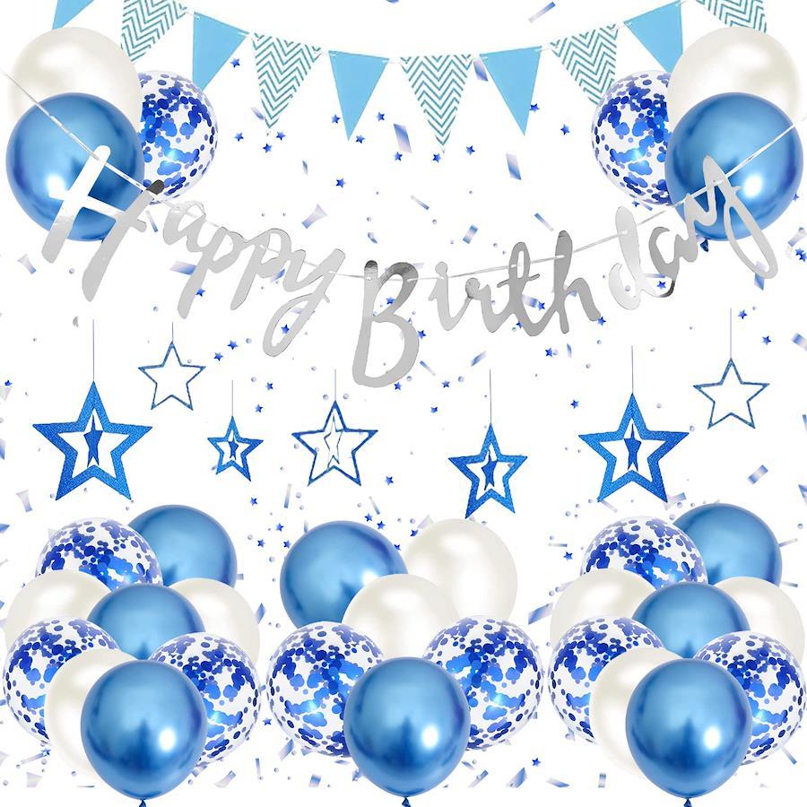 【ハッピーバースデー】楽しいパーティーに風船が足りないなんて。風船のあるパーティーは、もっと楽しいです。ハッピーバースデーバルーンセットは、お誕生日のお祝いイベントを活気に溢れさせ、友達と家族の誕生日をサプライズします。最も美しい気球で、最も誠実な愛で部屋を満たして、あなたの最愛の人に忘れられない驚きを与えます。 【セット内容】①HAPPY BIRTHDAYバースデーガーランド*1 ②フラッグガーランド*1③星のガーランド*1④ブルー風船X10個(約25cm)ホワイト風船X10個(約25cm) ⑤コンフェッティ(紙吹雪)バルーン*10個(約25cm)⑥リボン*2。注意:この商品には空気入れと両面テープがありません。必要であれば、別途に購入してください。 【華麗な感じ】ガーランドは壁に飾る他、天井から吊るしてもおしゃれ。 テーブルの上に吊るせば、パーティー料理が豪華に見えます。 「HAPPY BIRTHDAY」の文字入りなど、誕生パーティーにぴったりなものもたくさん。 作り方も簡単なので、テーマカラーの色味の画用紙や布で簡単に手作りできるのも魅力です。光沢があるペーパー製、角度により光が反射し高級感があります。キラキラとしていてゴージャスな雰囲気を演出できます。 【適用場合】誕生日パーティー、結婚式、記念日、クリスマスなどのお祝いの日に装飾をして使います。また、誕生日のバルーンセットの装飾は忘れられない思い出と面白い記念写真を撮ってくれます。人生で一番いい思い出になります。 【注意事項&安心保障】配送途中の破損などの事故がございましたら、当社まで連絡下さい。破損部分等 画像を送っていただければ確認後、交換または返金いたします。