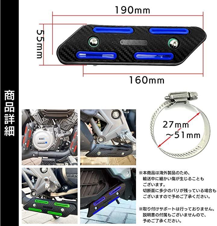 エキゾーストパイプに装着することにより、服や身体が直接当たらないように火傷防止として保護します。