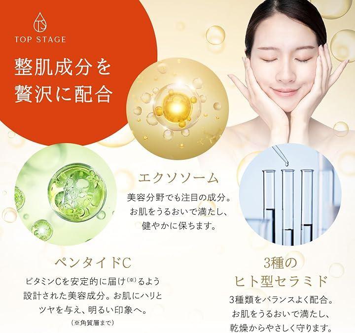 全成分 :水、グリセリン、ヒト幹細胞順化培養液、イソペンチルジオール、ソルビトール、ペンチレングリコール、アルギニン、ヒト脂肪由来間葉系細胞エクソソーム、アスコルビルグルコシド、セラミドAP、セラミドEOP、セラミドNP、ビサボロール、ラントイン、(ラズベリー種子油/コハク酸トコフェロール)アミノプロパンジオールエステルズ、エルゴチオネイン、ツボクサエキス、マデカッソシド、アシアチコシド、コンフリー葉エキス、アイ葉/茎エキス、BG、アスコルビルメチルカルボニルイートップクリニックペンタペプチドー72ートリーtーブチルトリプトファナミド、グリチルリチン酸2K、デキストラン硫酸Na、ニオイテンジクアオイ油、ローマカミツレ花油、ダマスクバラ花油、キサンタンガム、水添レシチン、トリ(カプリル酸/カプリン酸)グリセリル、フィトスフィンゴシン、コレステロール、ラウロイルラクチレートNa、酢酸トコフェロール、カルボマー、(アクリレーツ/アクリル酸アルキル(C10-30))クロスポリマー、ポリソルベート80、カプリリルグリコール、1,2ーヘキサンジオール、エチルヘキシルグリセリン、フェノキシエタノール、クエン酸、クエン酸Na、水酸化K