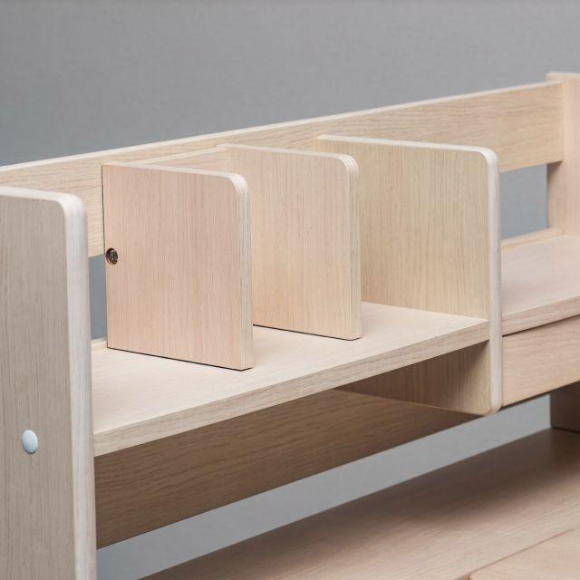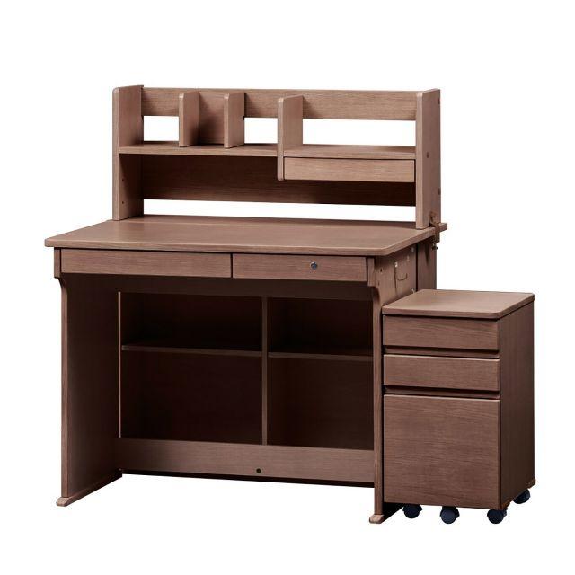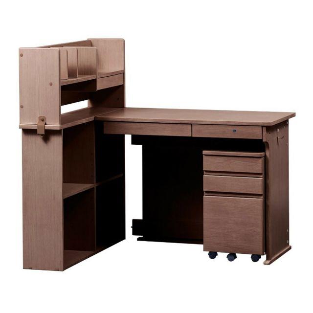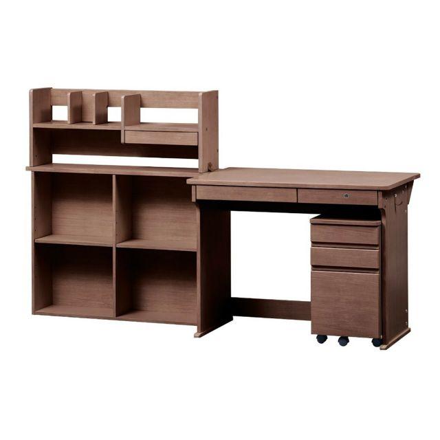 ●書棚・小引き出し付きで、ハンカチやペンなど小物も収納しやすいです。・コードを逃がせるようになっており、タブレット充電などに便利。・上棚はデスク天板にもクランプするような形で設置可能。お子様の成長や必要に応じてスタイルをかえながらご使用いただけます。・コの字型の可動ブックエンド付きです。・棚板は可動式です。耐荷重各5kgまで。