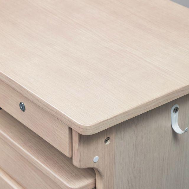 ●ワゴン・浅い引き出しにはペントレー付き。・深い引き出しはフルオープン仕様のスライドレール付き。・最下段のみ仕切り板付き。教科書類を立てて収納するのに便利で、取り外しも可能です。・引き出しは「四方組」という丈夫なつくりになっています。