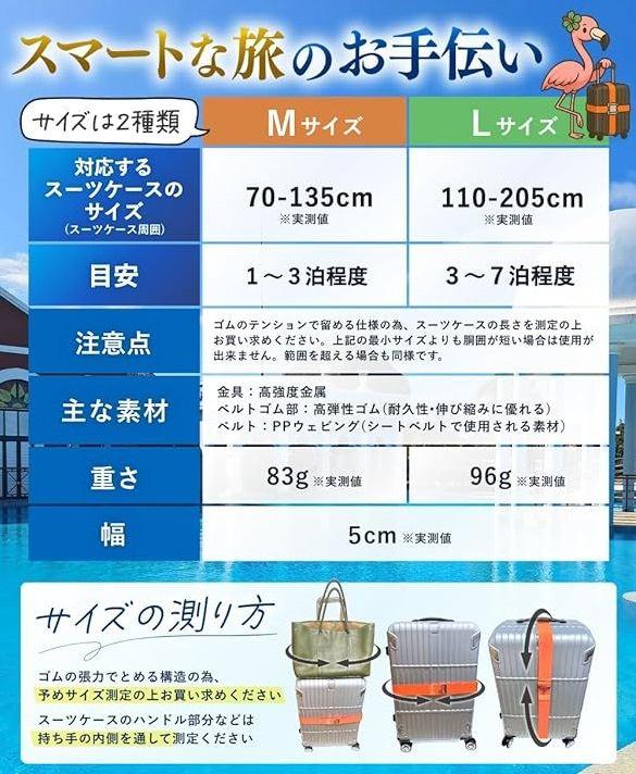 4、「サイズは2種類・選べるカラー」 ・ご自身のキャリーケースのサイズや用途に合わせお選びいただく事が出来ます ・お好きな色を選んでください