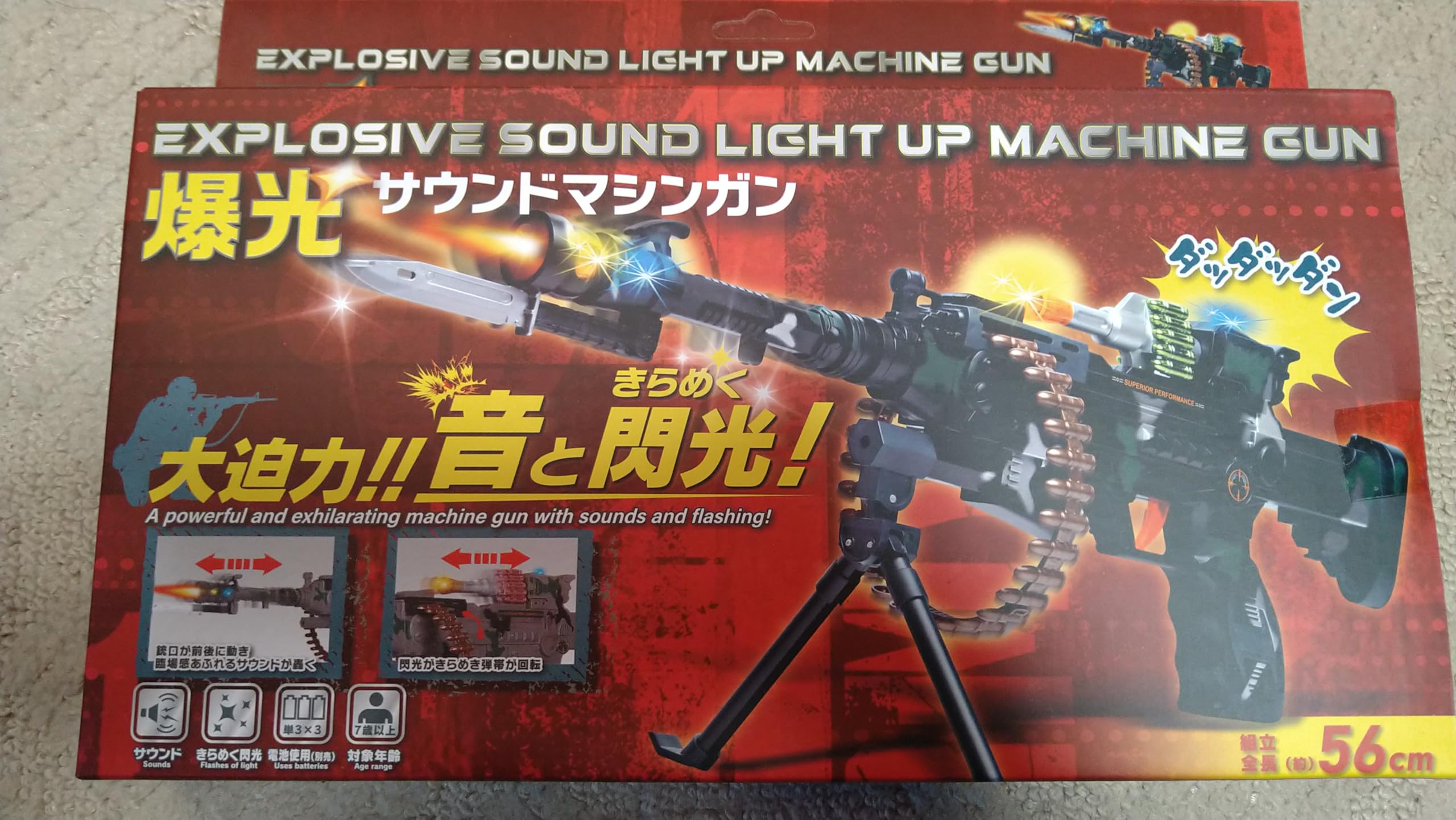 安全に弾が無く遊べる。サウンド迫力と光で楽しむマシンガン。